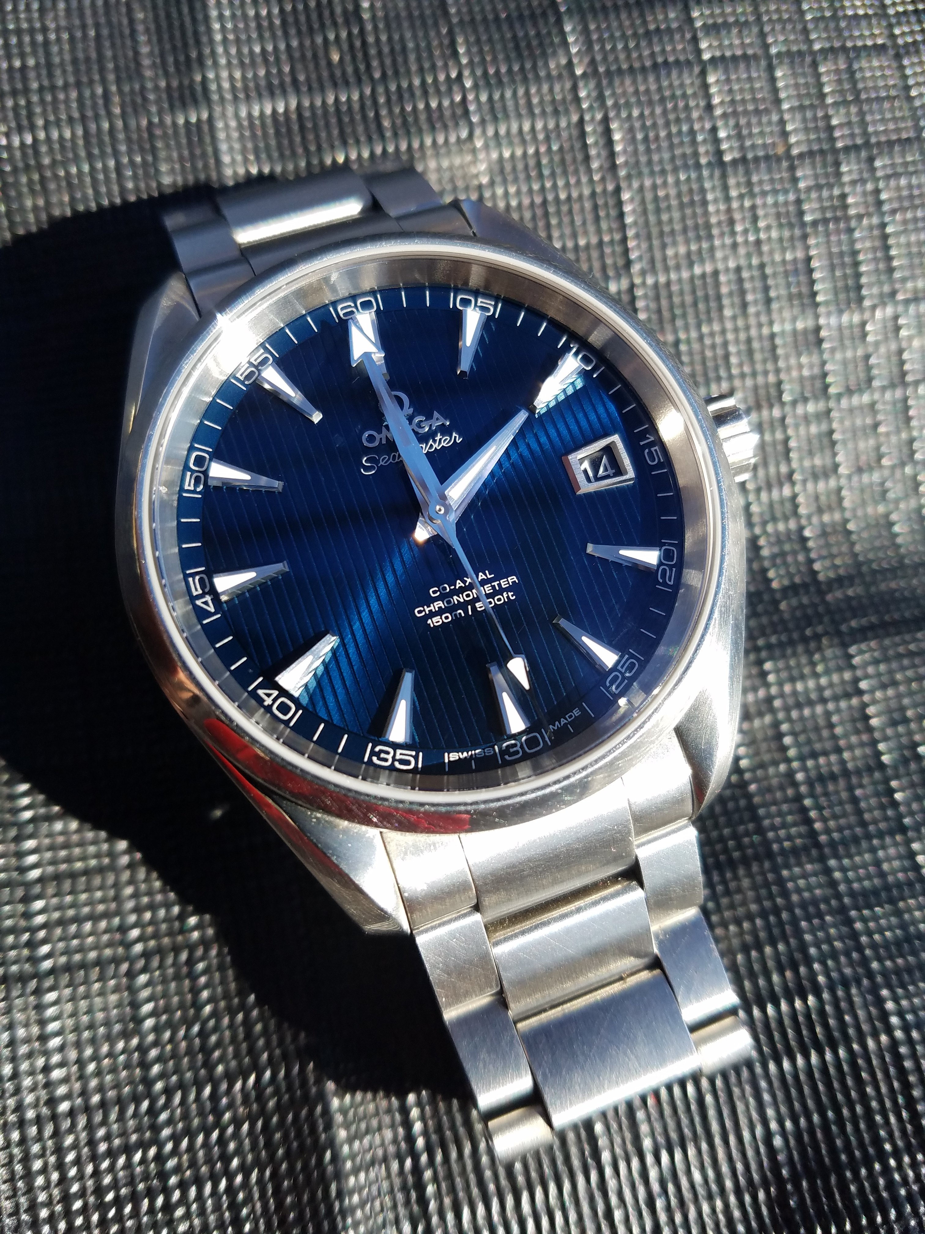 The Aqua Terra is a great watch. Since purchasing the SMP, I also added a blue dial AT with the 8900 movement and like it, but the blue on the new AT has a purple hue to it that I’m not very fond of. I also don’t like the horizontal lines of the new AT dial. At any rate, I believe the AT is a much better watch than the SMP and also has a better movement. The 8900 movement has 2 Main spring barrels and is also more finely finished than the 8800. In the coming months I will probably sell both my SMP and AT and replace them with the previous version of the AT. The Skyfall with blue dial and vertical lines is the coolest Omega ever in my opinion.