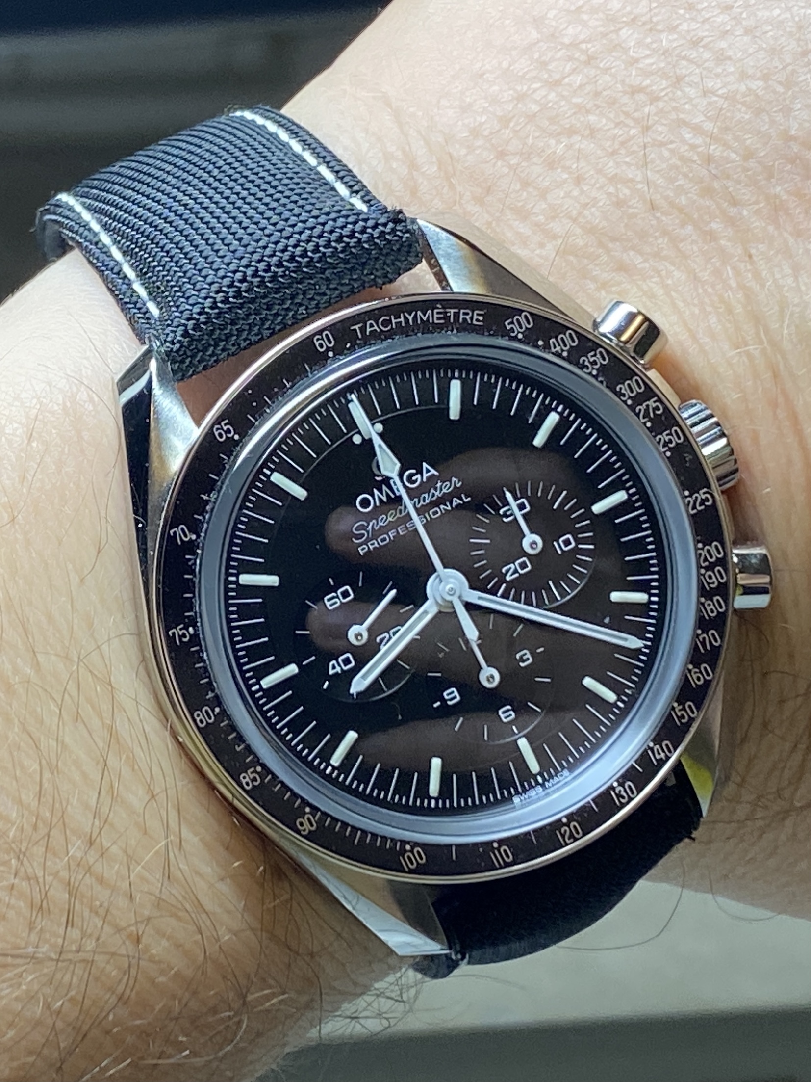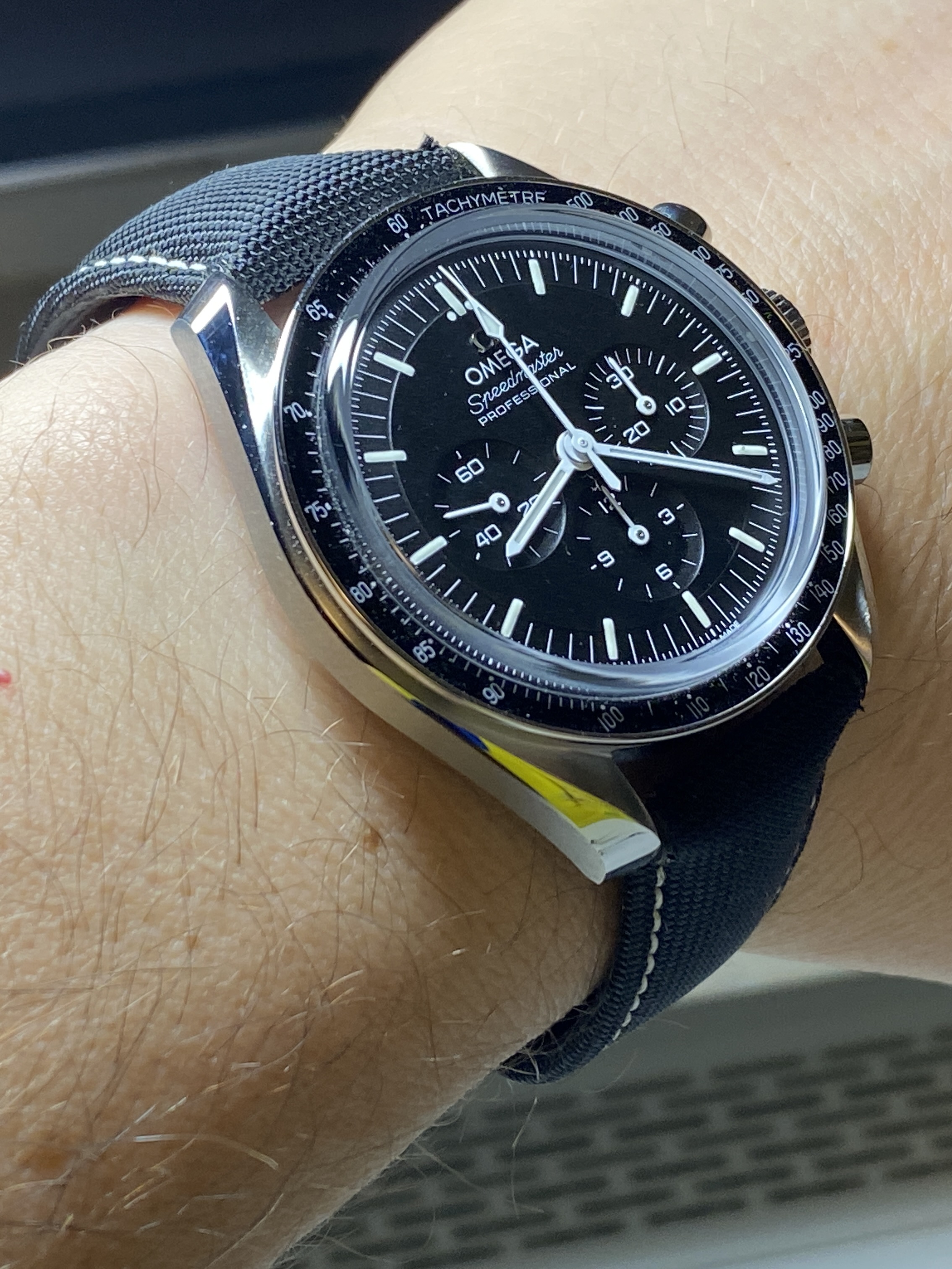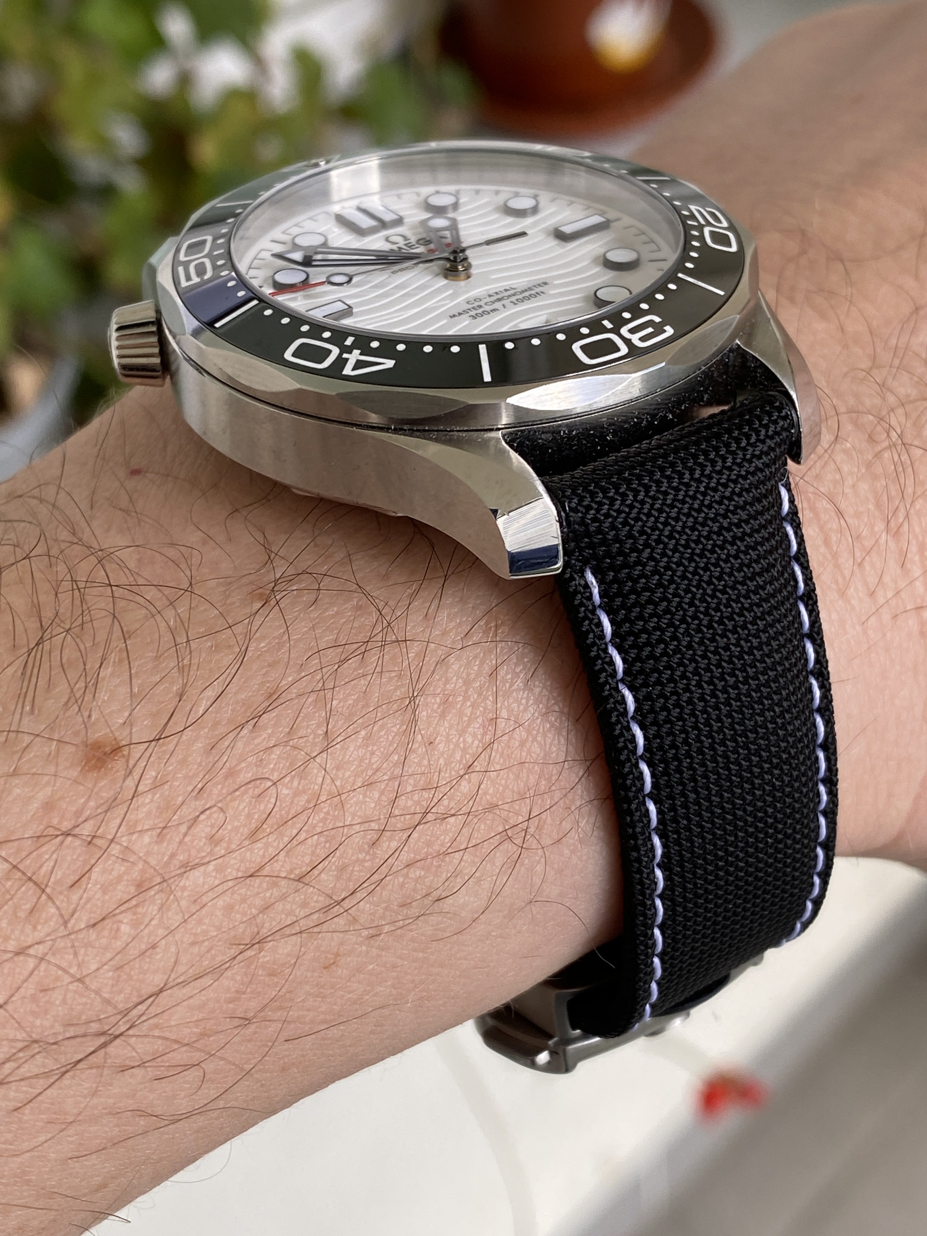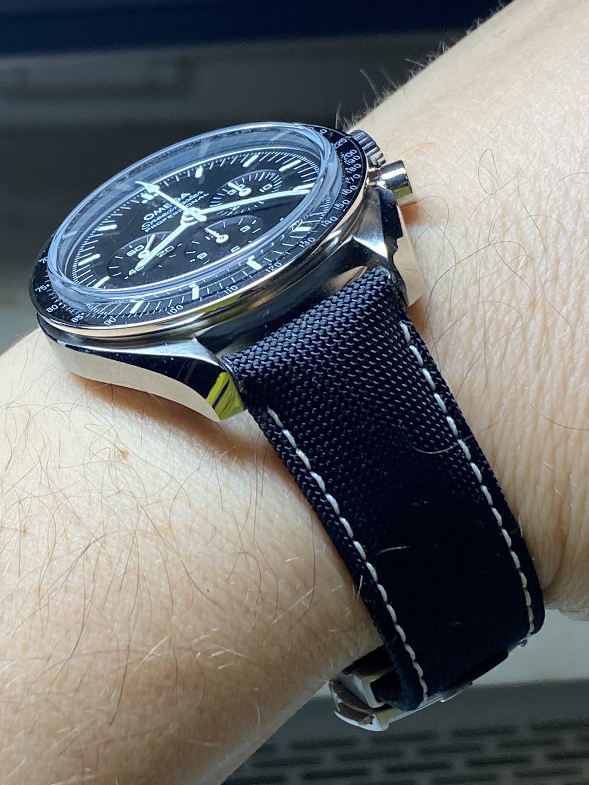 ·I have for sale original OMEGA cordura black strap with white stitching, primarily made for Speedmaster SIlver Snoopy 2. I used it on my Seamaster Diver 300M and Moonwatch, but it works well with other watches, especially MOONwatches too.