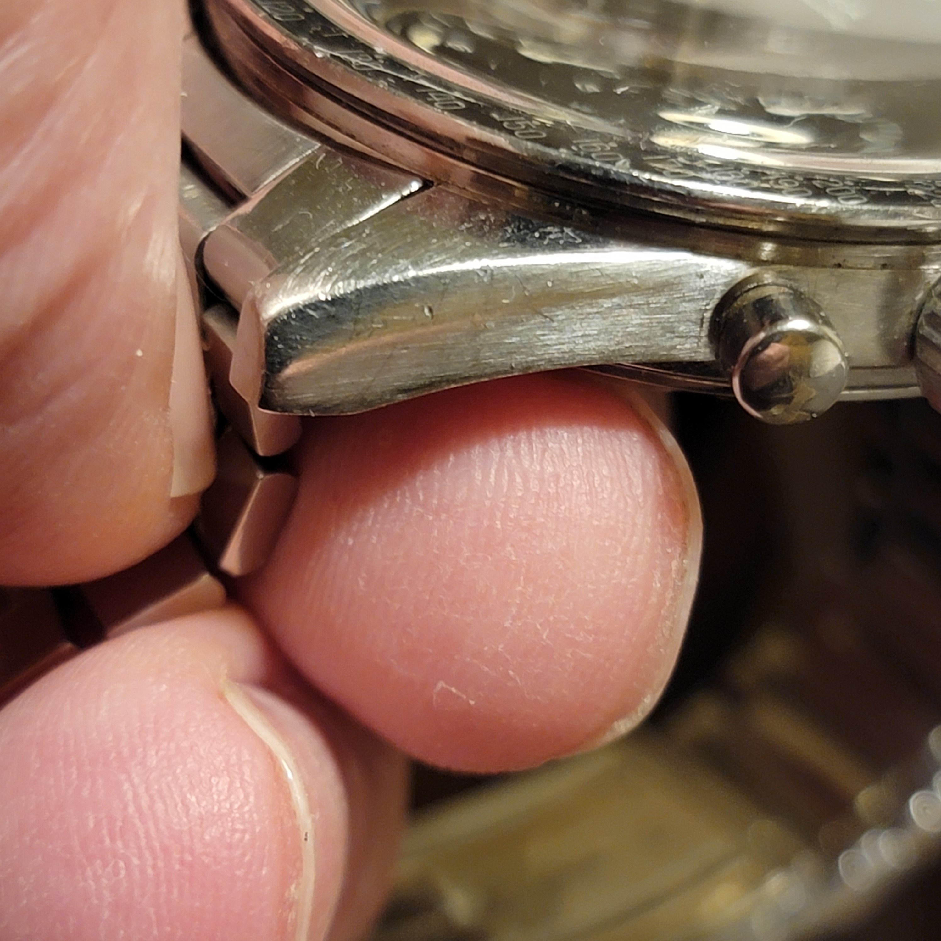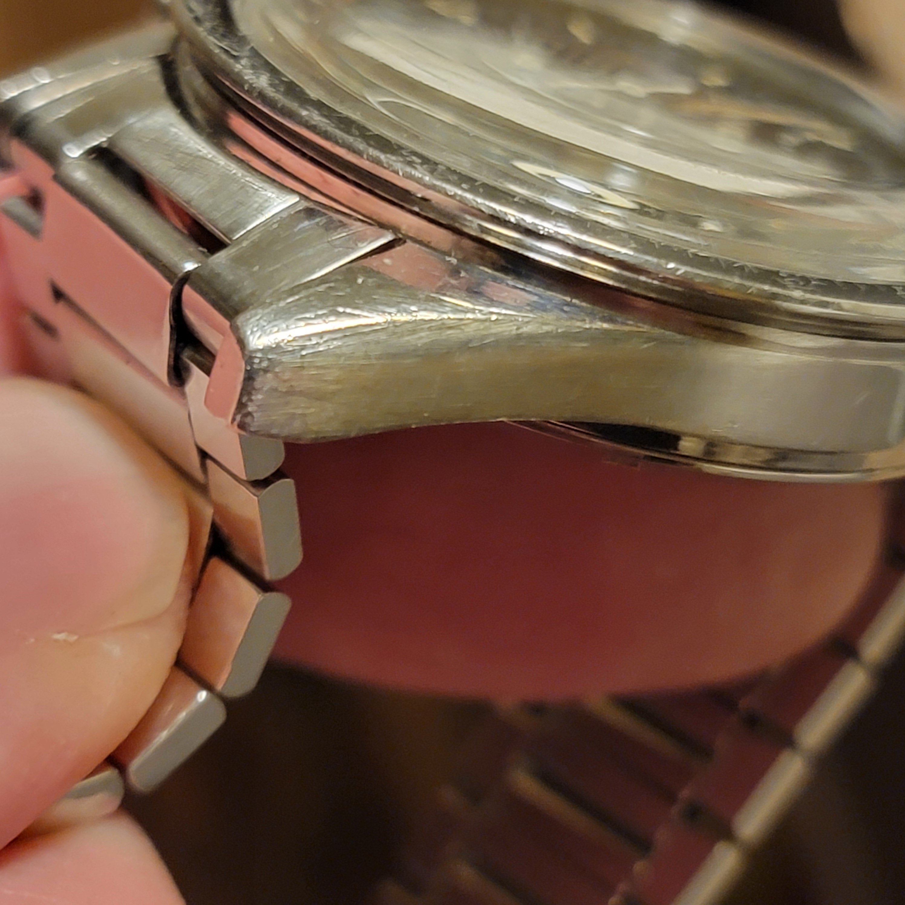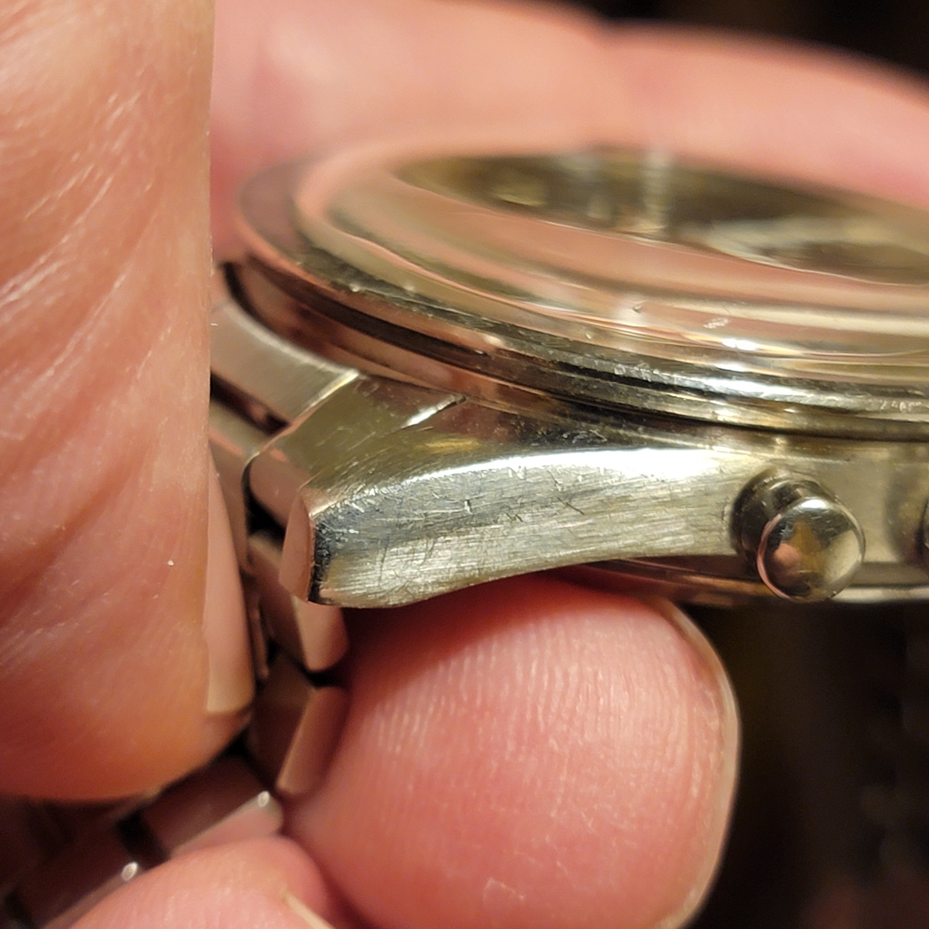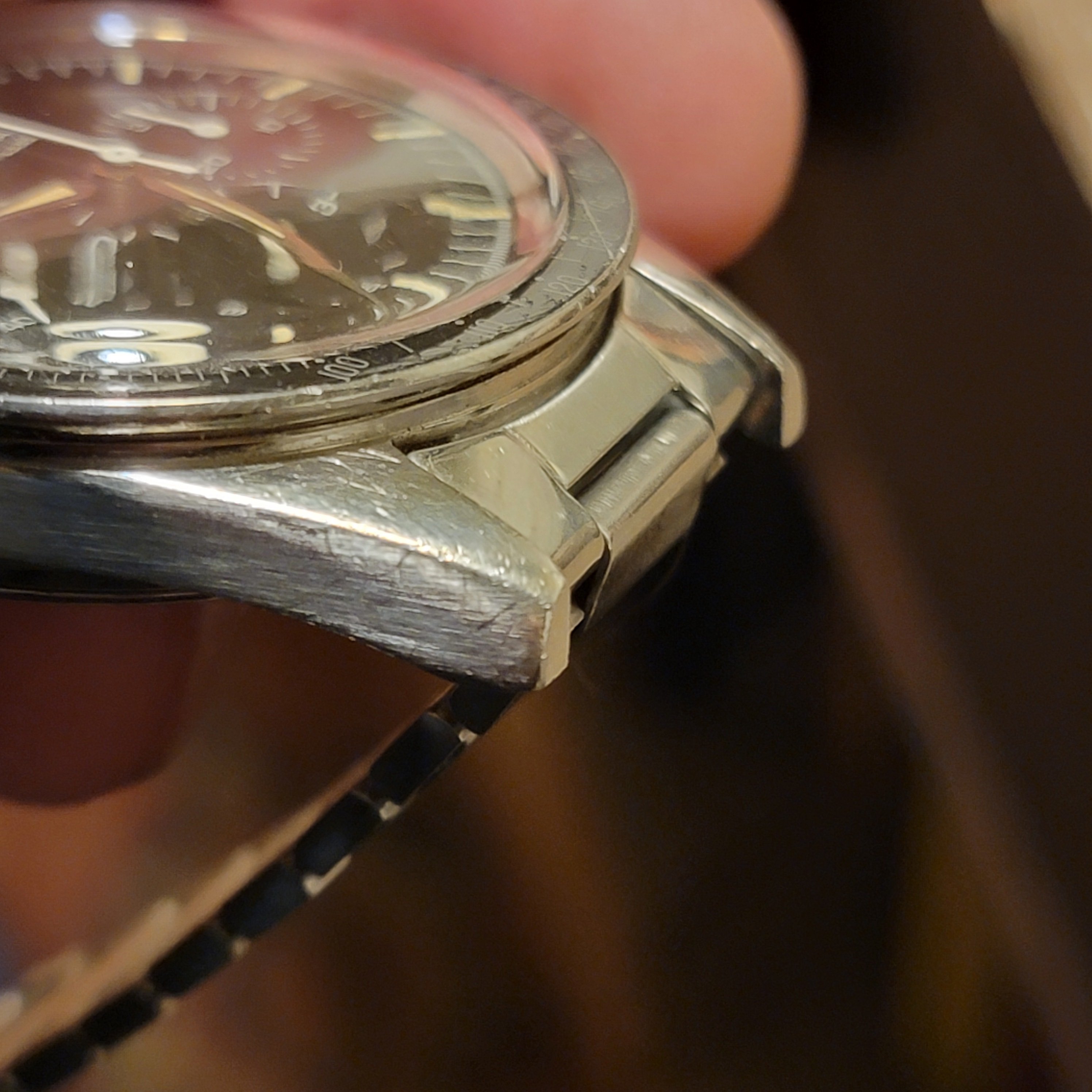 I think it is fair to say this is an overall excellent example, based on my own judgment and the opinions of a few other members who have seen the watch in person. The bezel is clearly not excellent in itself. The bracelet and endlinks are believed to be original and fit my 7.25 inch wrist. Note that the clasp hinge is tight and does not swing by gravity (see photo.) Taken as a whole, the case, dial, lume, and hands make this an exceptional watch, imo.