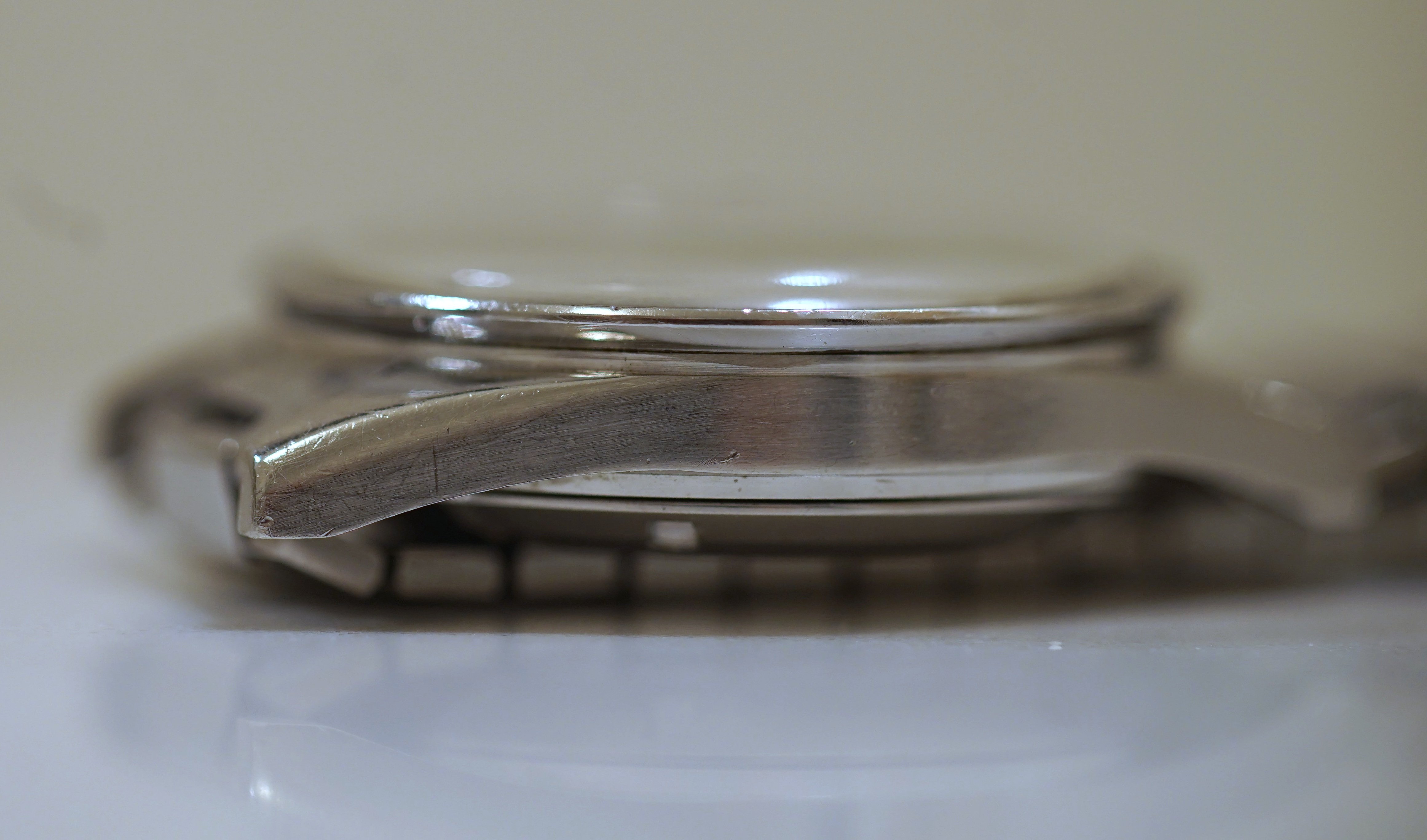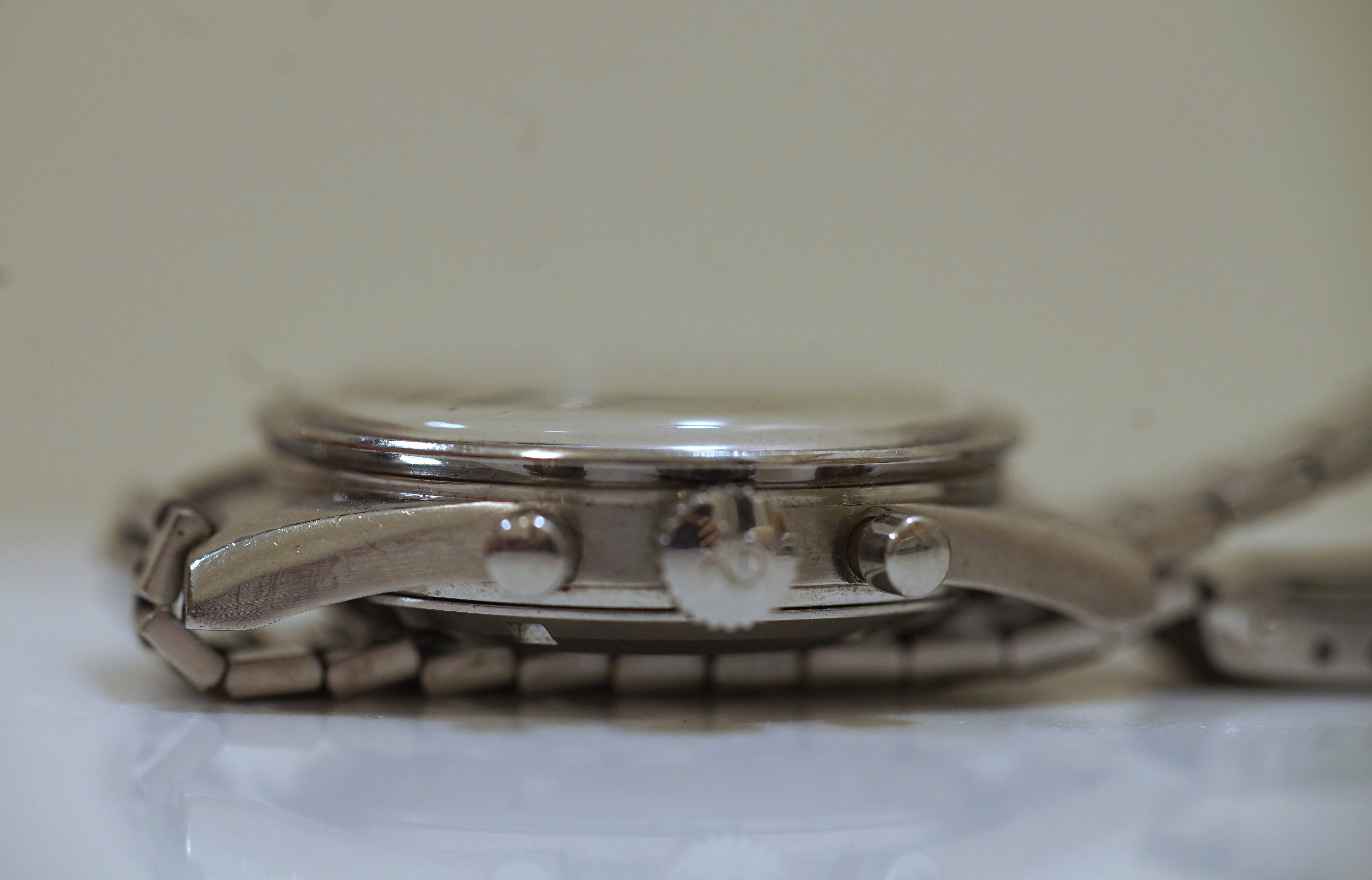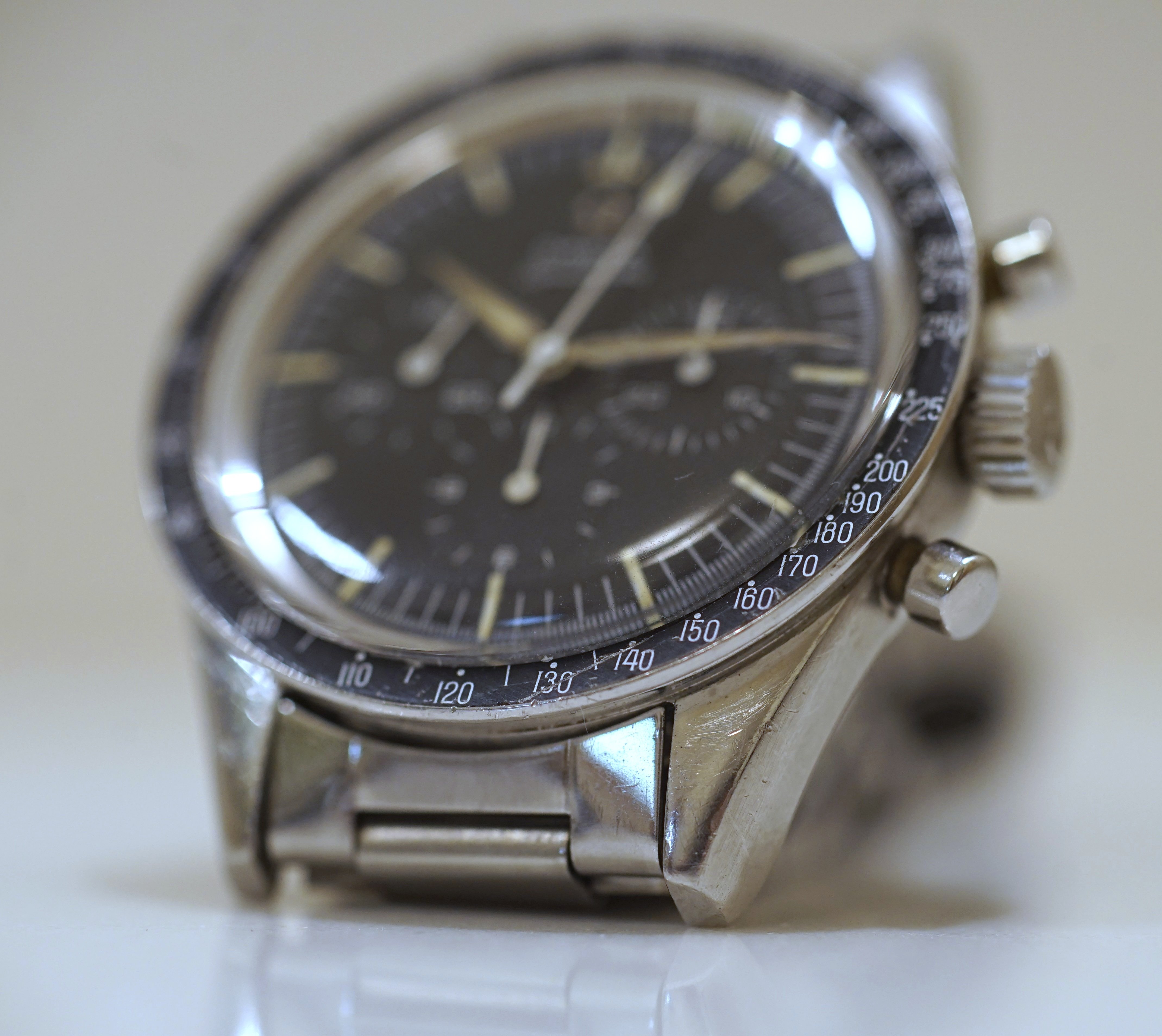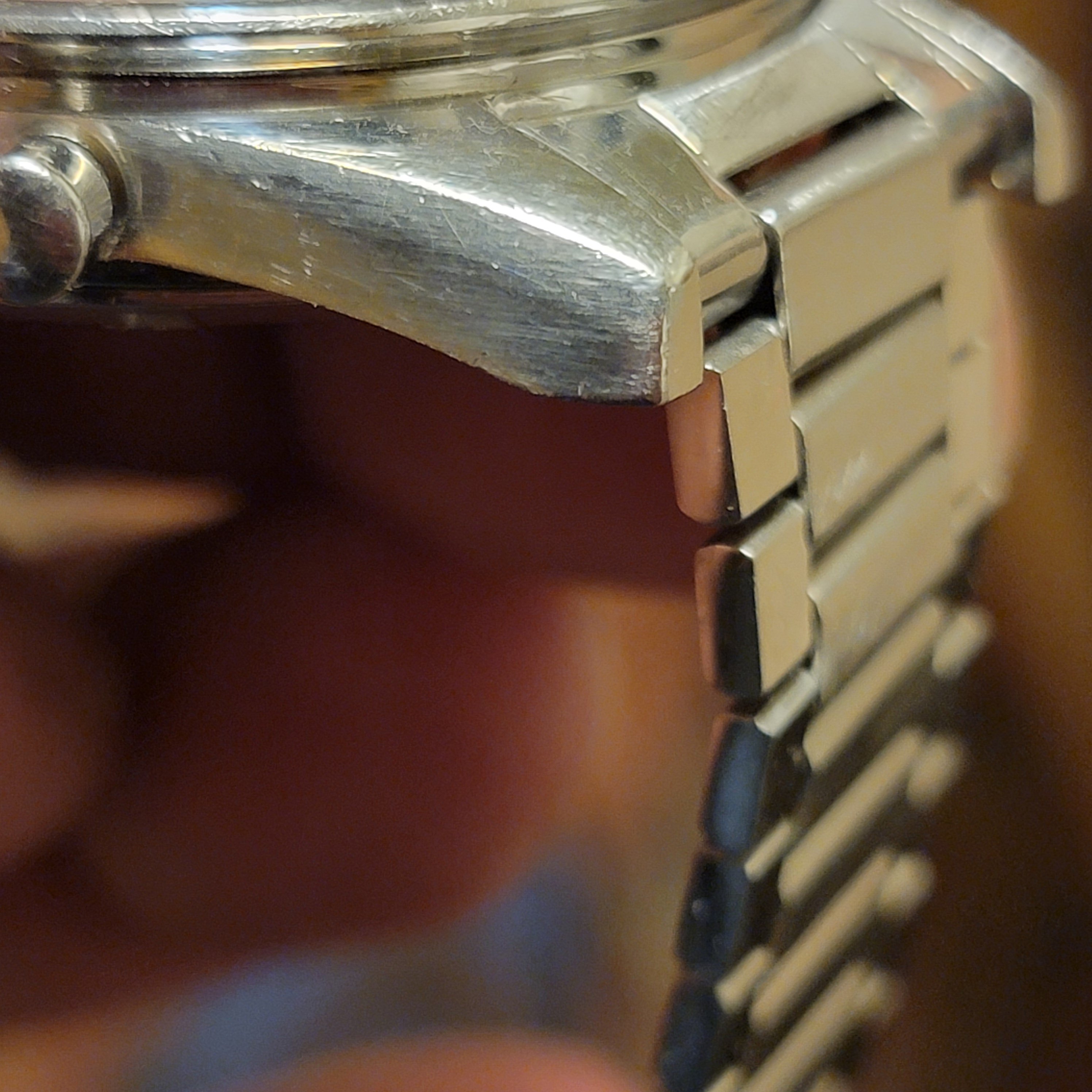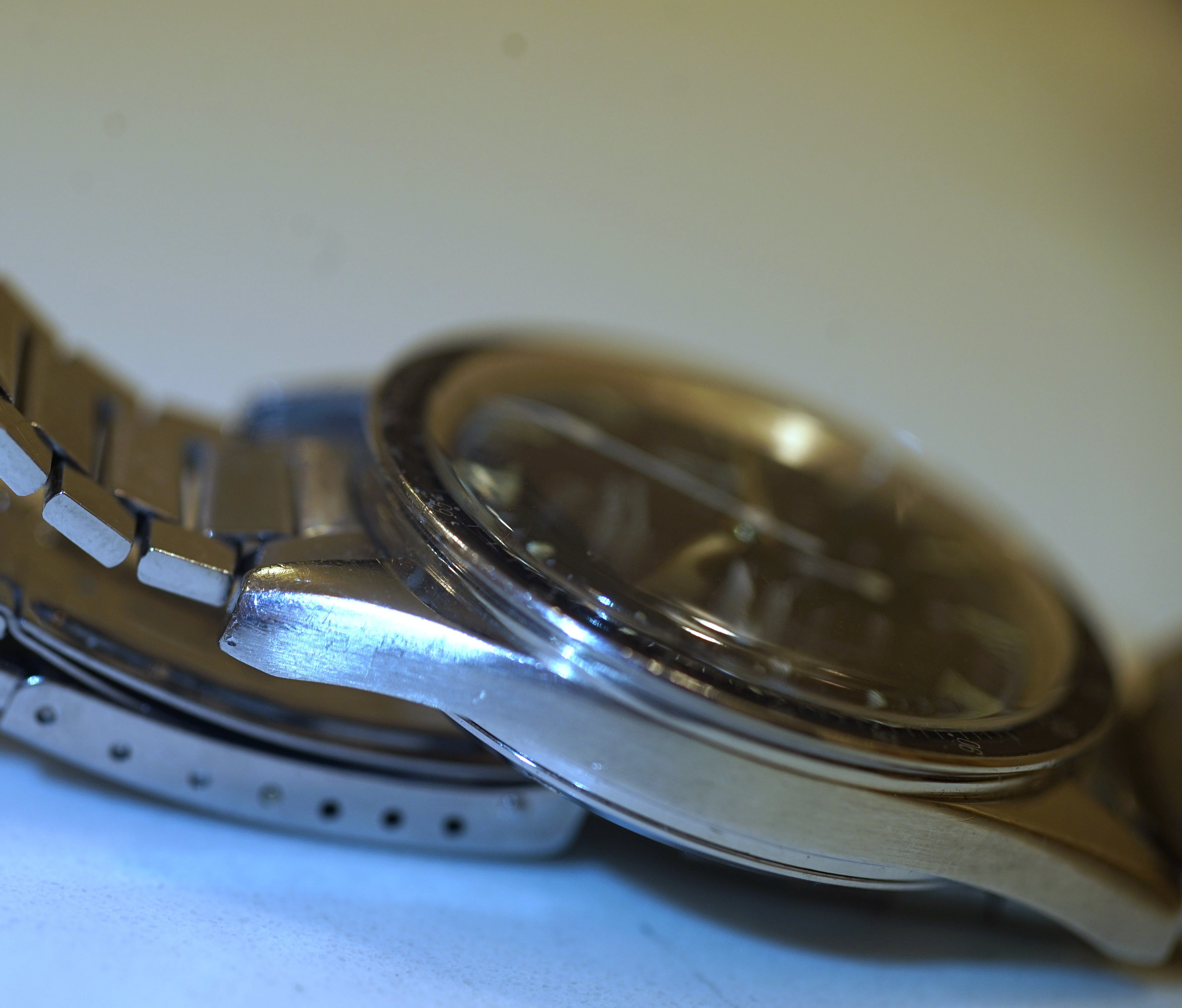 I think it is fair to say this is an overall excellent example, based on my own judgment and the opinions of a few other members who have seen the watch in person. The bezel is clearly not excellent in itself. The bracelet and endlinks are believed to be original and fit my 7.25 inch wrist. Note that the clasp hinge is tight and does not swing by gravity (see photo.) Taken as a whole, the case, dial, lume, and hands make this an exceptional watch, imo.