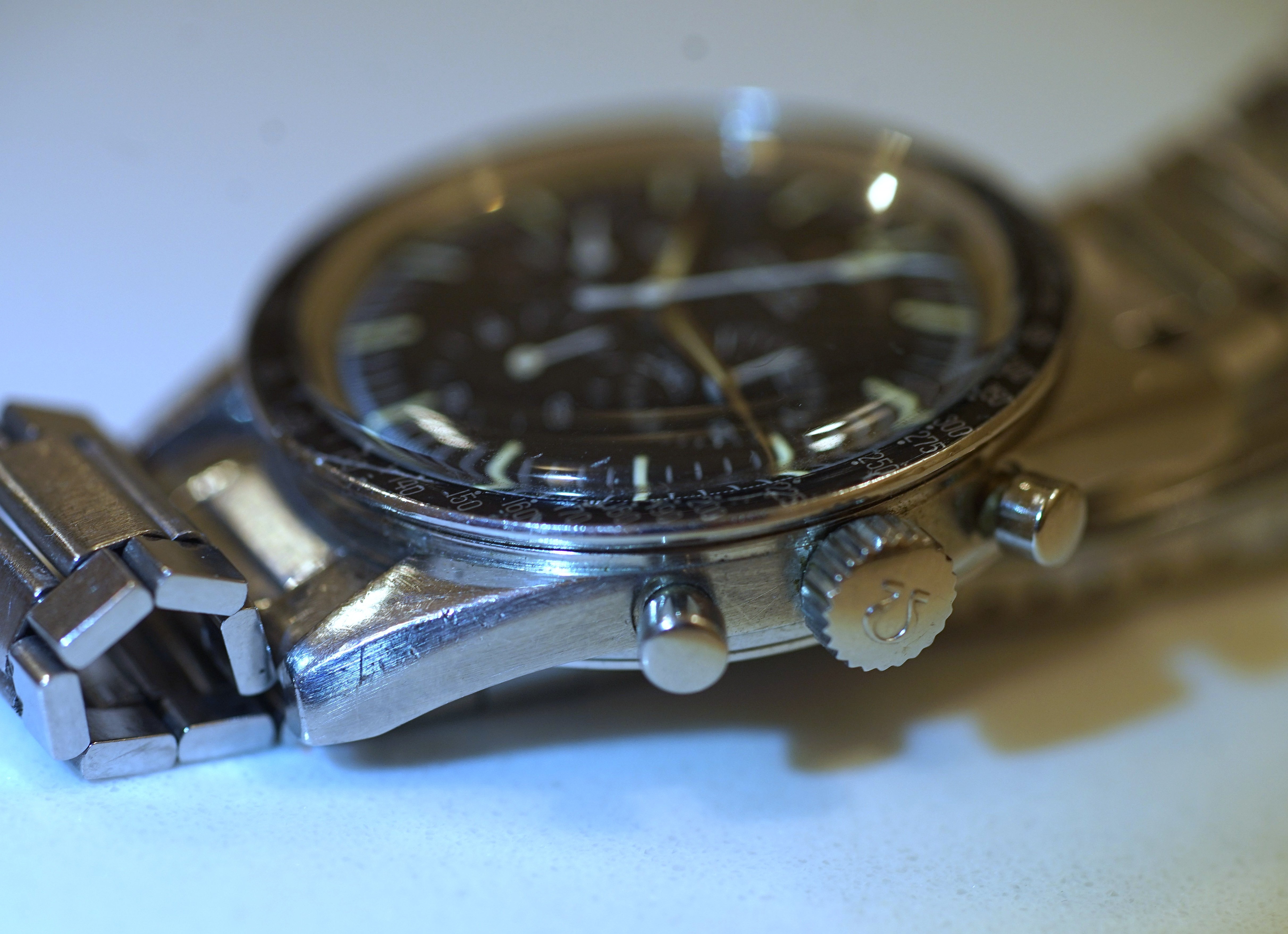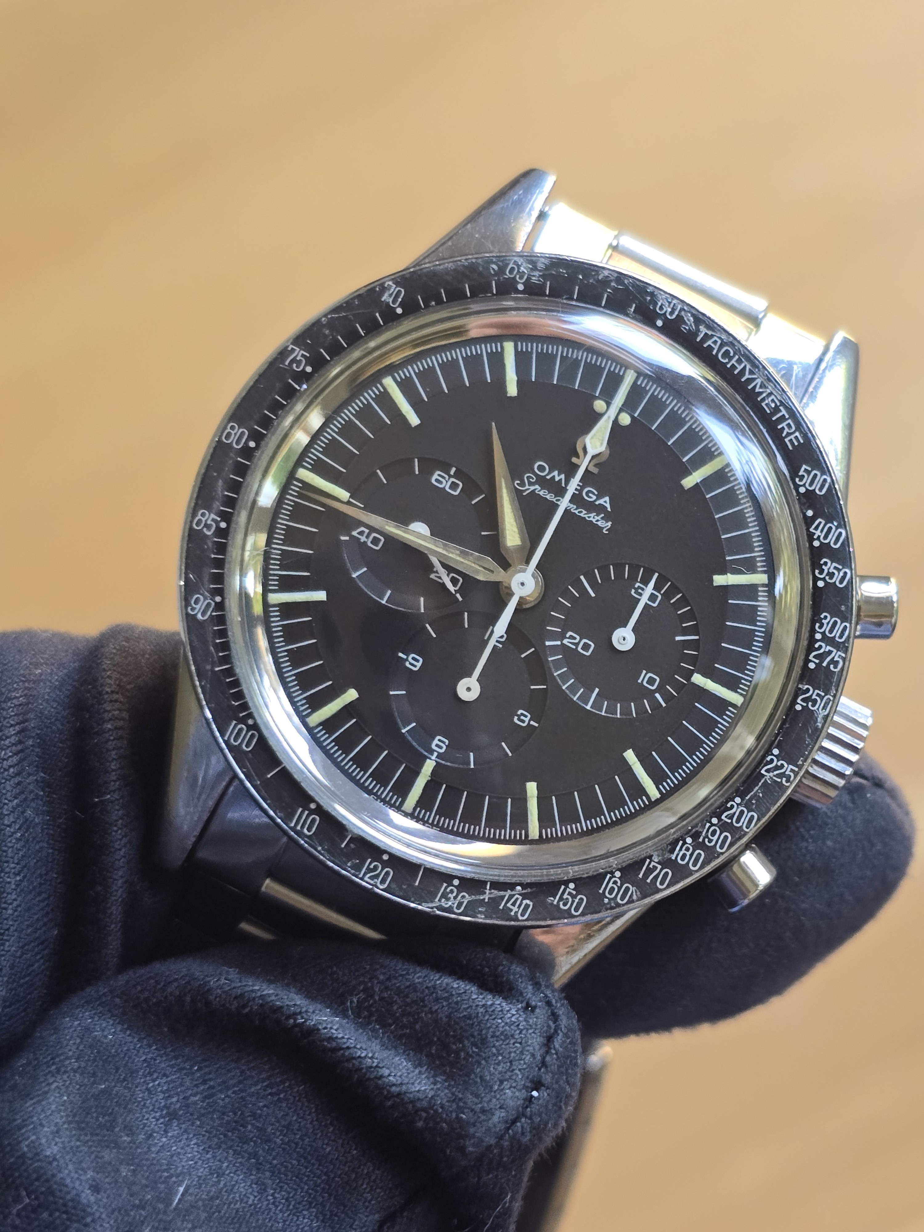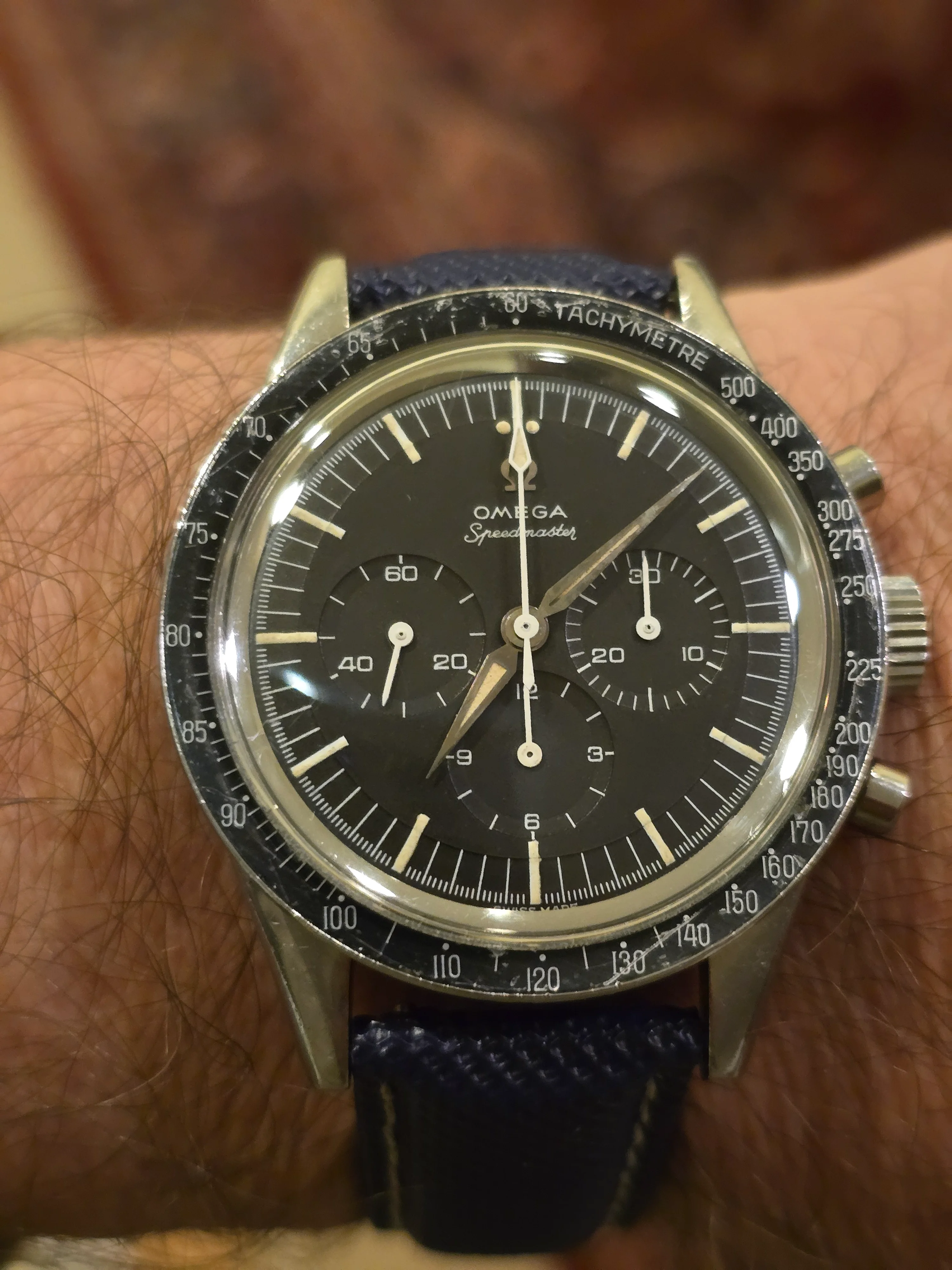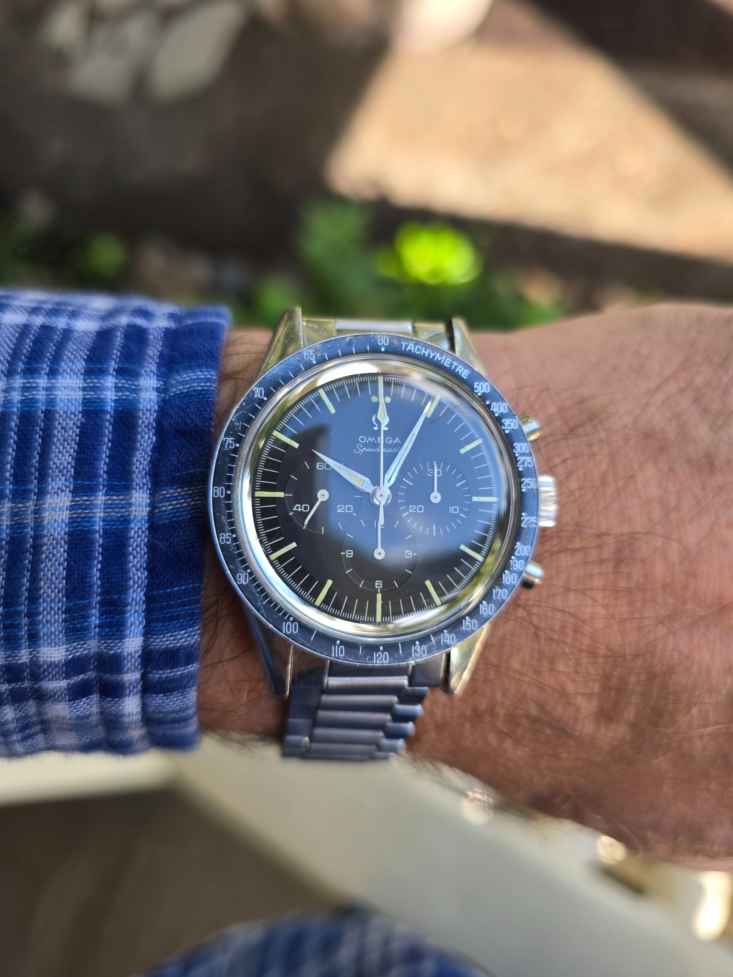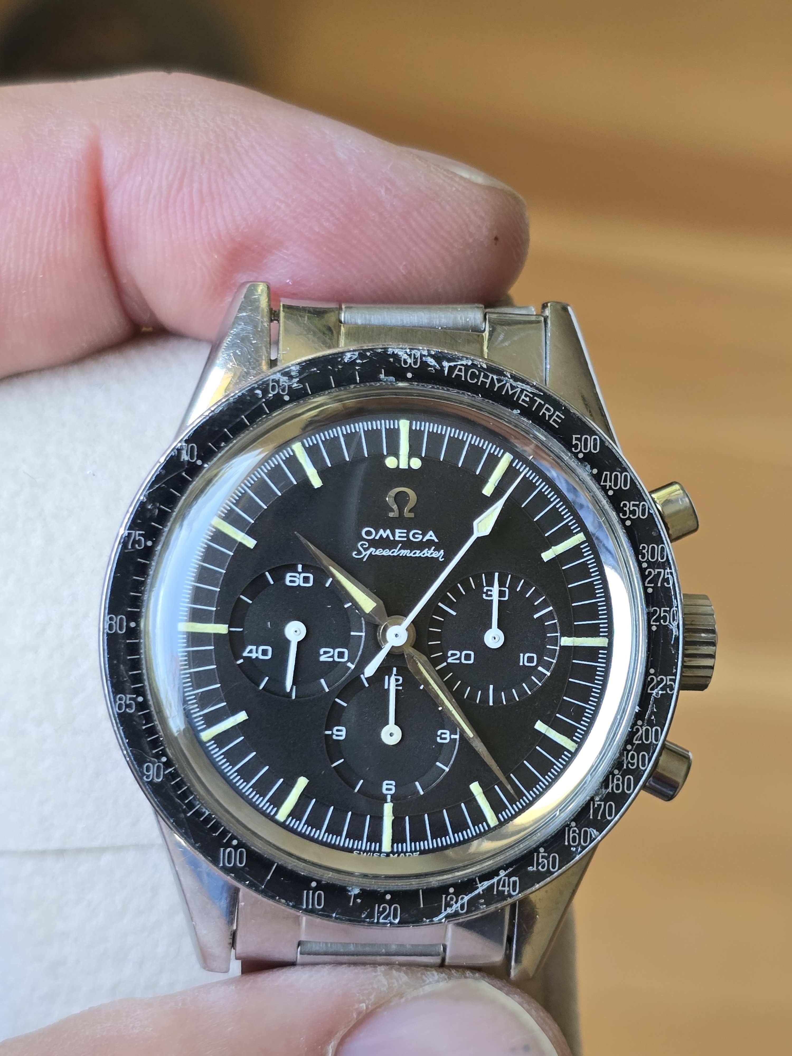 ··"I cut it TWICE and it's still short!"Omega Speedmaster 105.002-62 Alpha hands with 7912/6 Bracelet. Includes old style extract. Last service 2018 (see invoice photo.)