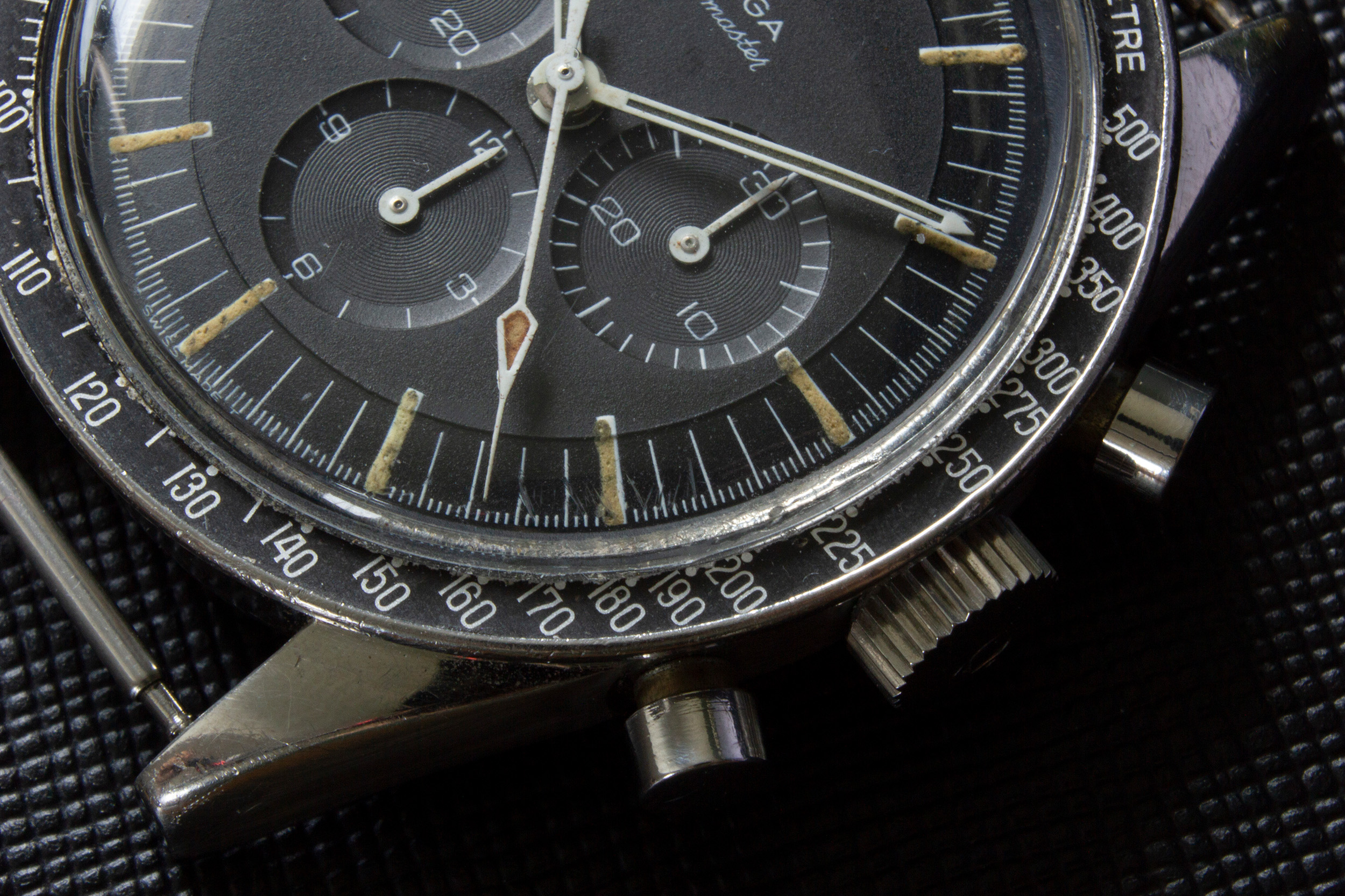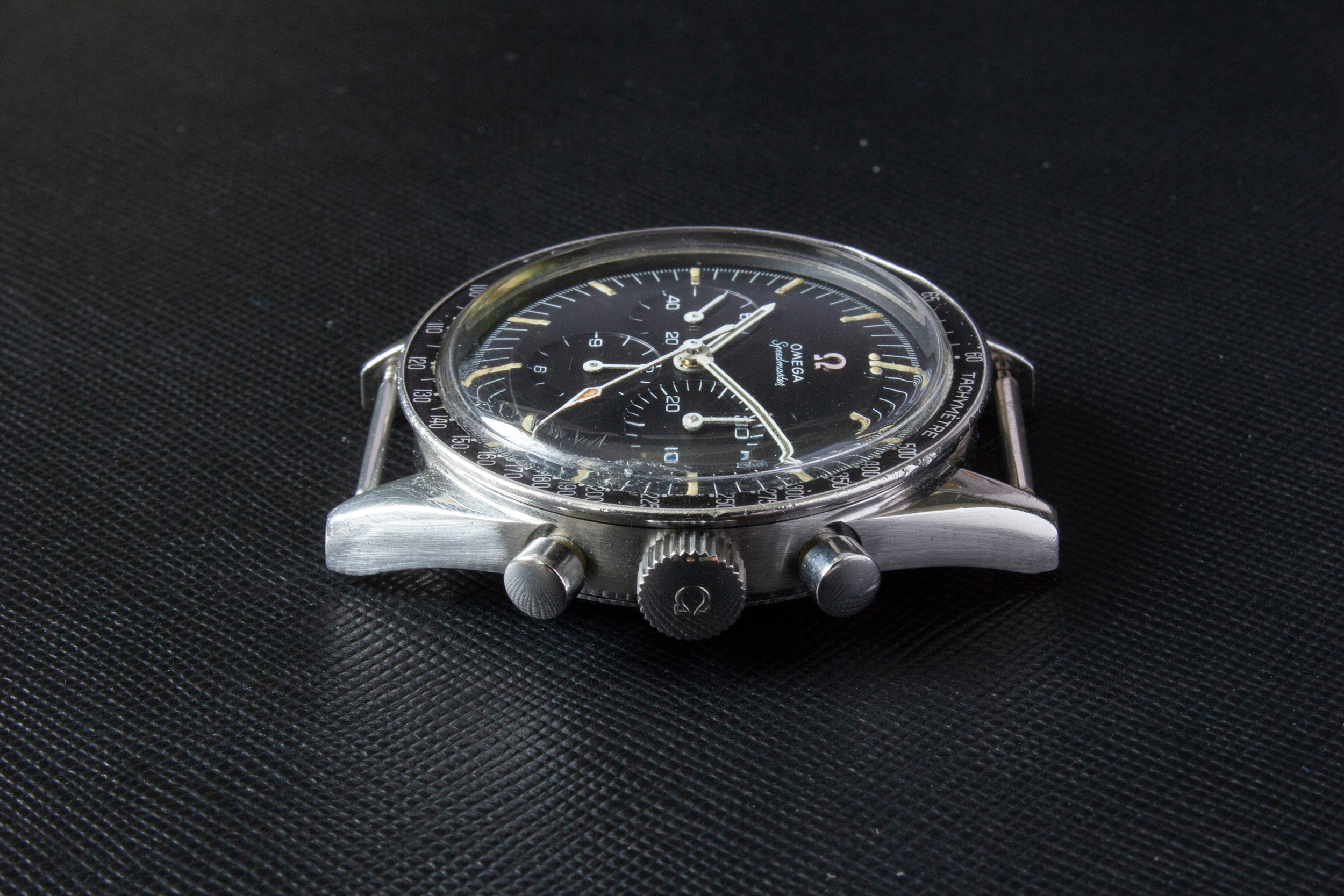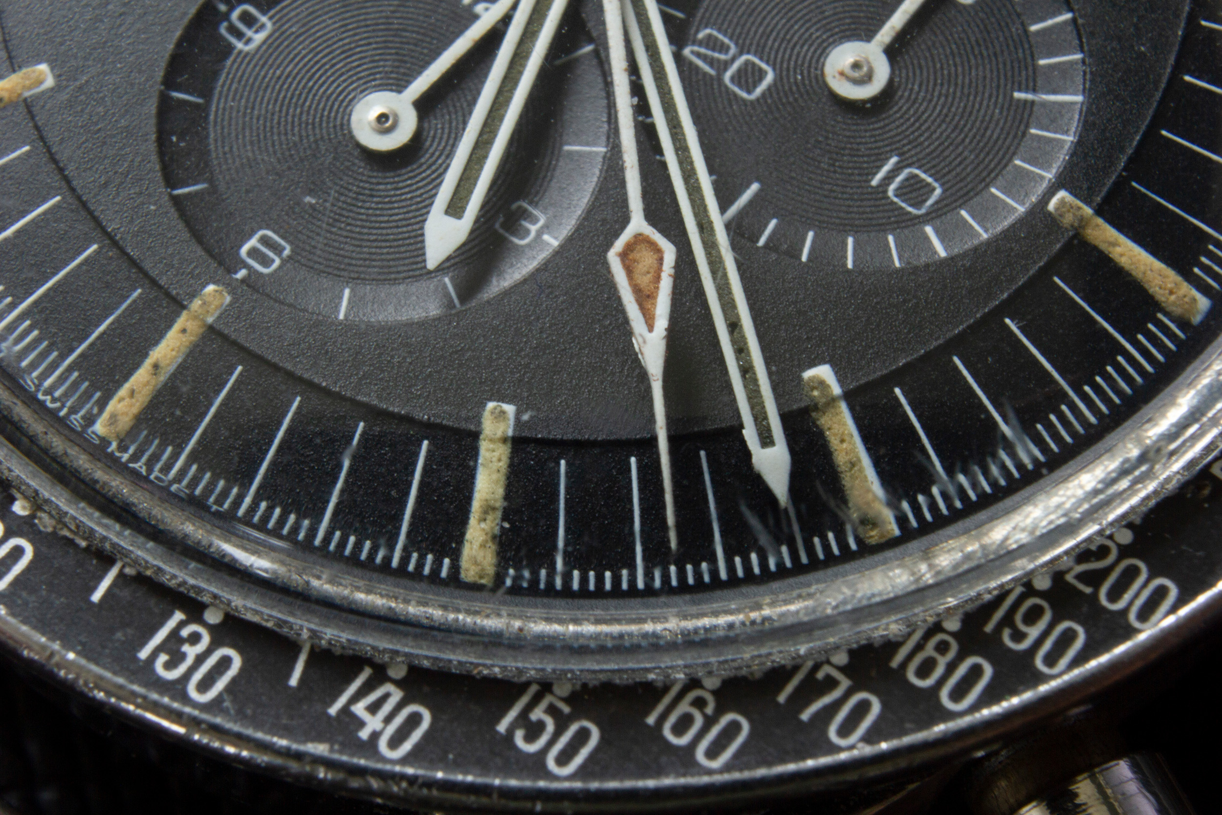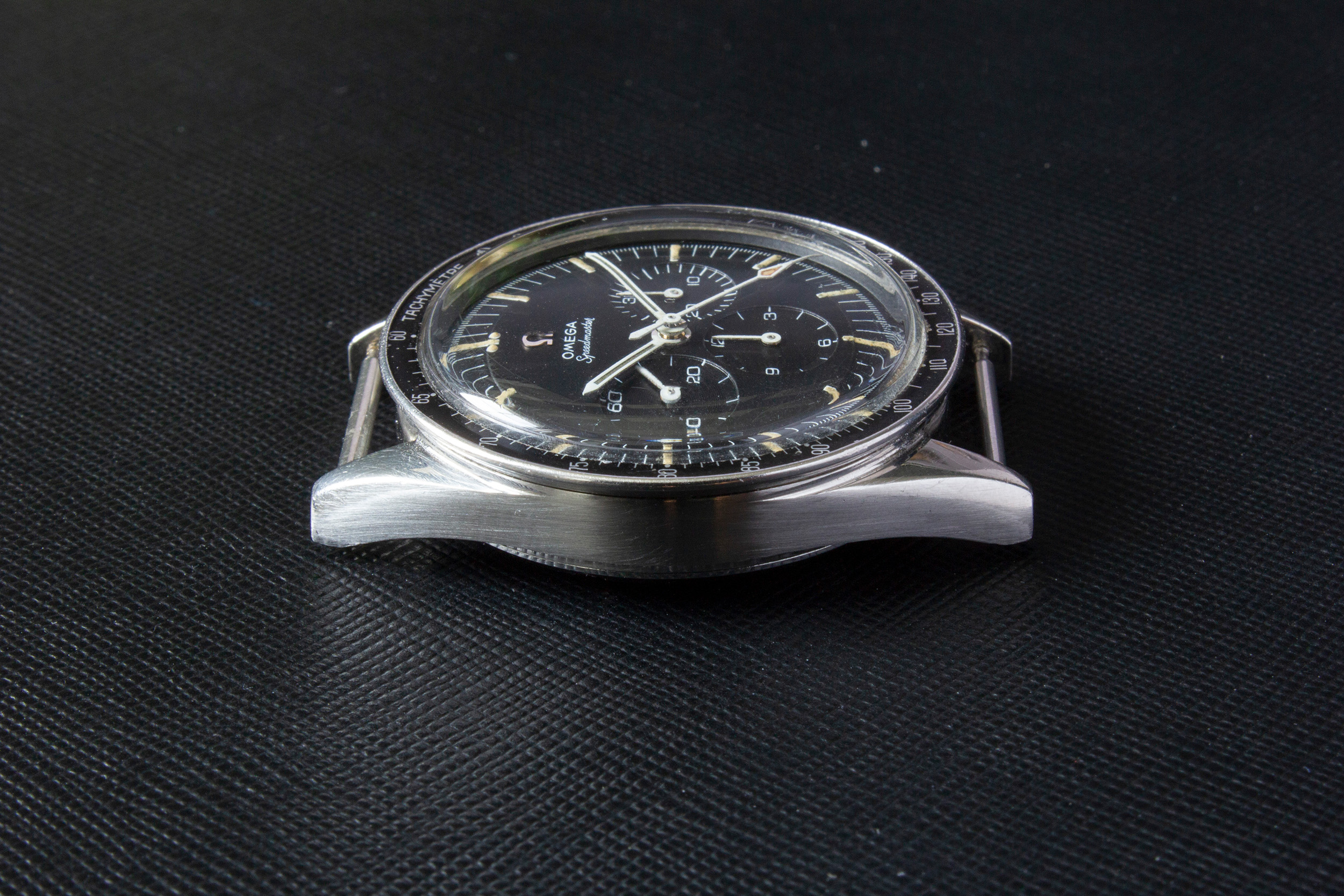 The hands of the watch are original and untouched. The lume has aged/darkened as with most vintage speedys and a bit of white lacquer was lost during the work of watchmakers in the past.