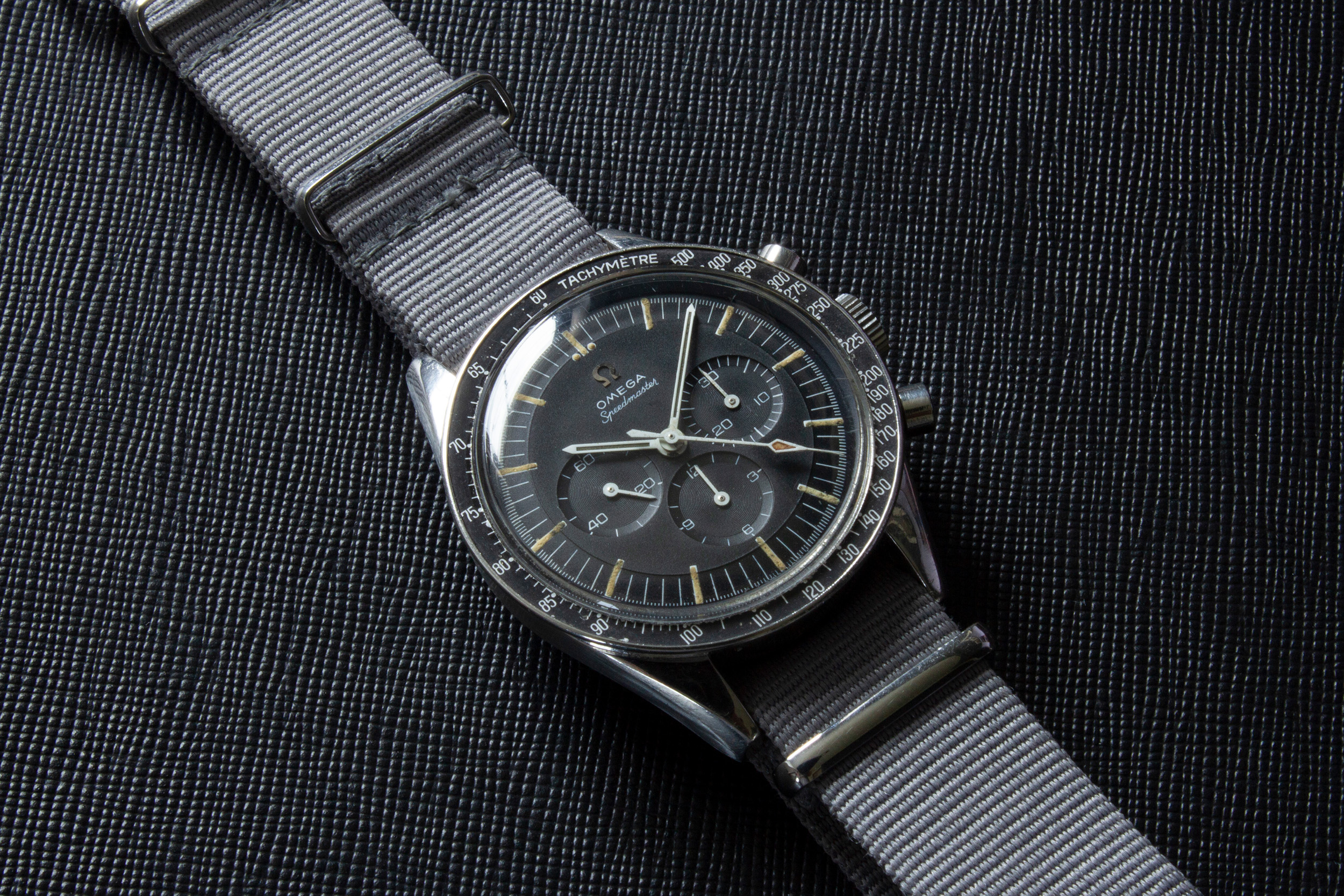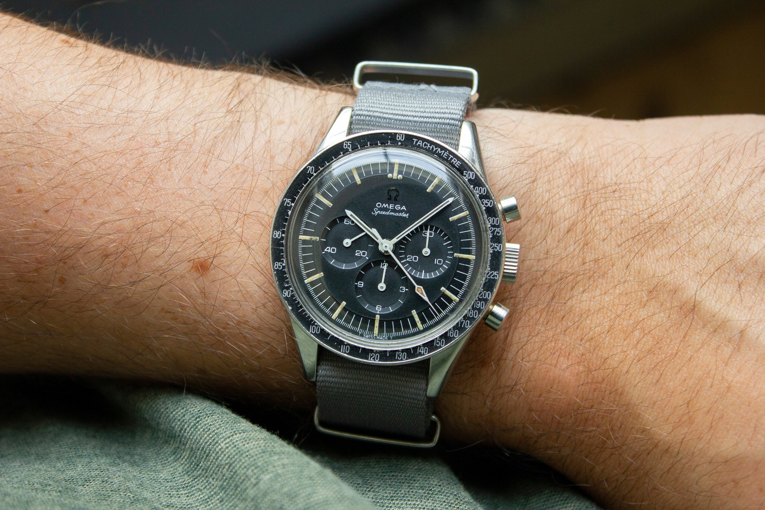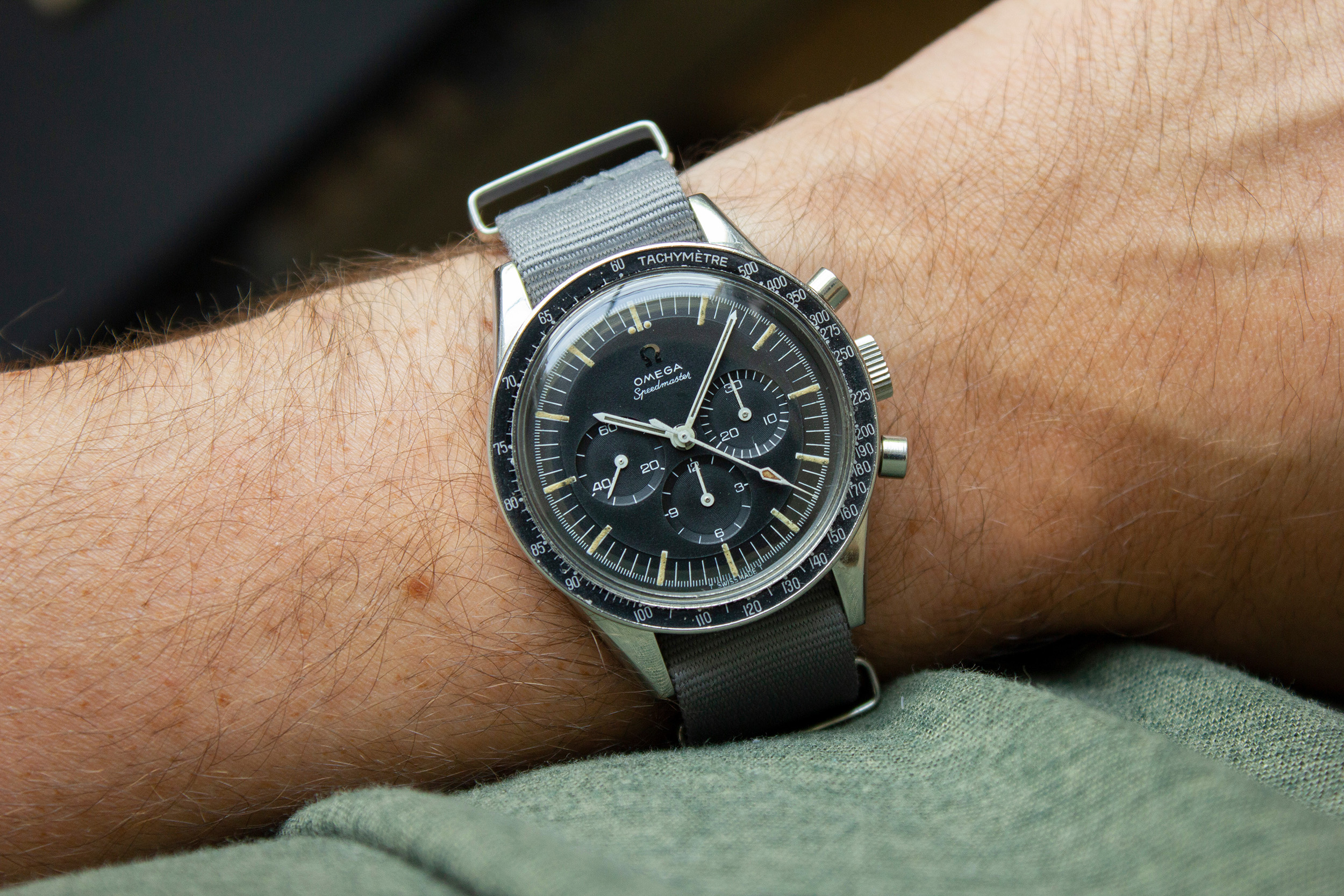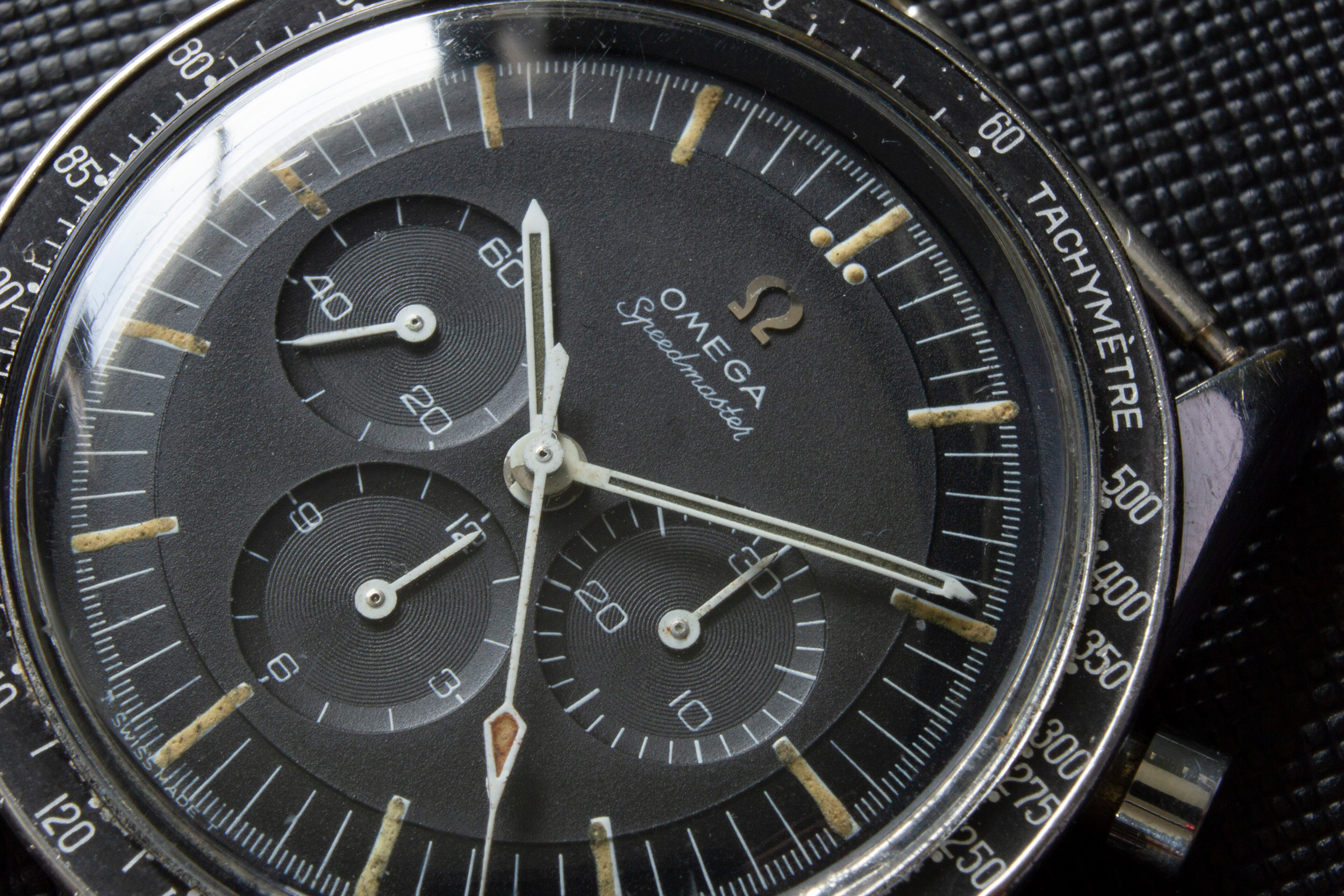 The hands of the watch are original and untouched. The lume has aged/darkened as with most vintage speedys and a bit of white lacquer was lost during the work of watchmakers in the past.