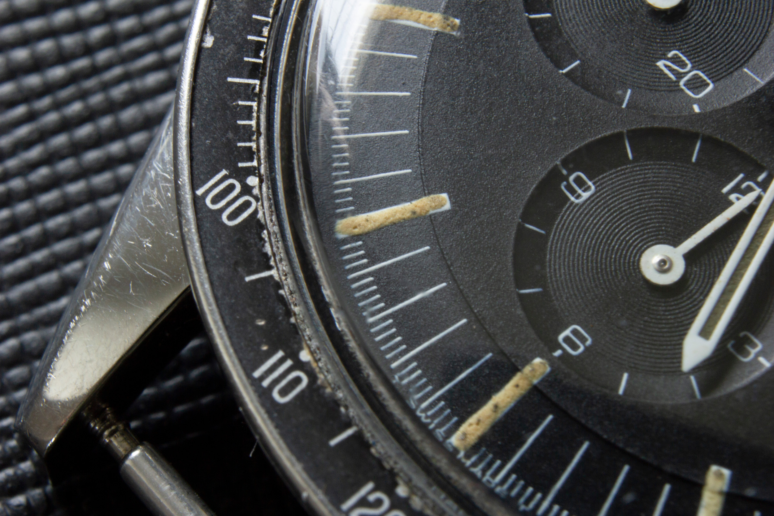 The dial of the watch is all original and in great condition. Not a single scratch is visible and the print is completely intact. The lume of the watch is all original as well and in good shape. I added macro shots for further inspection.