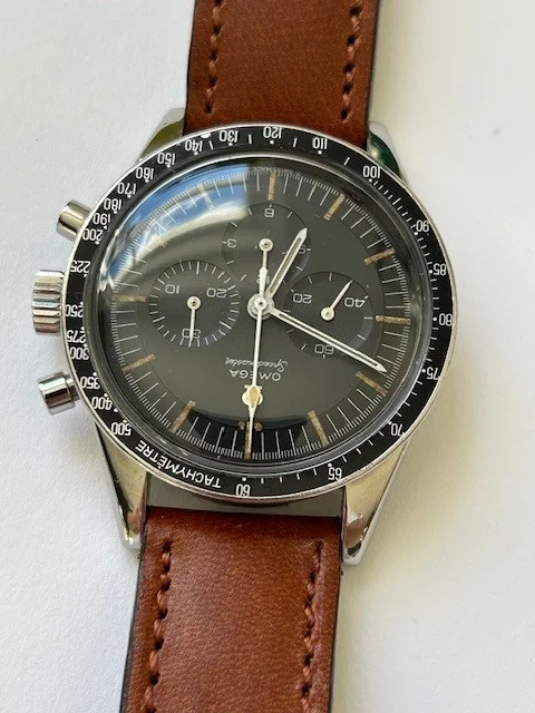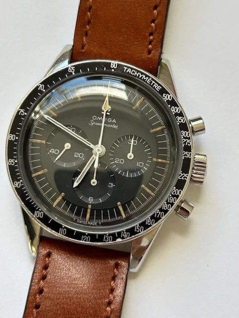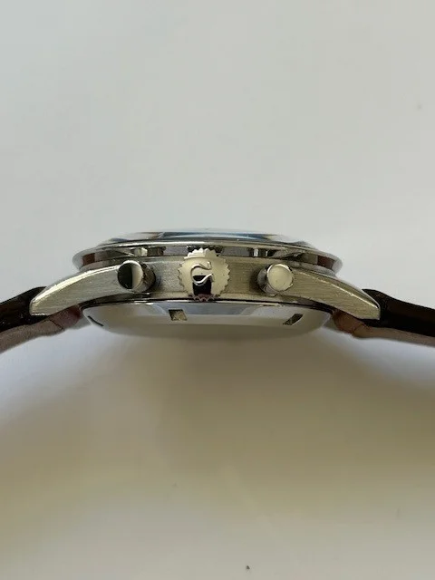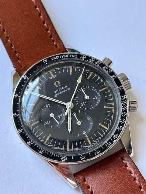 As you would expect it is the 321 movement and comes with dot over 90 bezel in good condition and correct 24 tooth crown. Pushers are the correct Medium size as referenced in MWO. It will come on a generic strap with an Omega clasp (I don't believe this to be original). Dial is in very good condition with attractive lume - in my opinion 😀