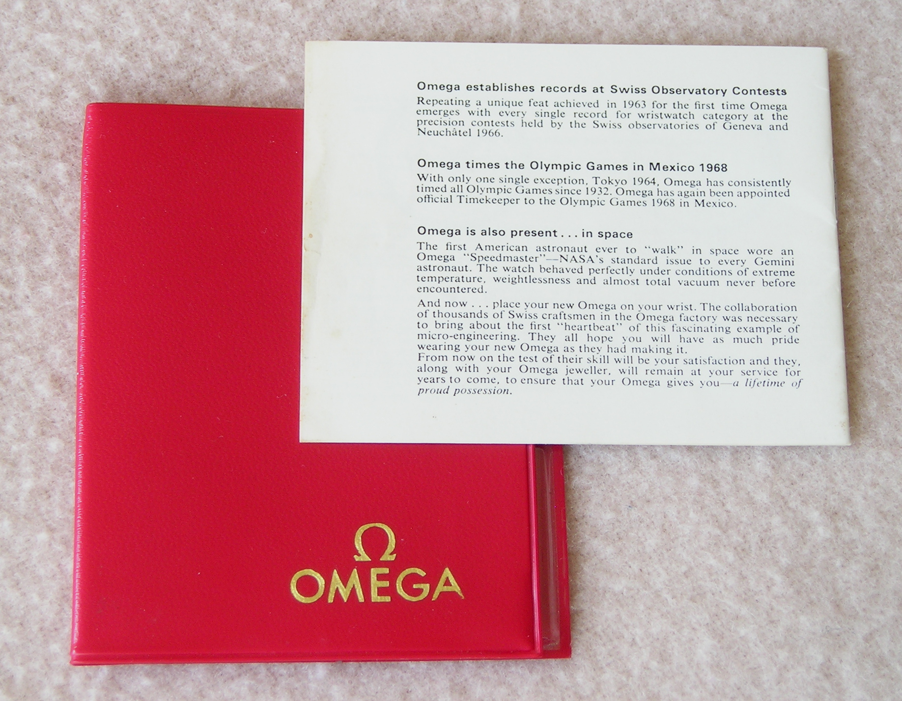 In addition to both the inner and outer box the red plastic wallet contains the 'You and Your Omega' booklet.