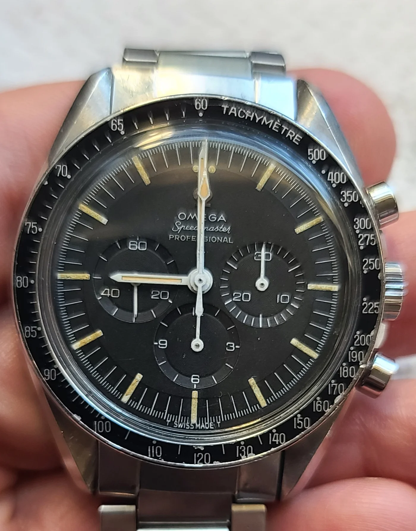 Looks like someone polished the back to remove a custom engraving, which is unfortunate because the case looks quite sharp otherwise. Other than that, the only thing that jumps out at me is the lume, but it probably looks totally fine on the wrist. 👍
