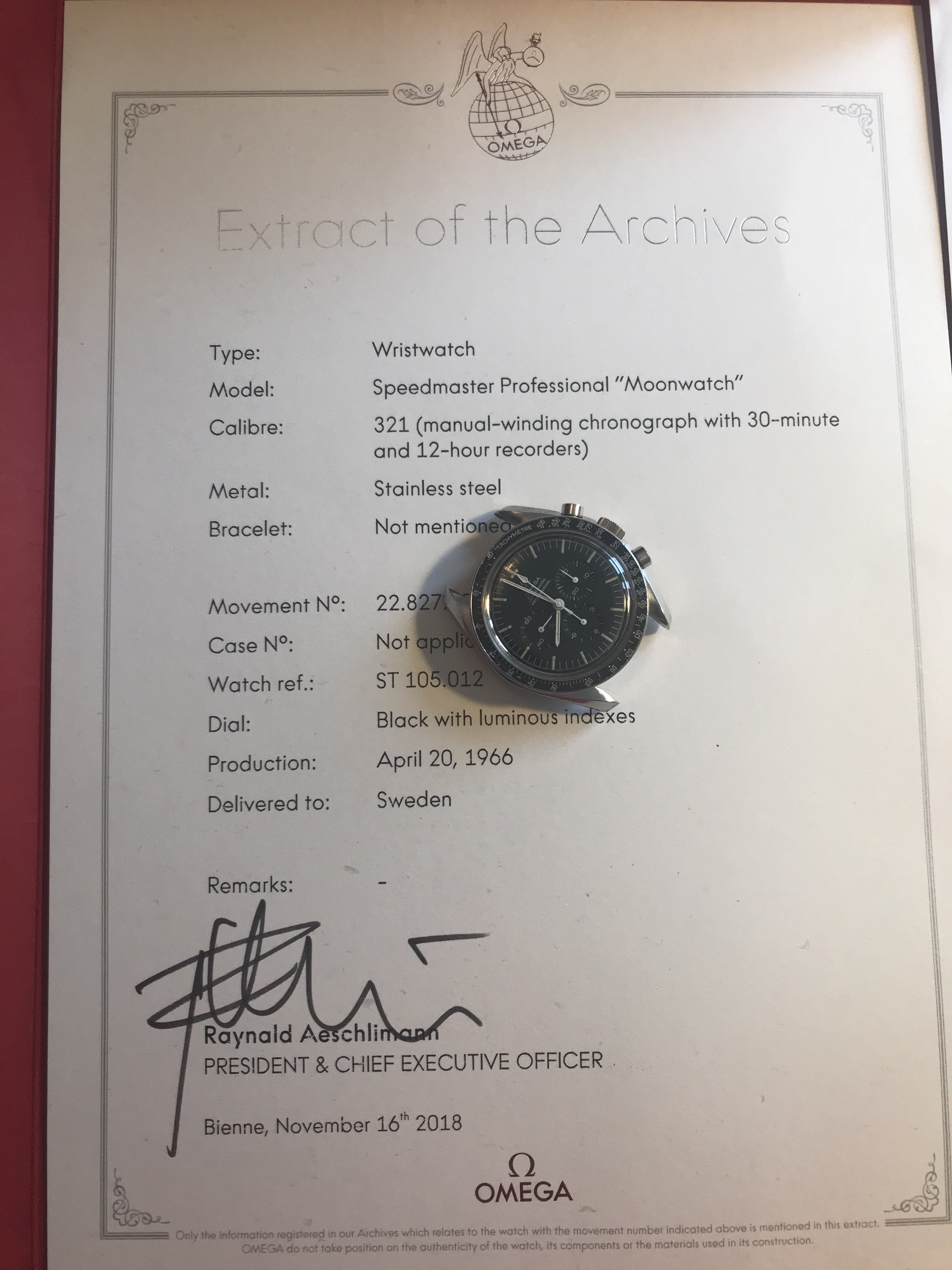 Accessories: Watch comes head only, with Omega Extract and all the papers that came with the watch when bought new as receipt and insurance papers.