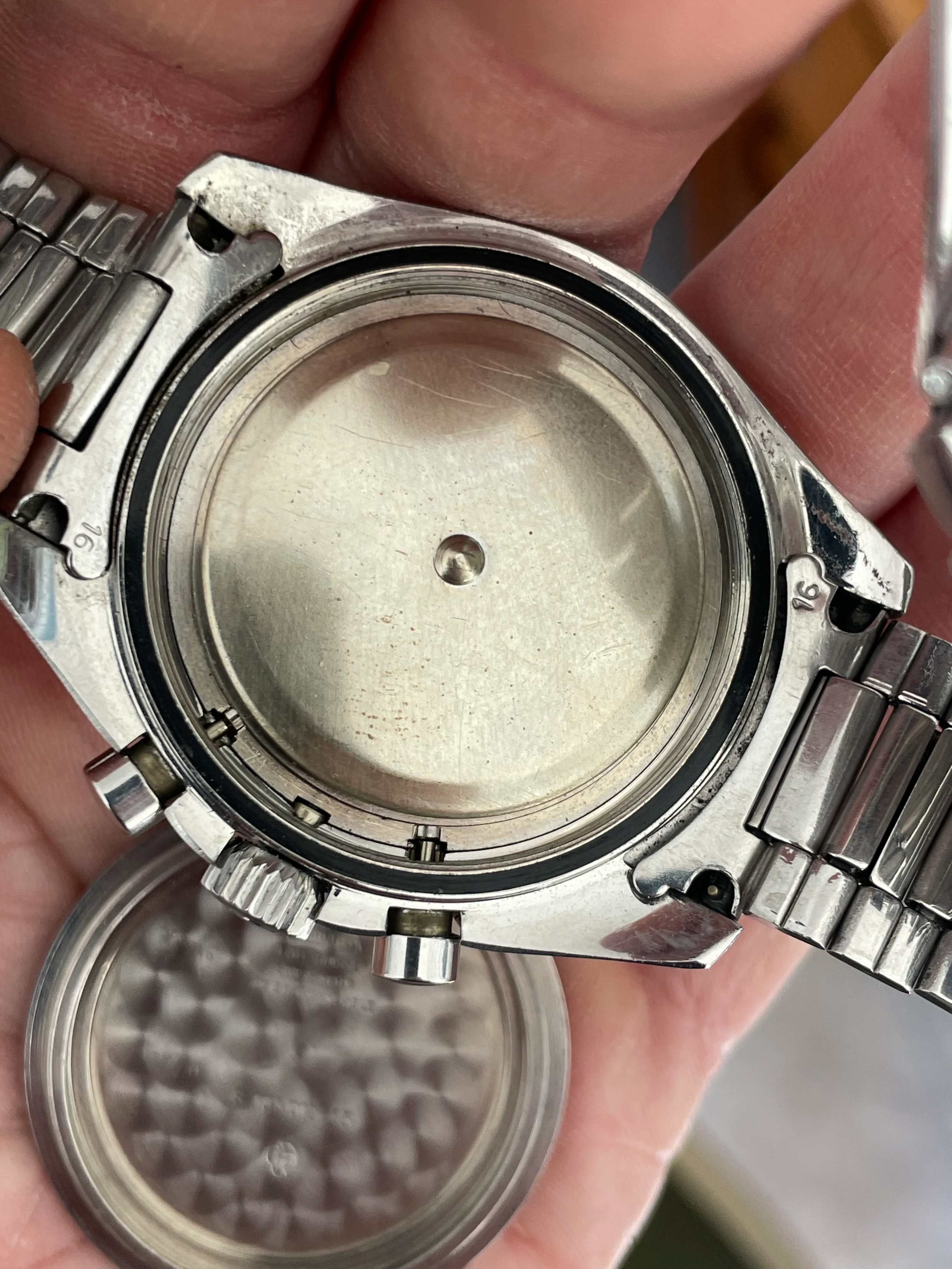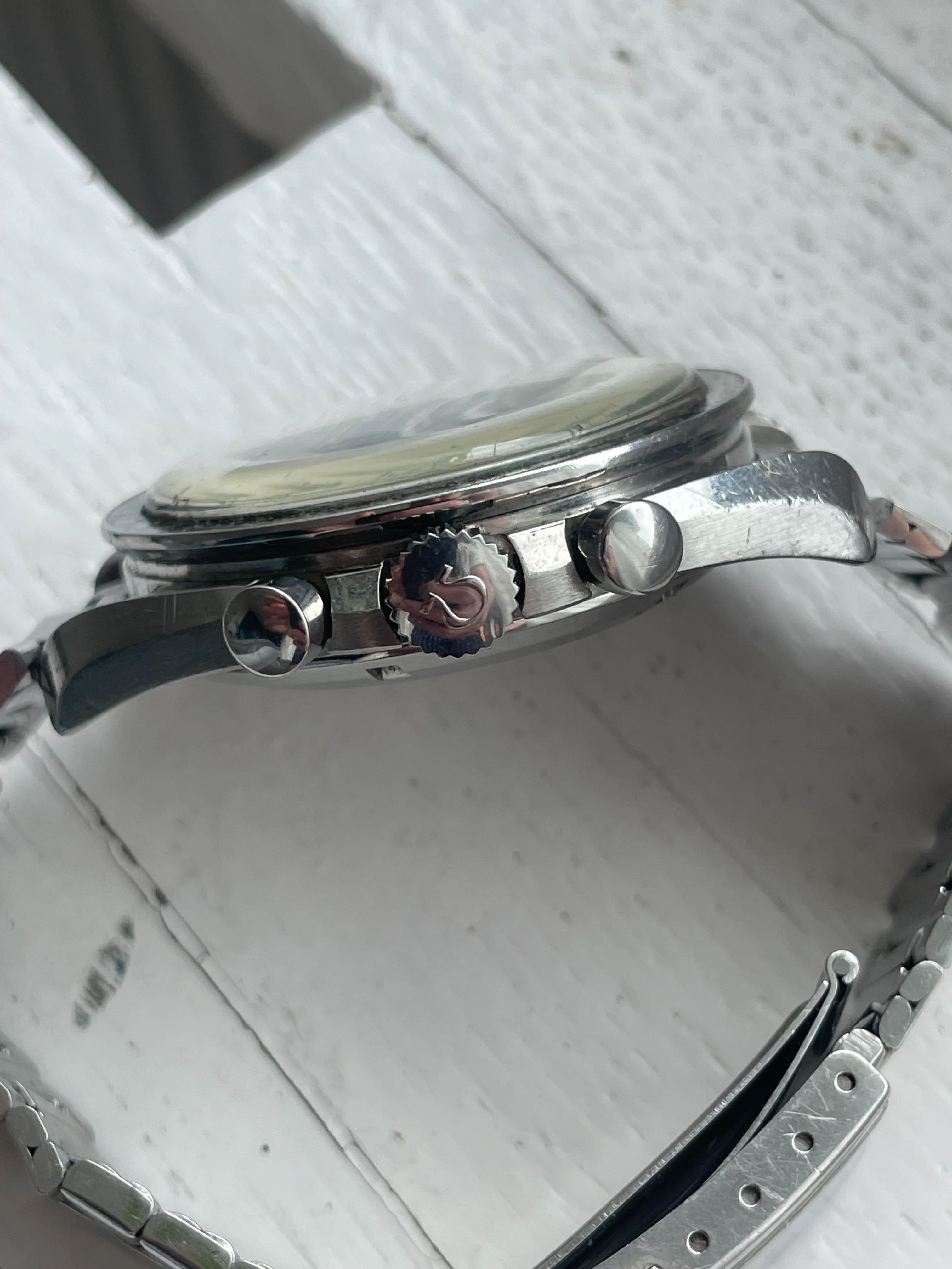 Everything on the watch is original, it has the original crown, fat neck pusher, DON bezel and even