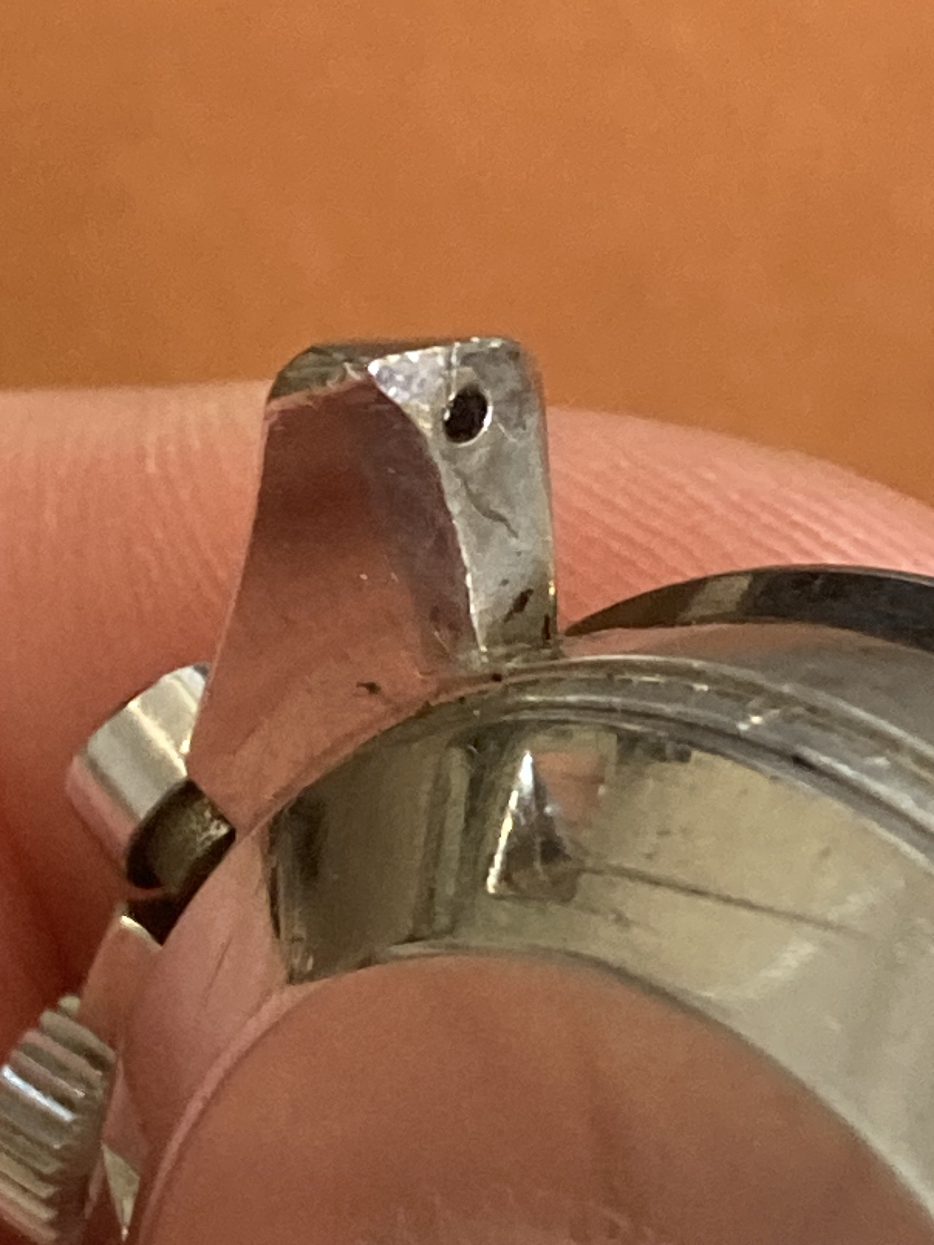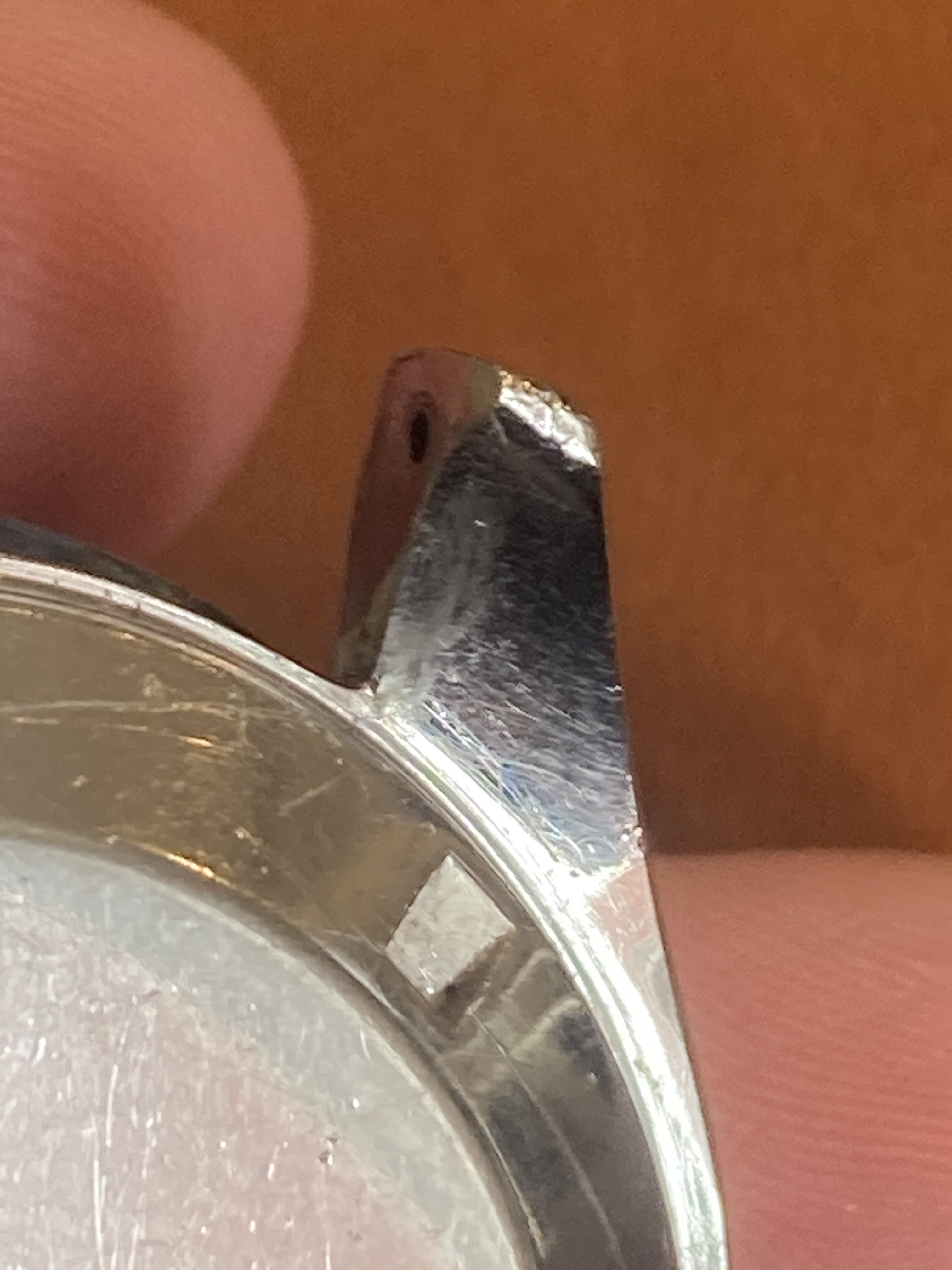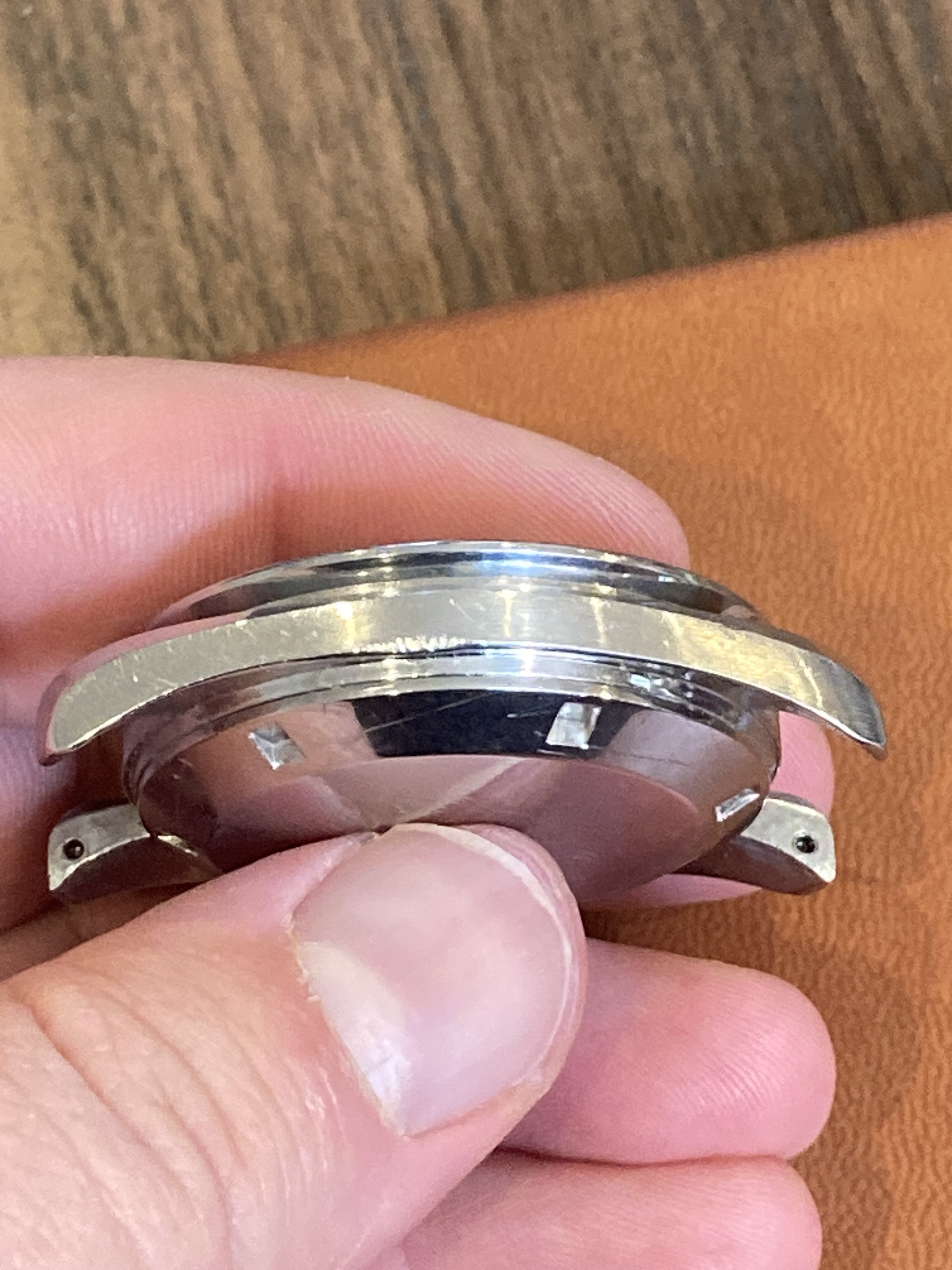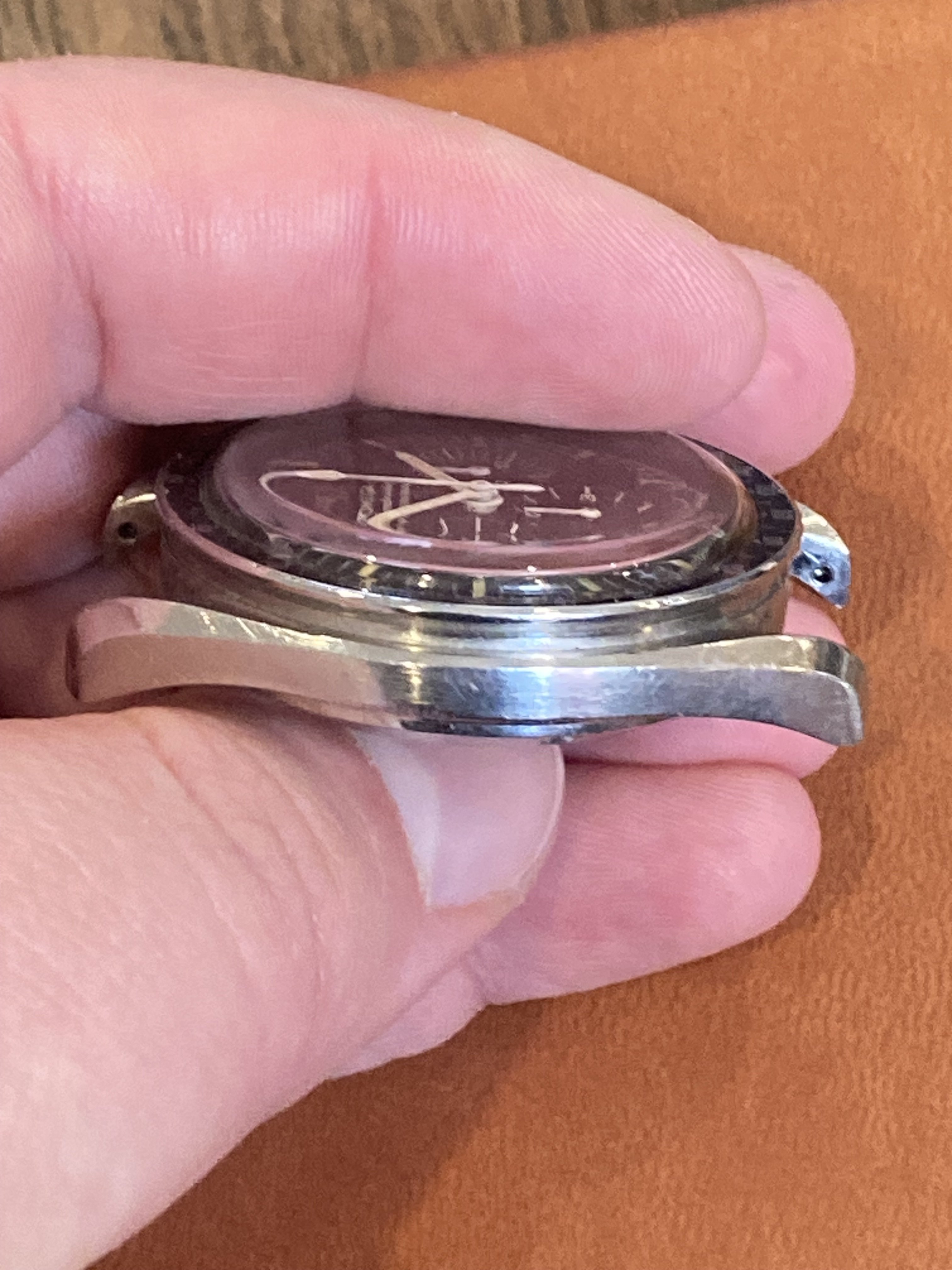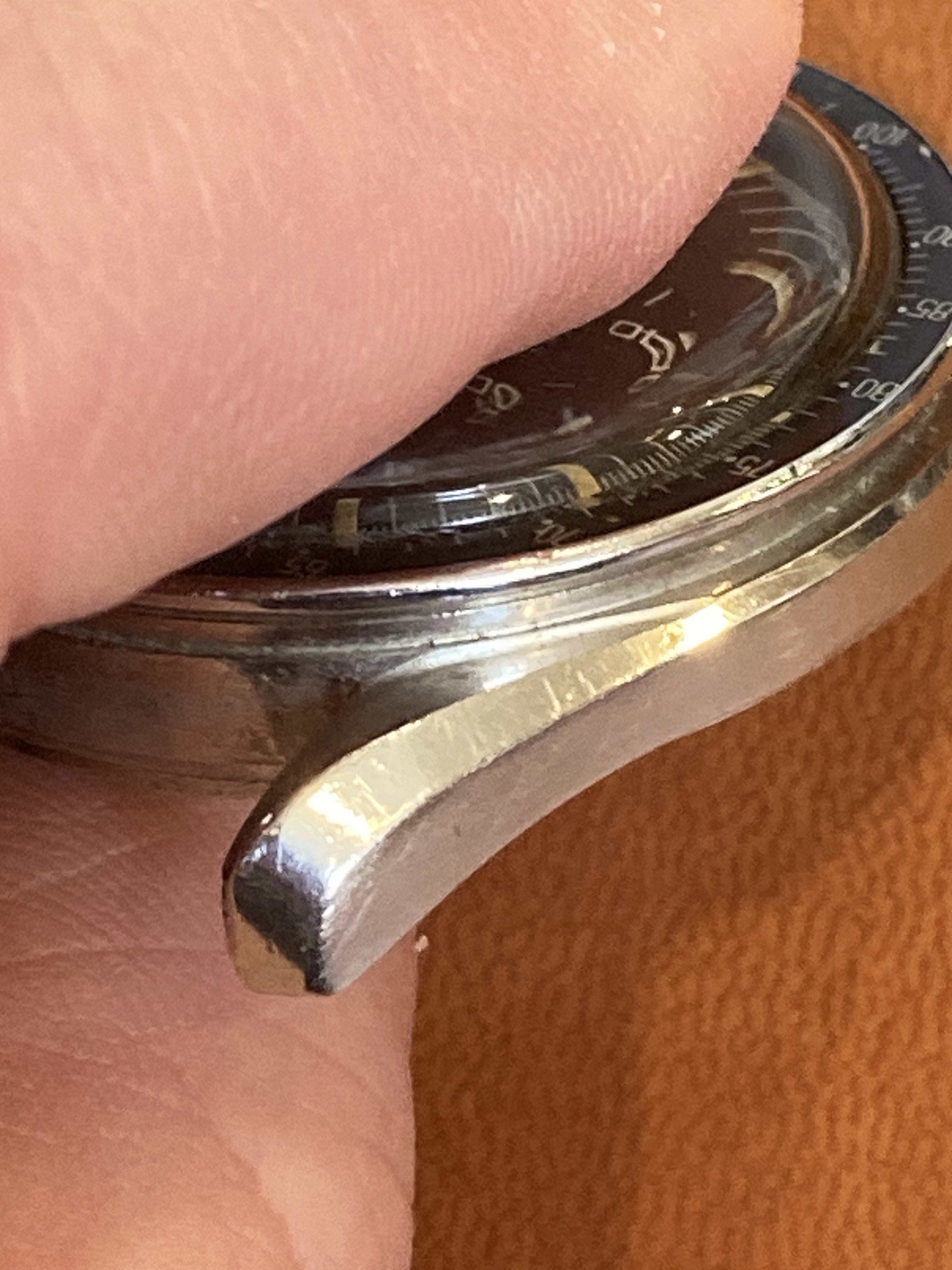 Worn case with a few small marks and rubs, it's definitely more of a wearer than a safe queen. I caused the bump on the 9 o'clock side while presenting at a lectern and bumped my wrist while making a point. It’s the only scuff I gave the watch during its time with me, but on the wrist it isn’t very noticeable.
