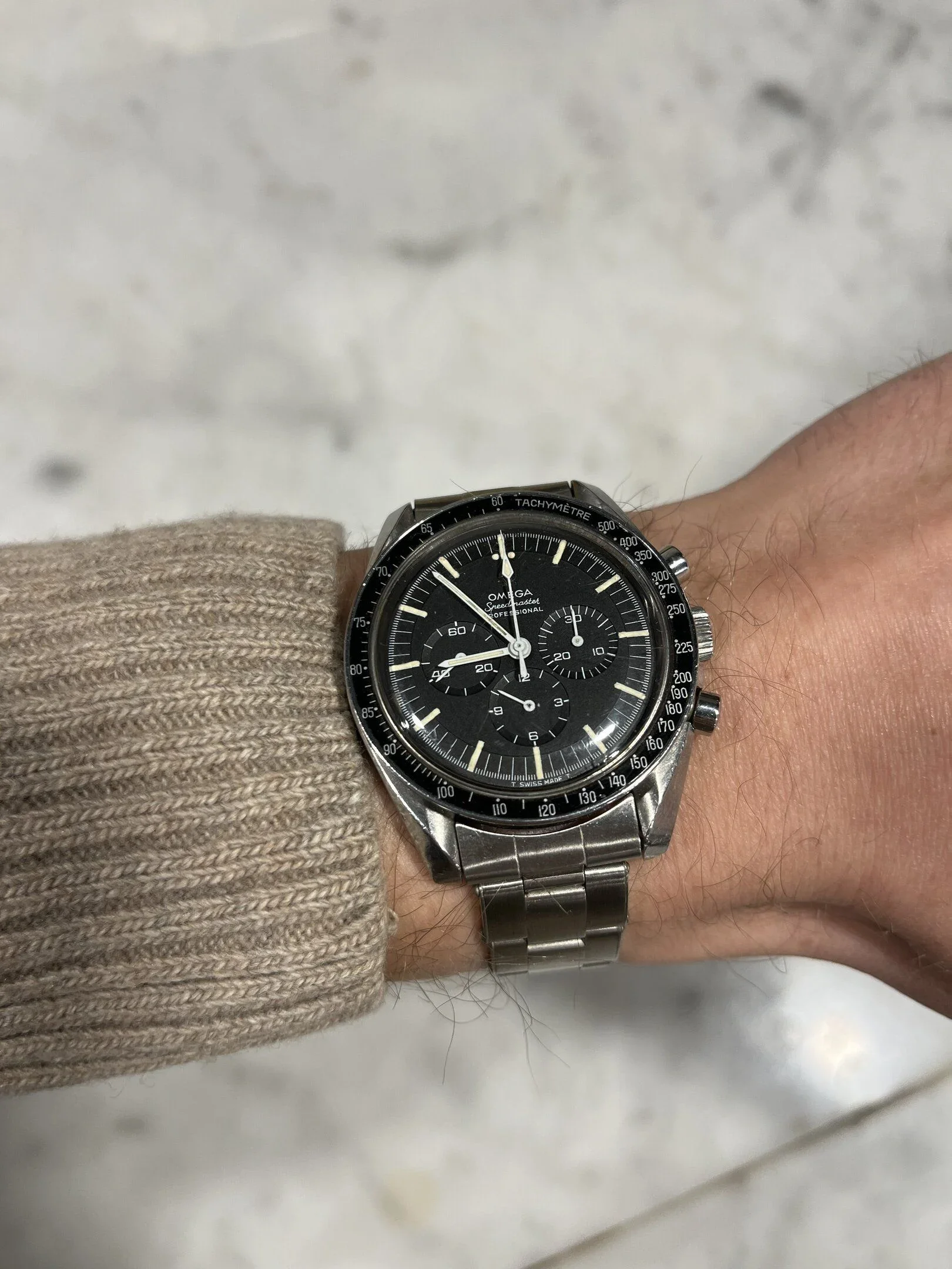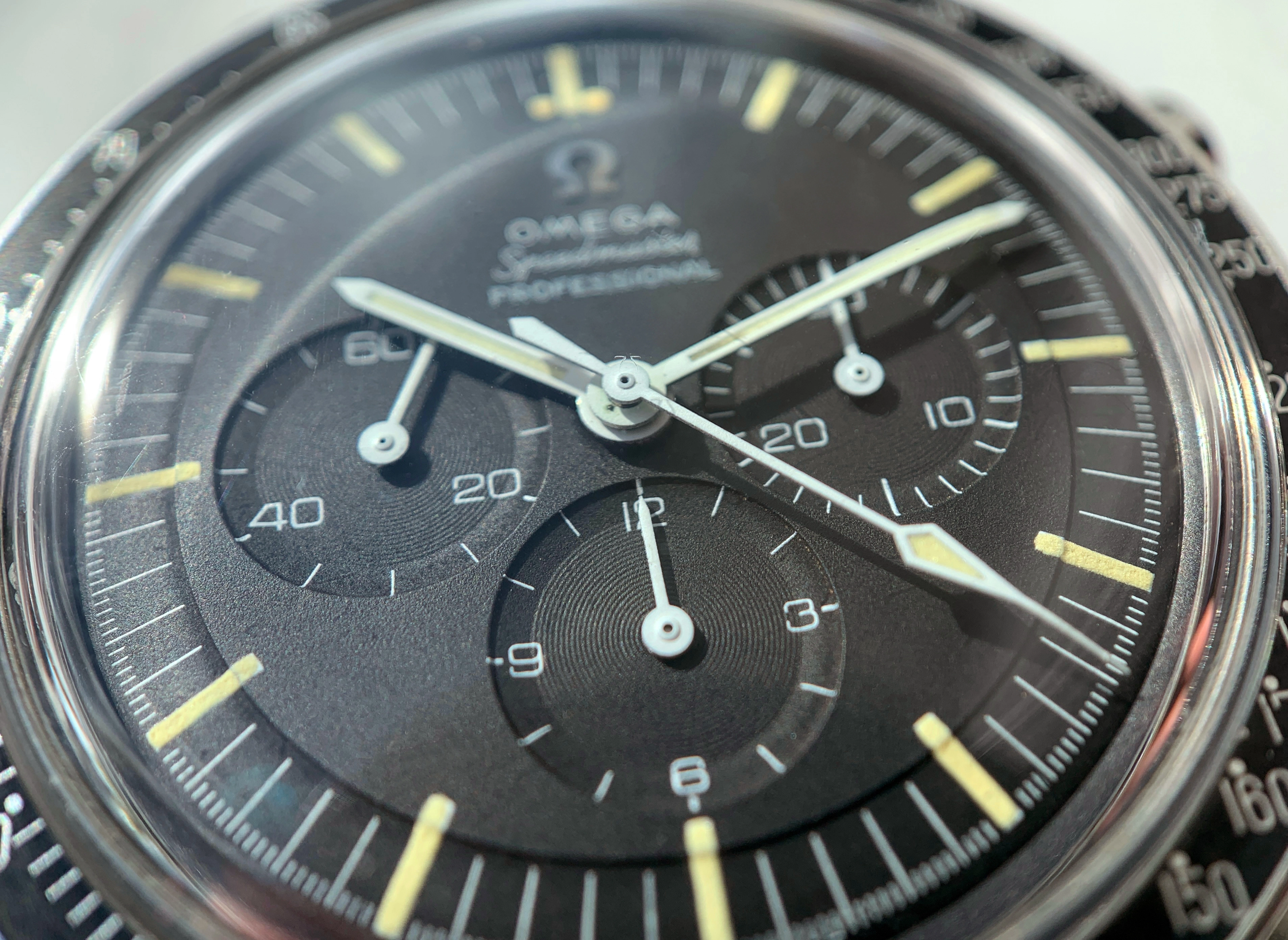 My latest addition to the Speedmaster collection is this 105.012-66 HF in all original condition, up to the first generation hesalite with the flat foot Omega logo. It has the close T dial and 1506/16 bracelet with hardly any stretch. I bought it through Watchfid (owned by the writers of Moonwatch Only), I can highly recommend them, Anthony was amazing.