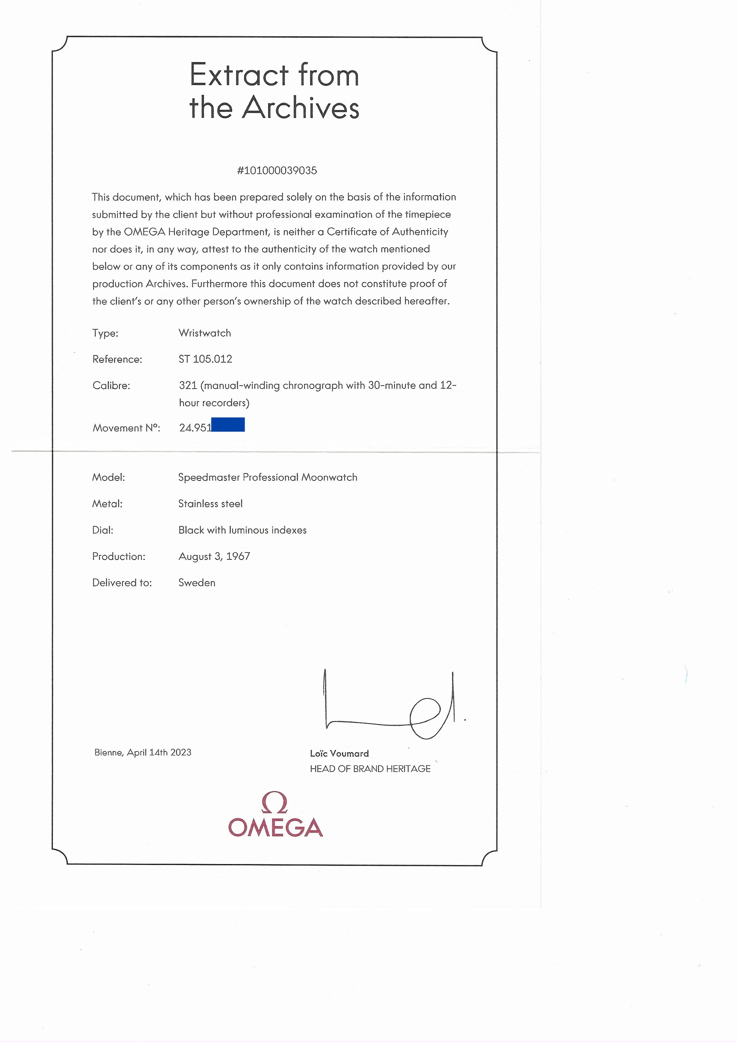 Mine was produced on the 1st of September 1967 and delivered to Italy.