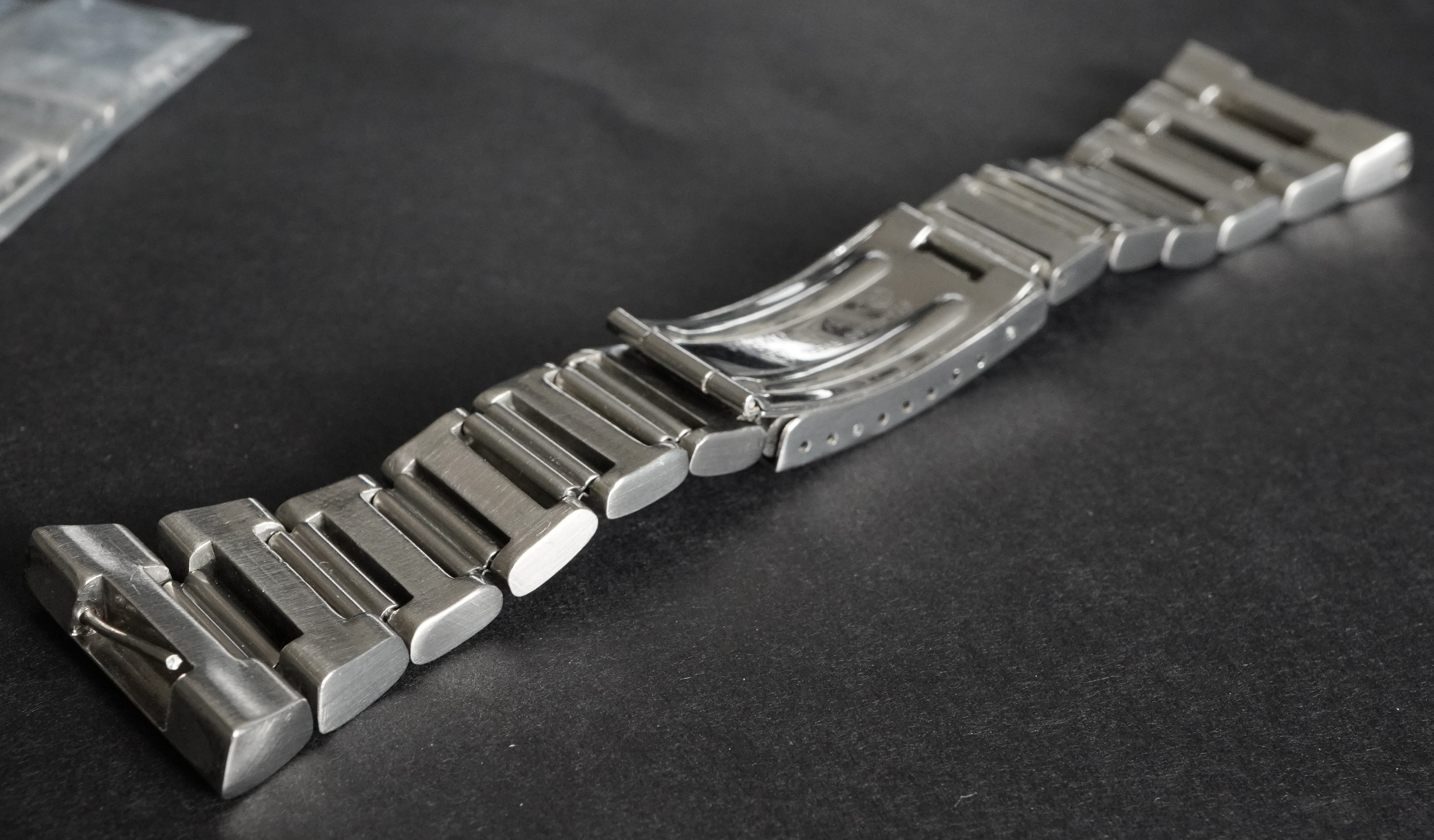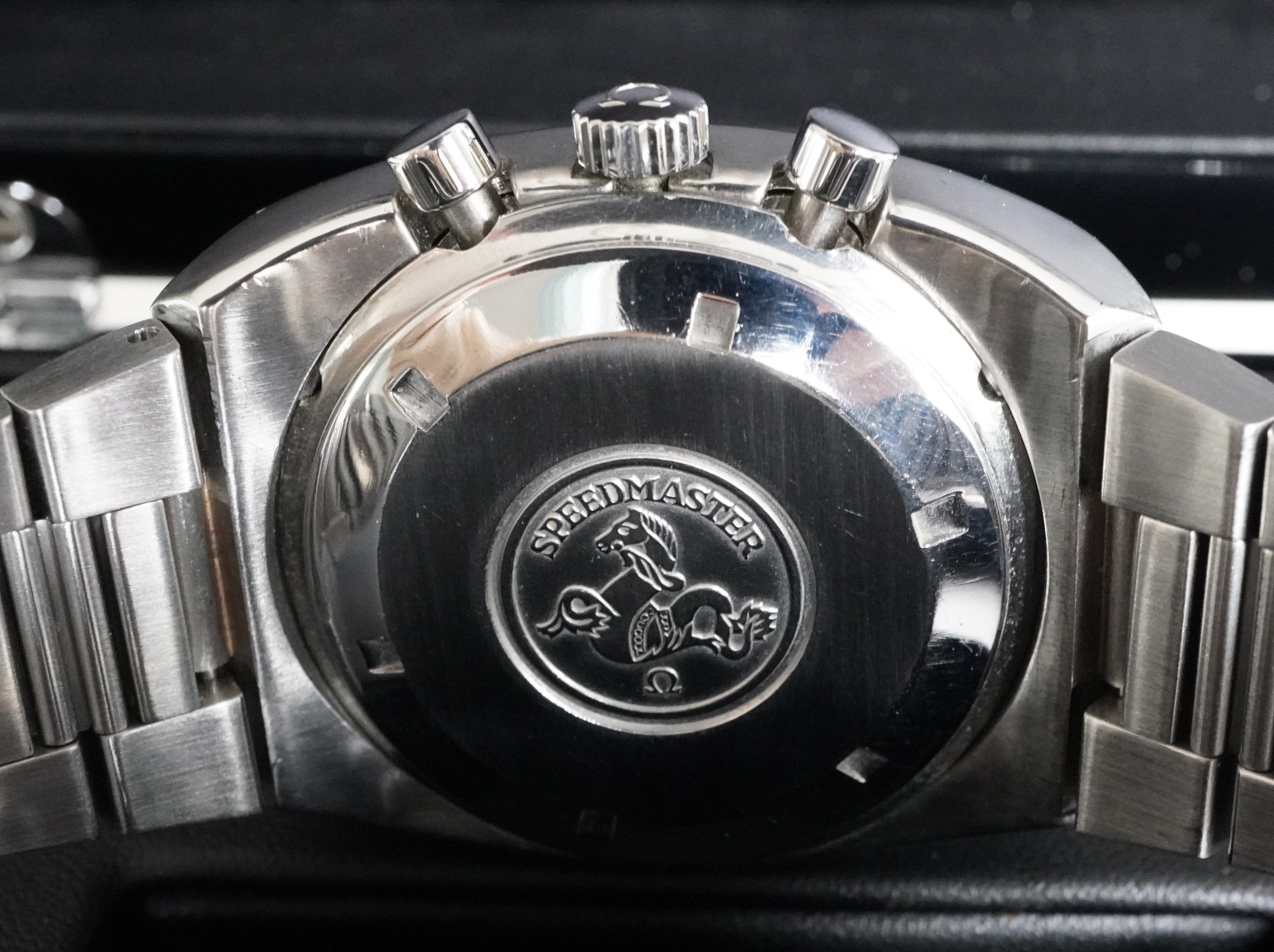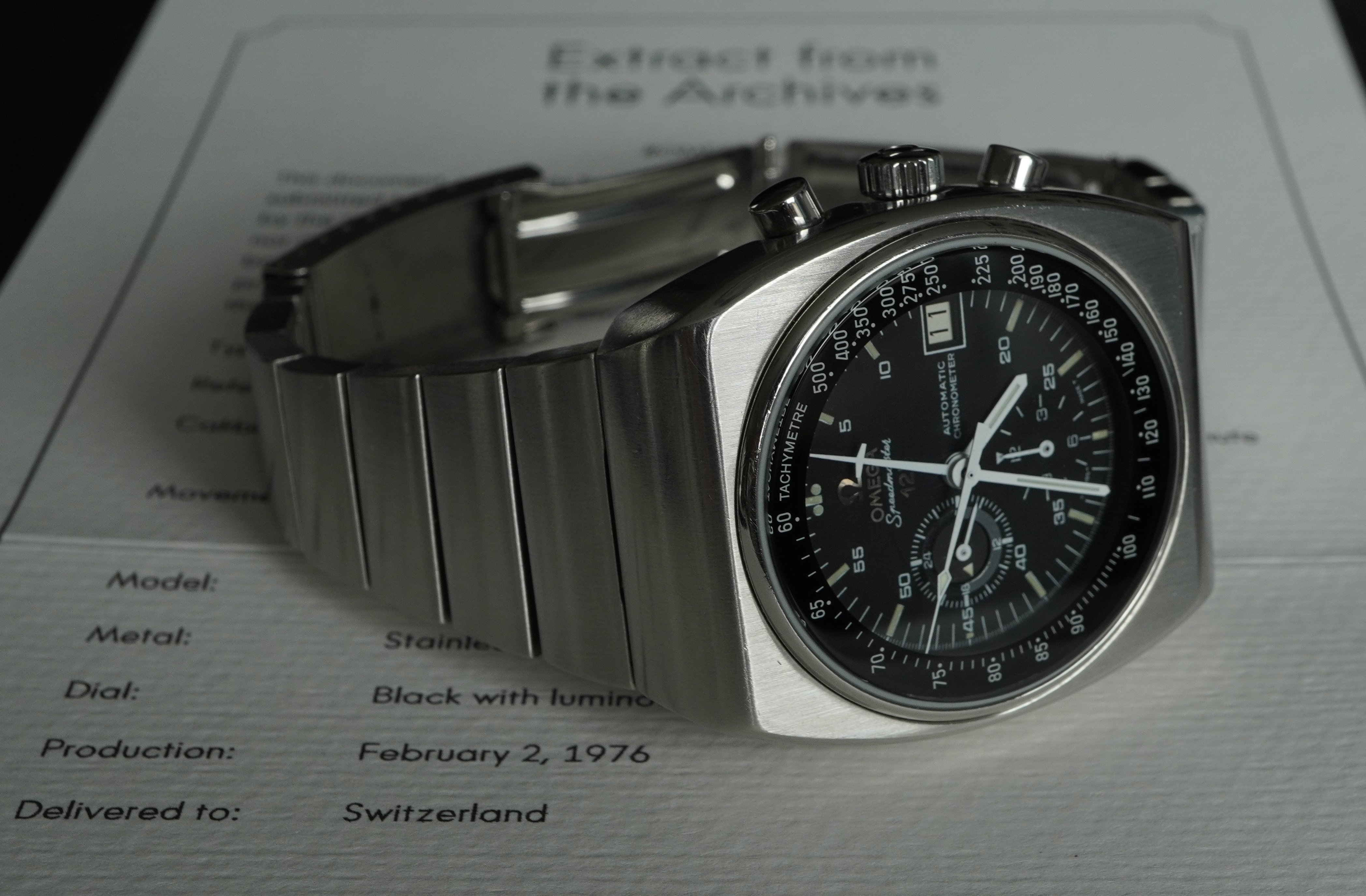 The original bracelet is broken but nonetheless included in the sale. The watch comes on the correct service bracelet which was added from Omega Switzerland in 2022 for 470€ (all links included). While they did that, they closed the caseback so good that I can't open it with my rubber ball anymore, so the pictures from the caliber are from 2020 when I got the extract. All other pictures are new.