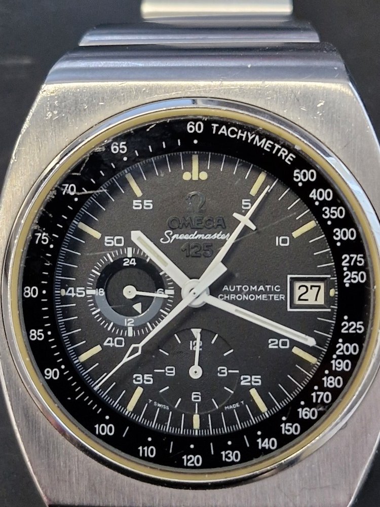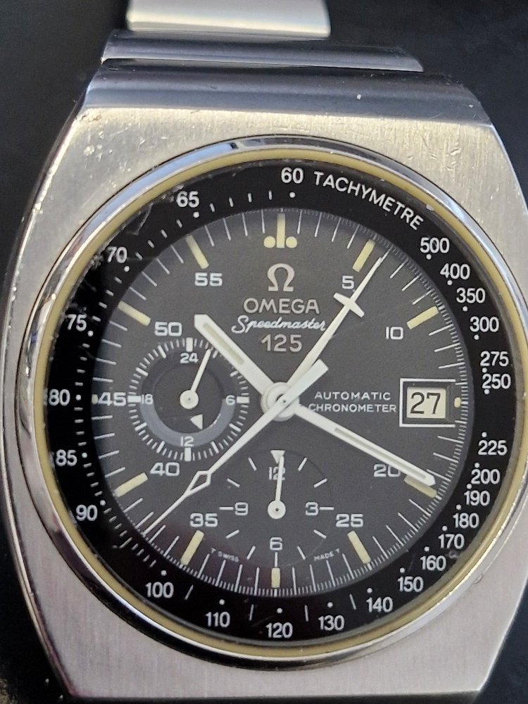 Here is a Omega Speedmaster 125 Chronograph. The watch is working nicely, all functions without problems, but it did not recently receive a service, so that I would recommend a service, if it is to be used more or less frequently.