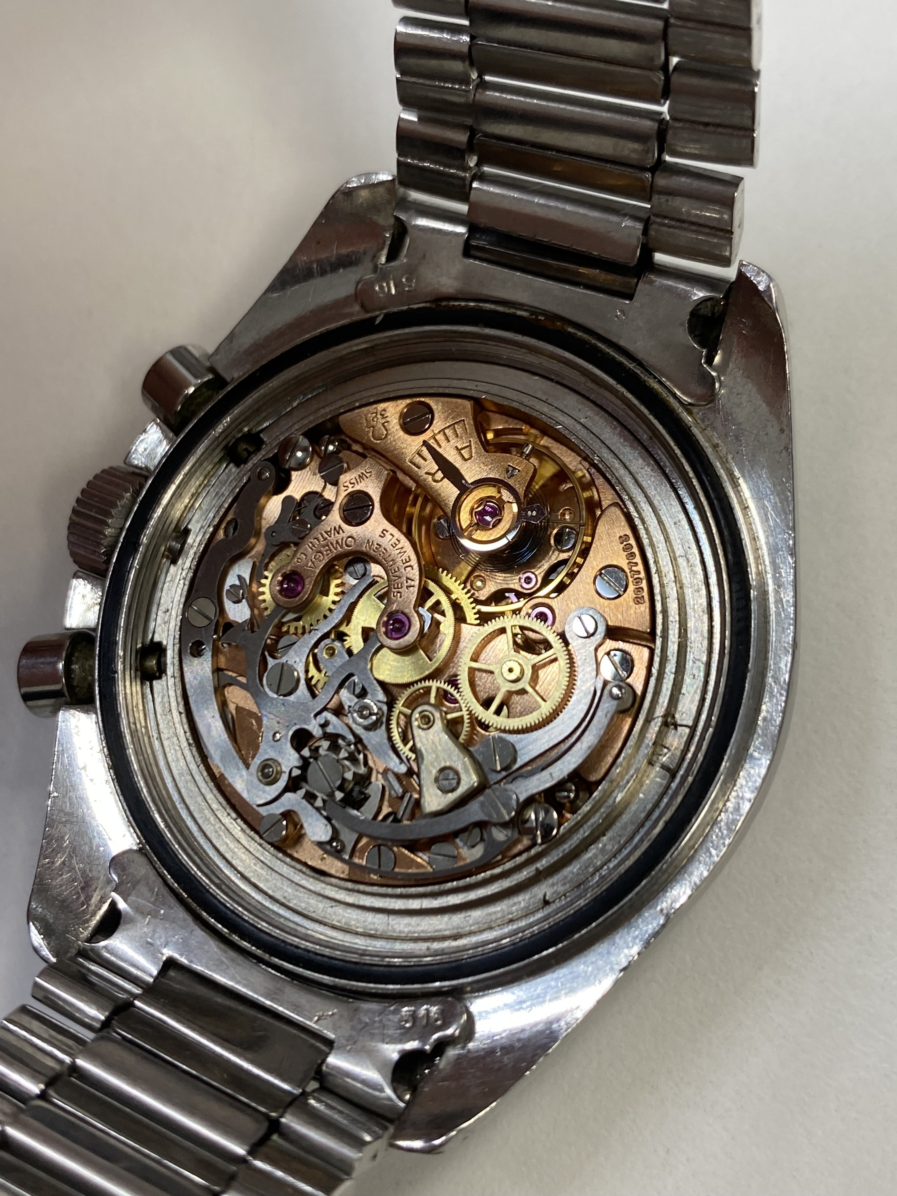 The crystal is very scratched, but has the old Omega logo, which is nice.
