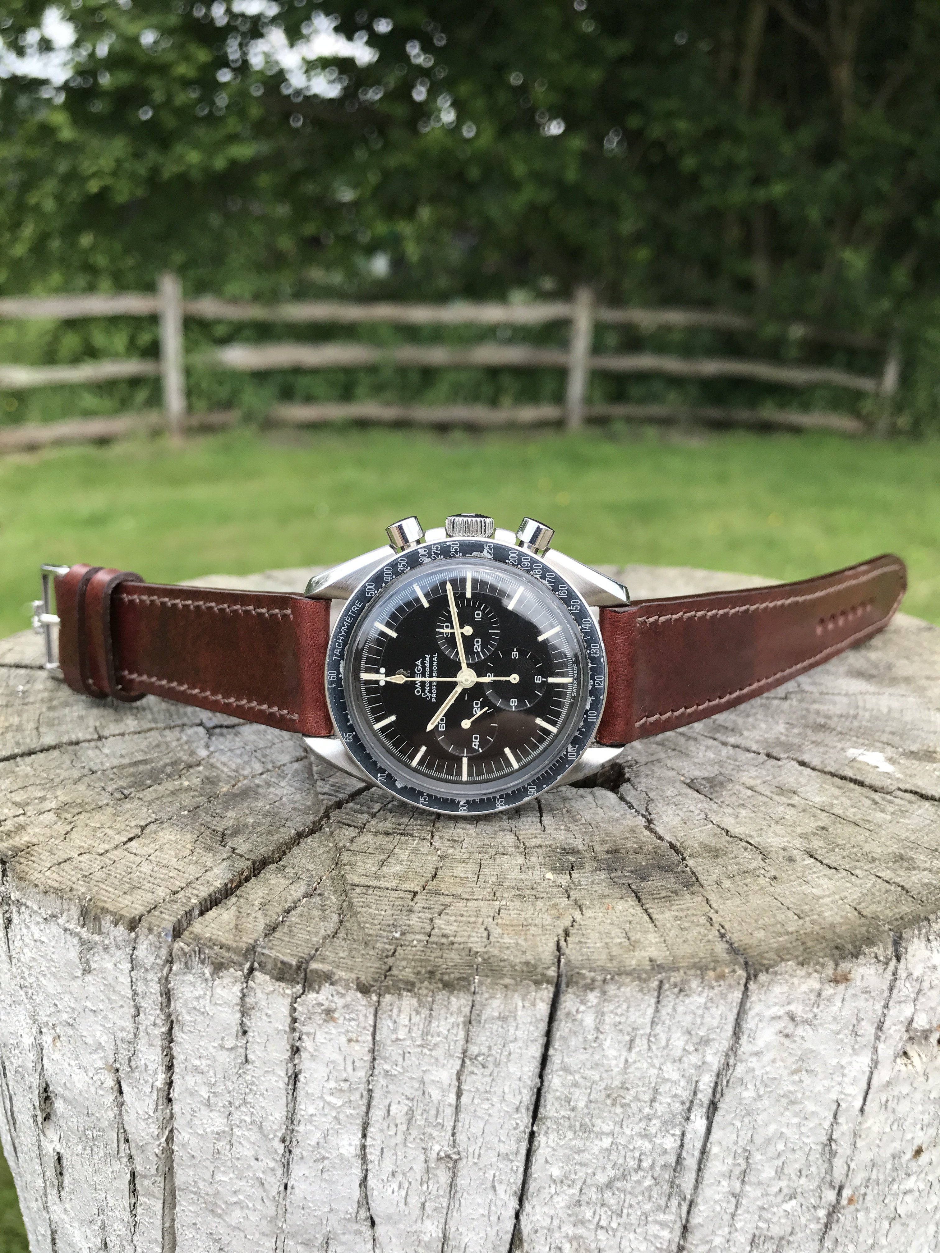 I have fitted an unworn, hand made strap from my collection - I like to choose leather and have it made into straps. Makes no financial sense at all, but the watches look beautiful on them so I cannot help it.