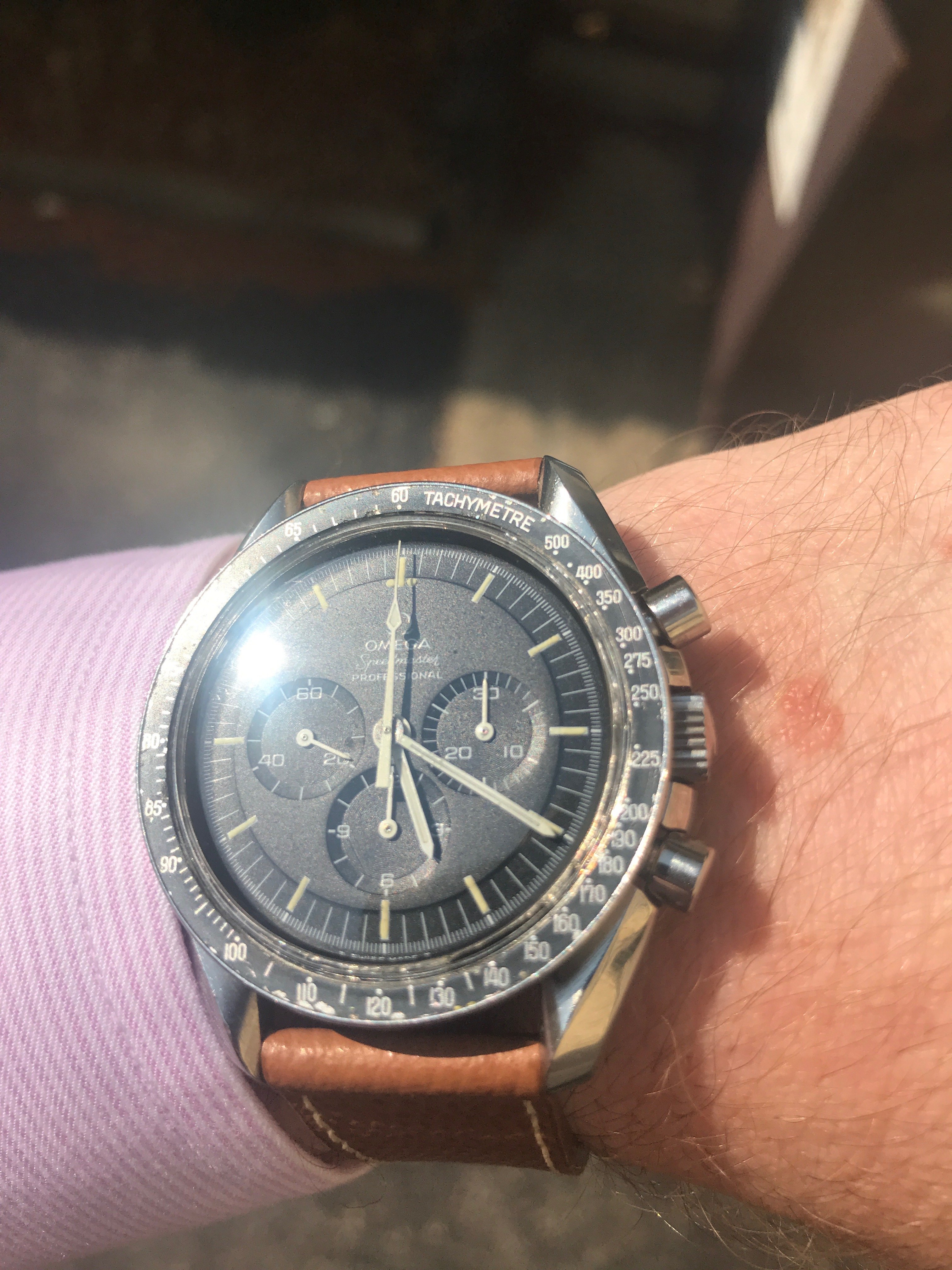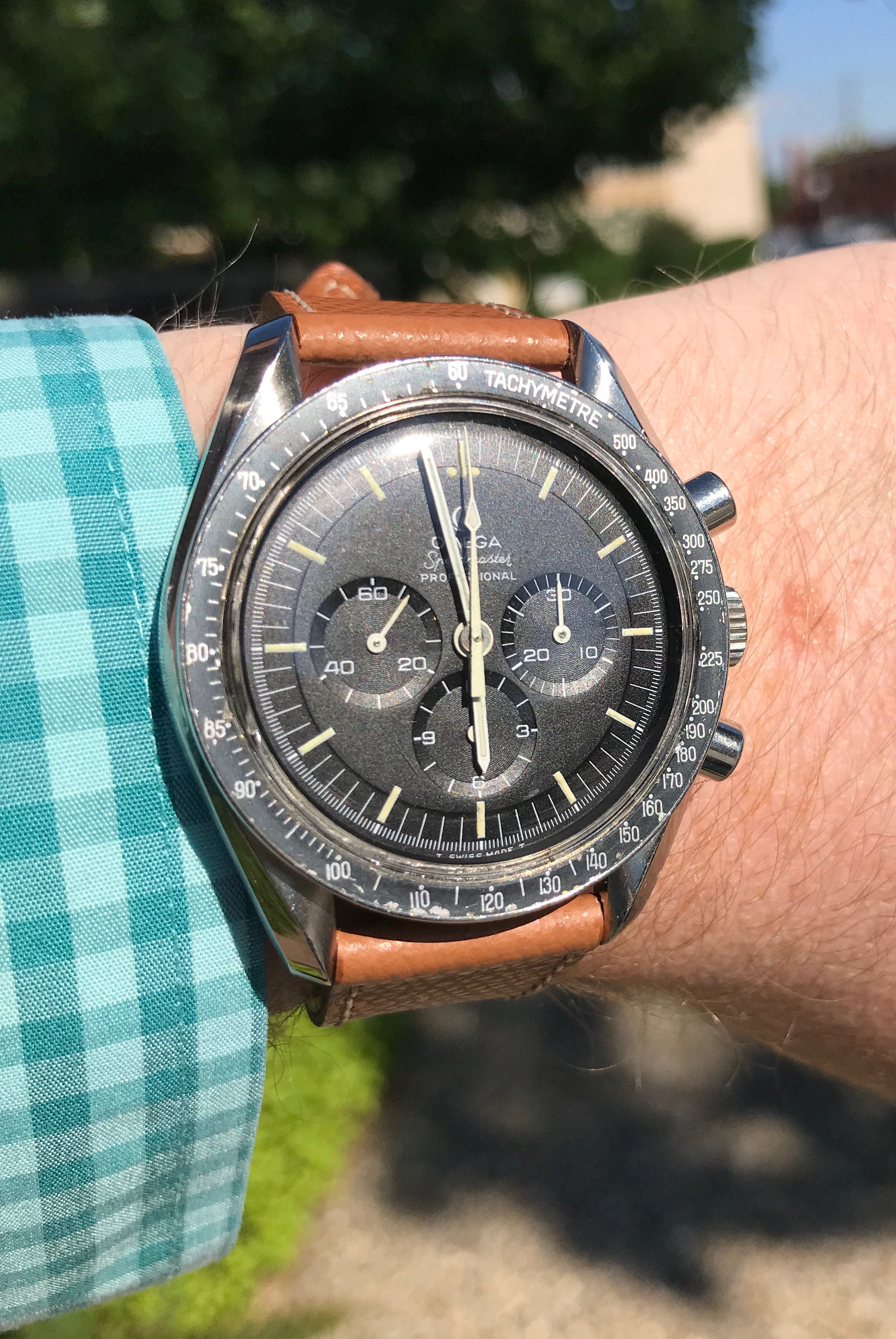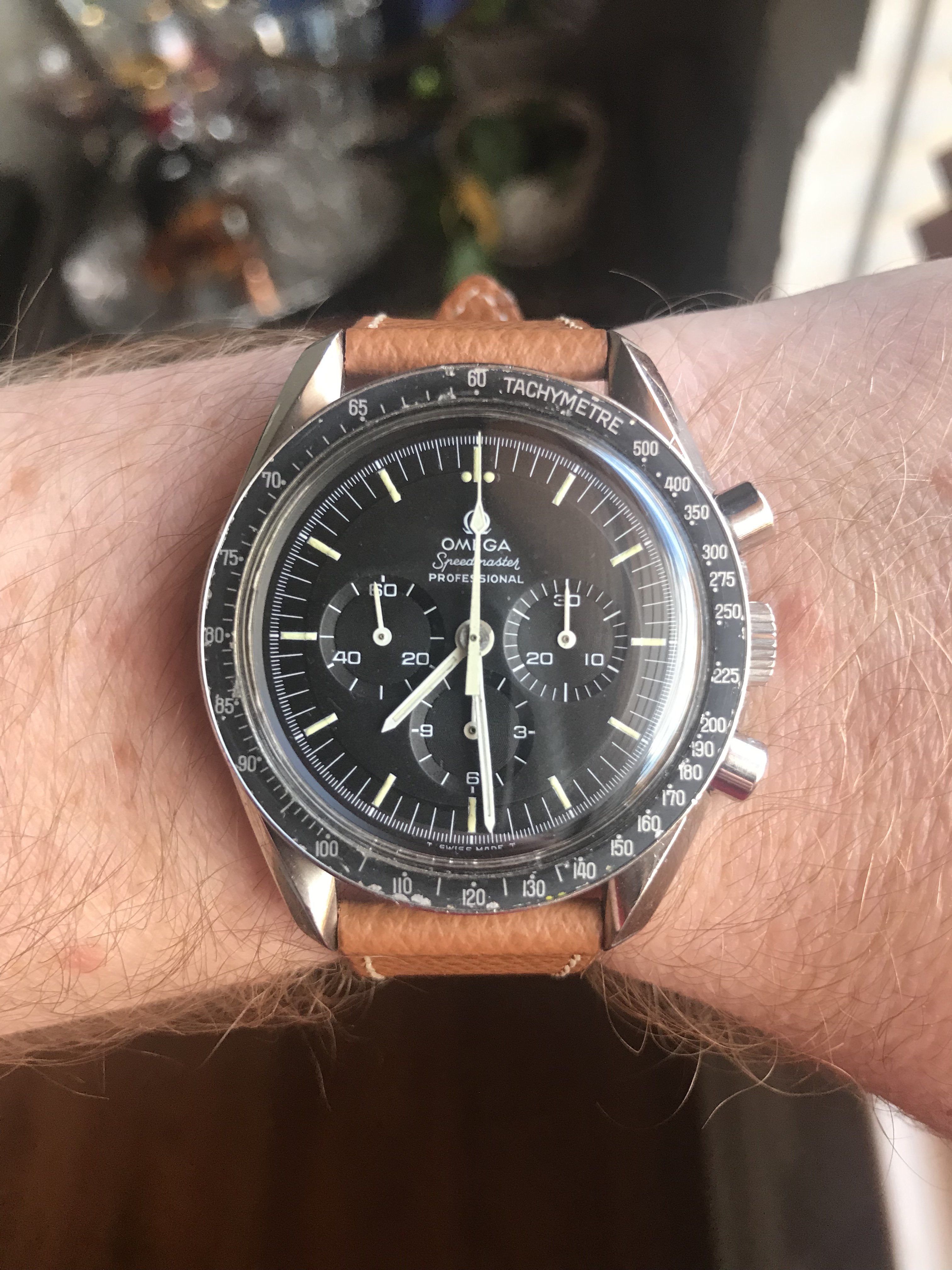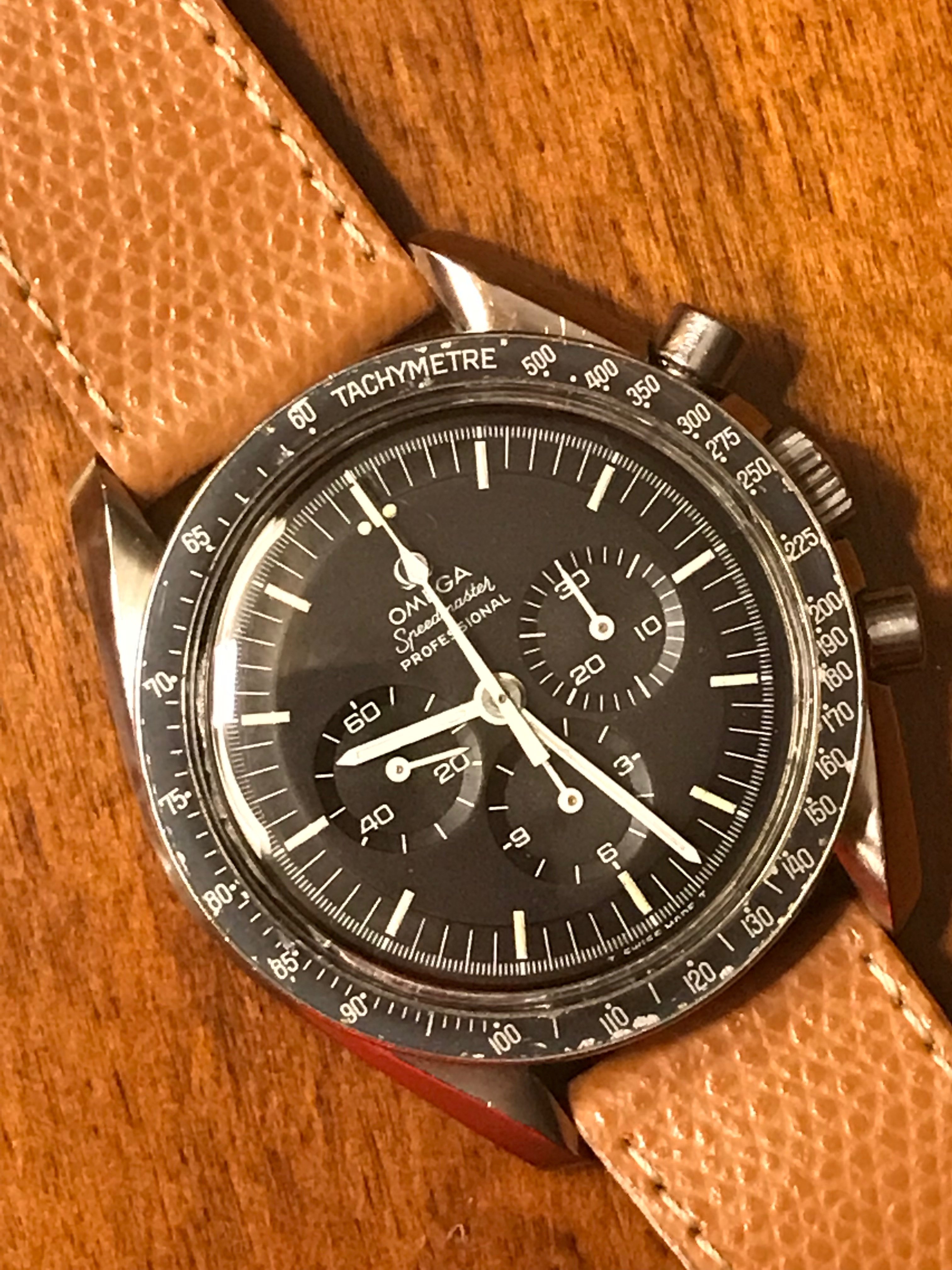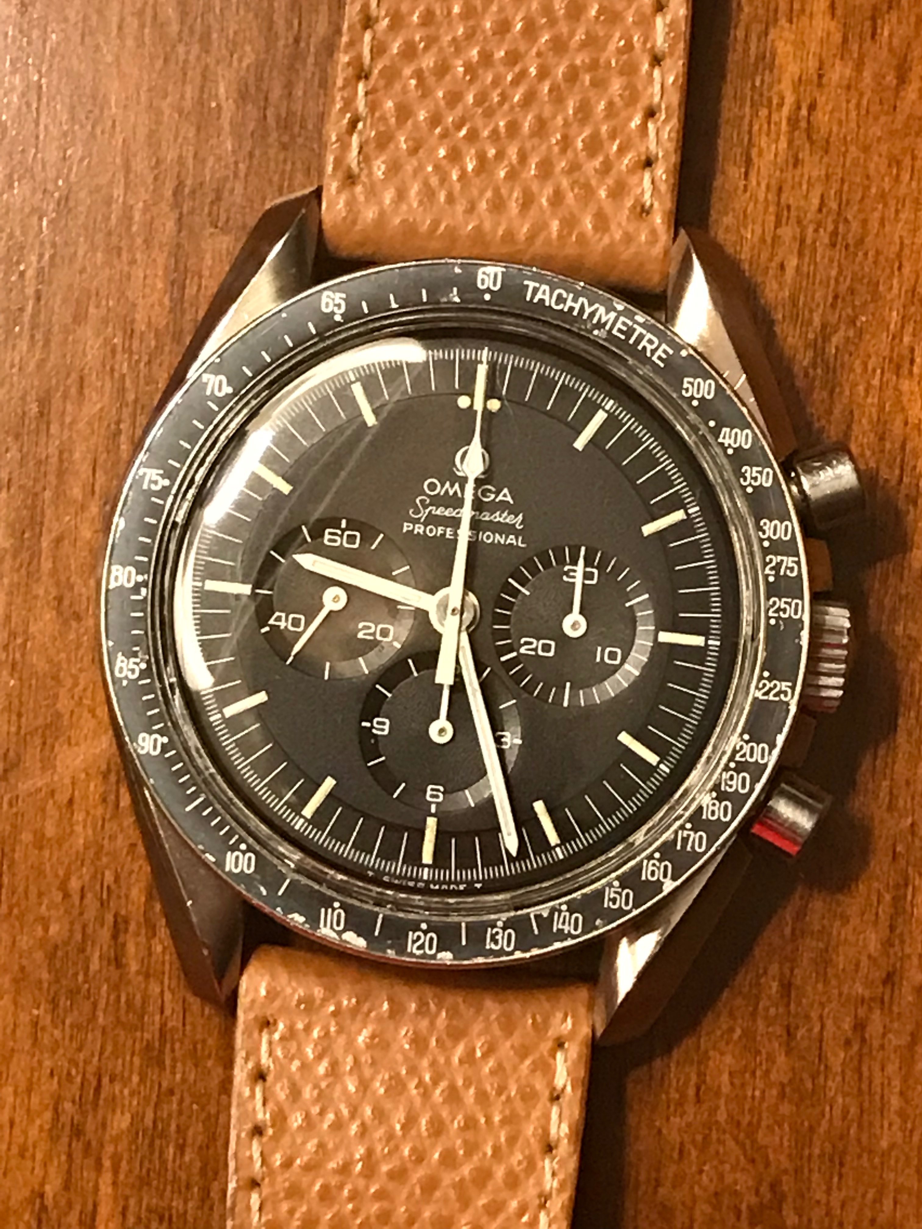 I am offering for sale today a nice wearable Omega Speedmaster 145.022-69. I bought this from a forum member a few months back. When I received the watch, the chronograph sweep was fairly jittery. I only wound the watch a few times over the past few months as I didn't want to overtax a movement in need of service. I intended to get it serviced and make it a daily wear, but my interest has shifted to other chronographs in recent months. Since this piece hasn't been a priority for me, I'm hoping to pass it along to someone that will make it a priority. I am asking 4200 USD, hopefully giving the buyer ample budget to get it serviced and still be in-line with the Speedmaster101 chart. I will be selling the watch as head only.