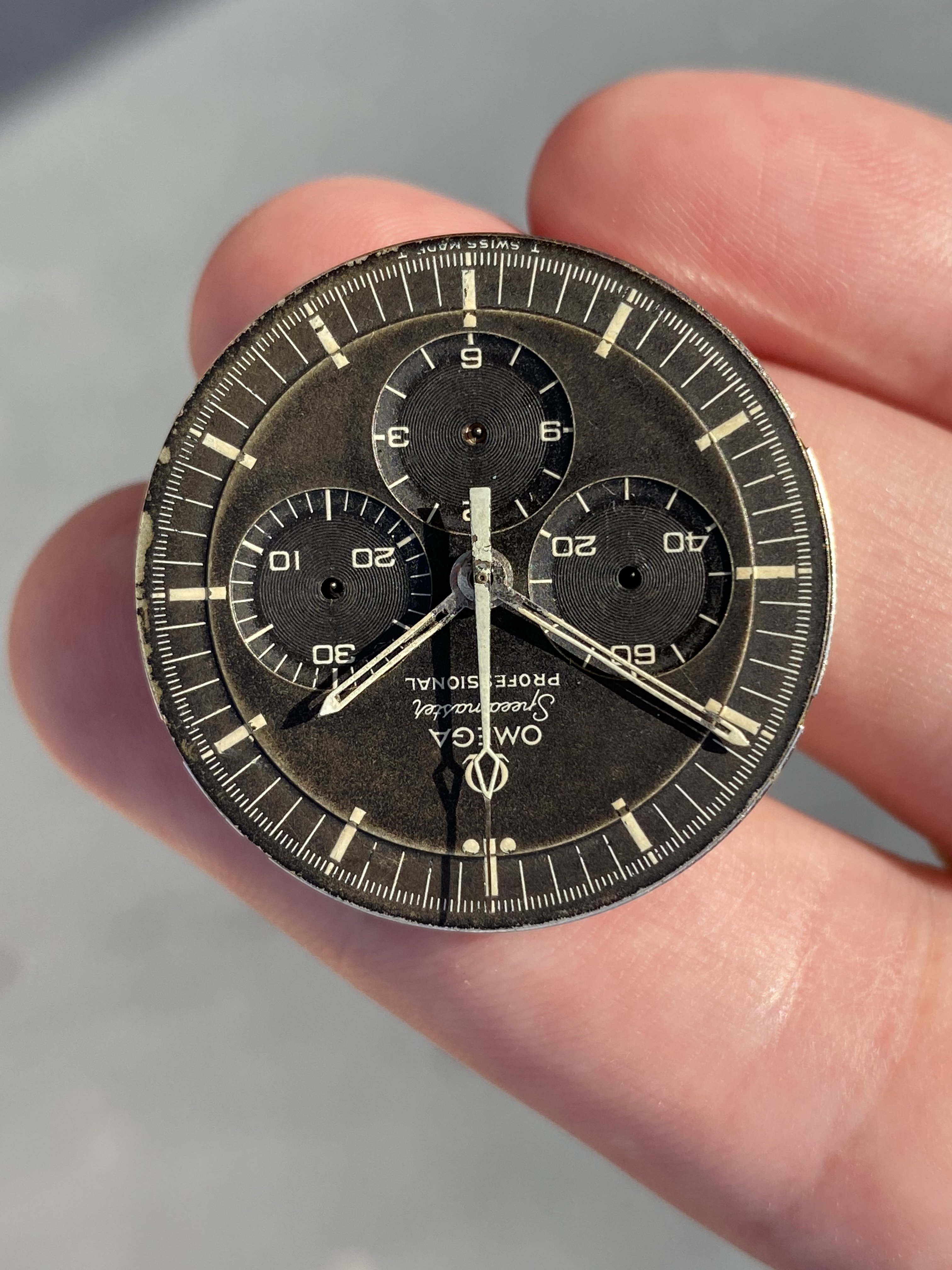 ·Selling a very interesting Speedmaster project. This could be an easy way to get a chocolate Speedmaster without breaking the bank. The dial has an incredible bronze patina, this is not one of those chocolate dials that you need direct sunlight to enjoy. It even has a very cool serial number too. According to the MWO book the serial number is a little too early for a chocolate speedy but I believe it could be original.