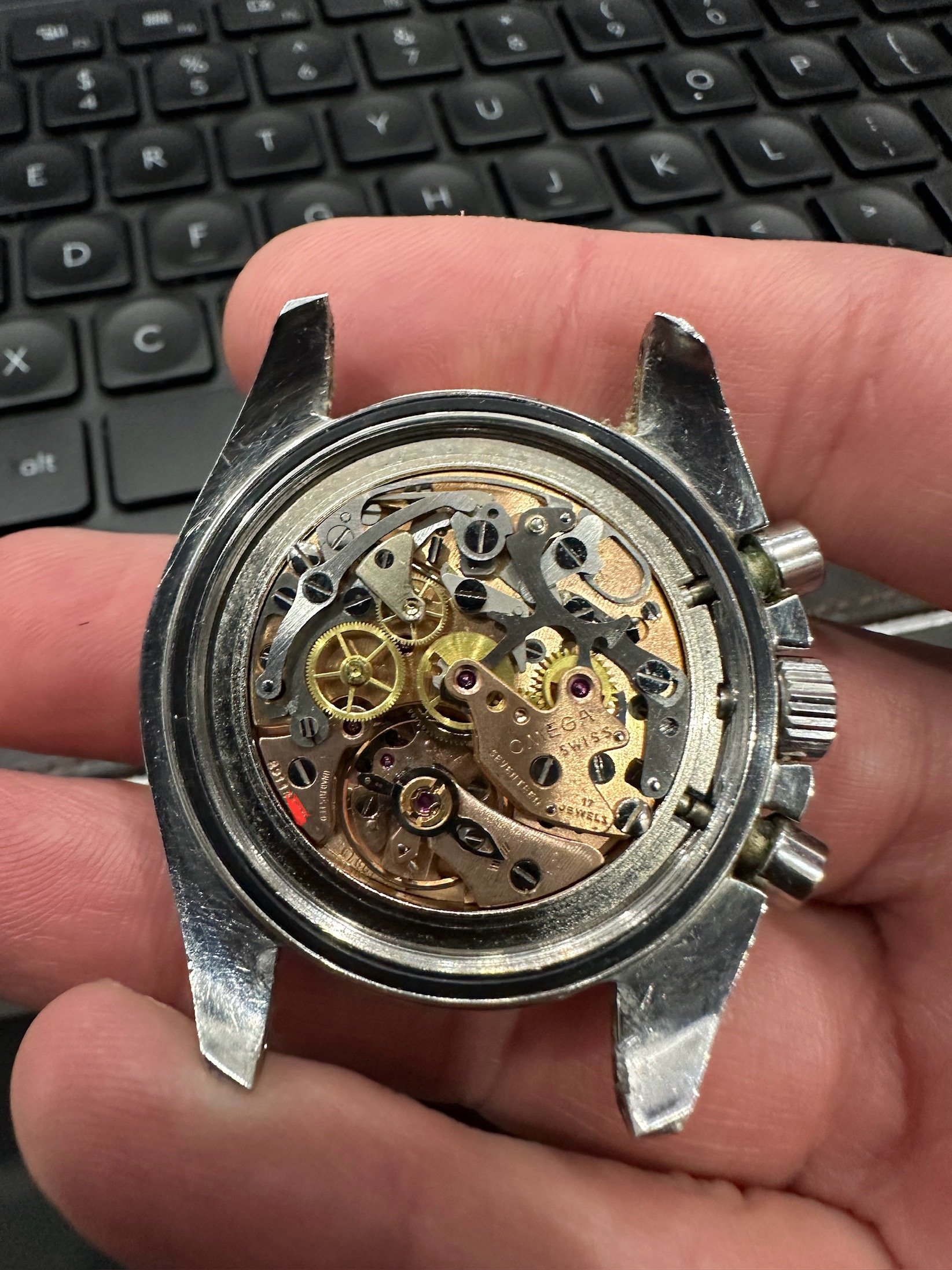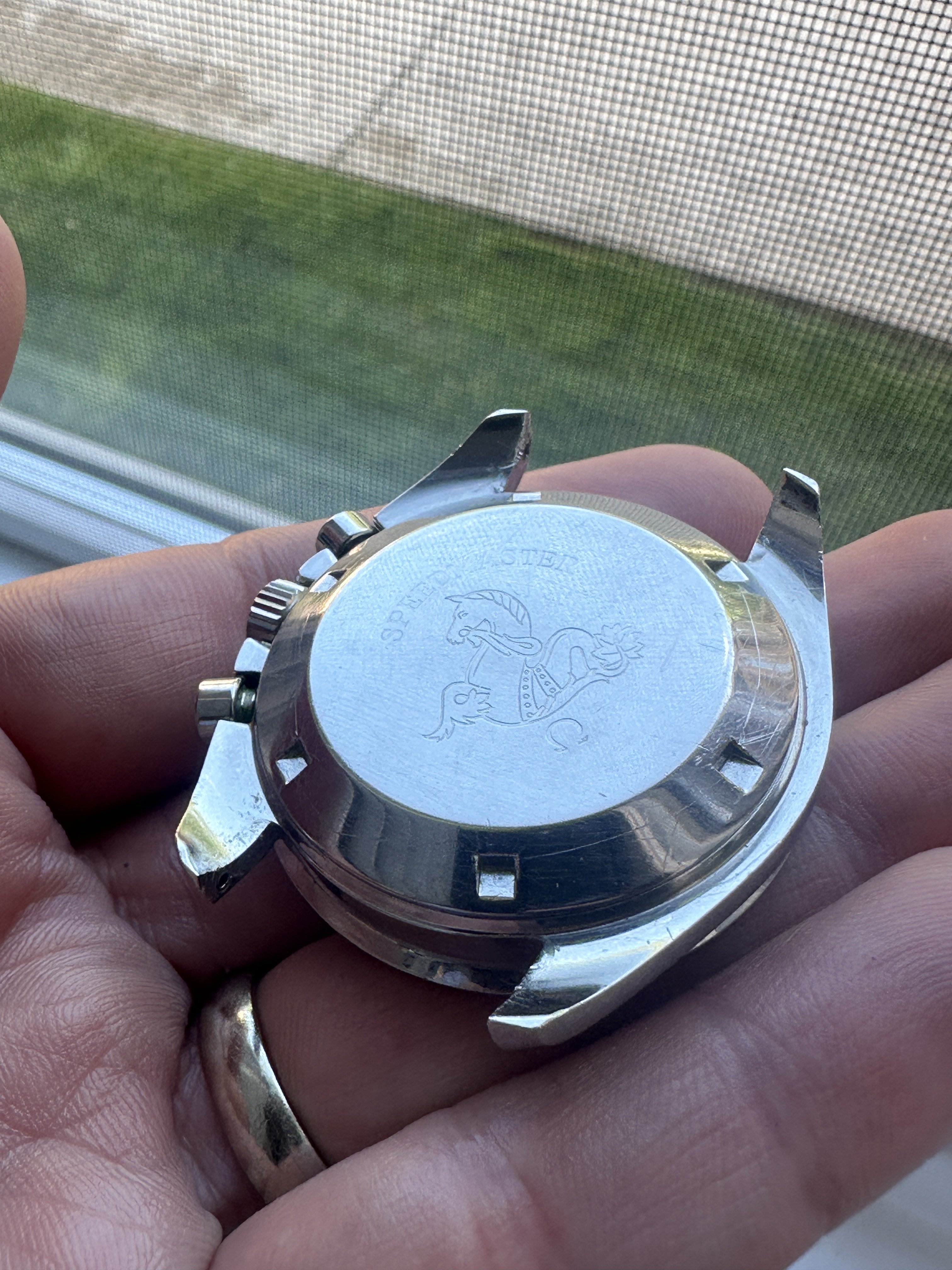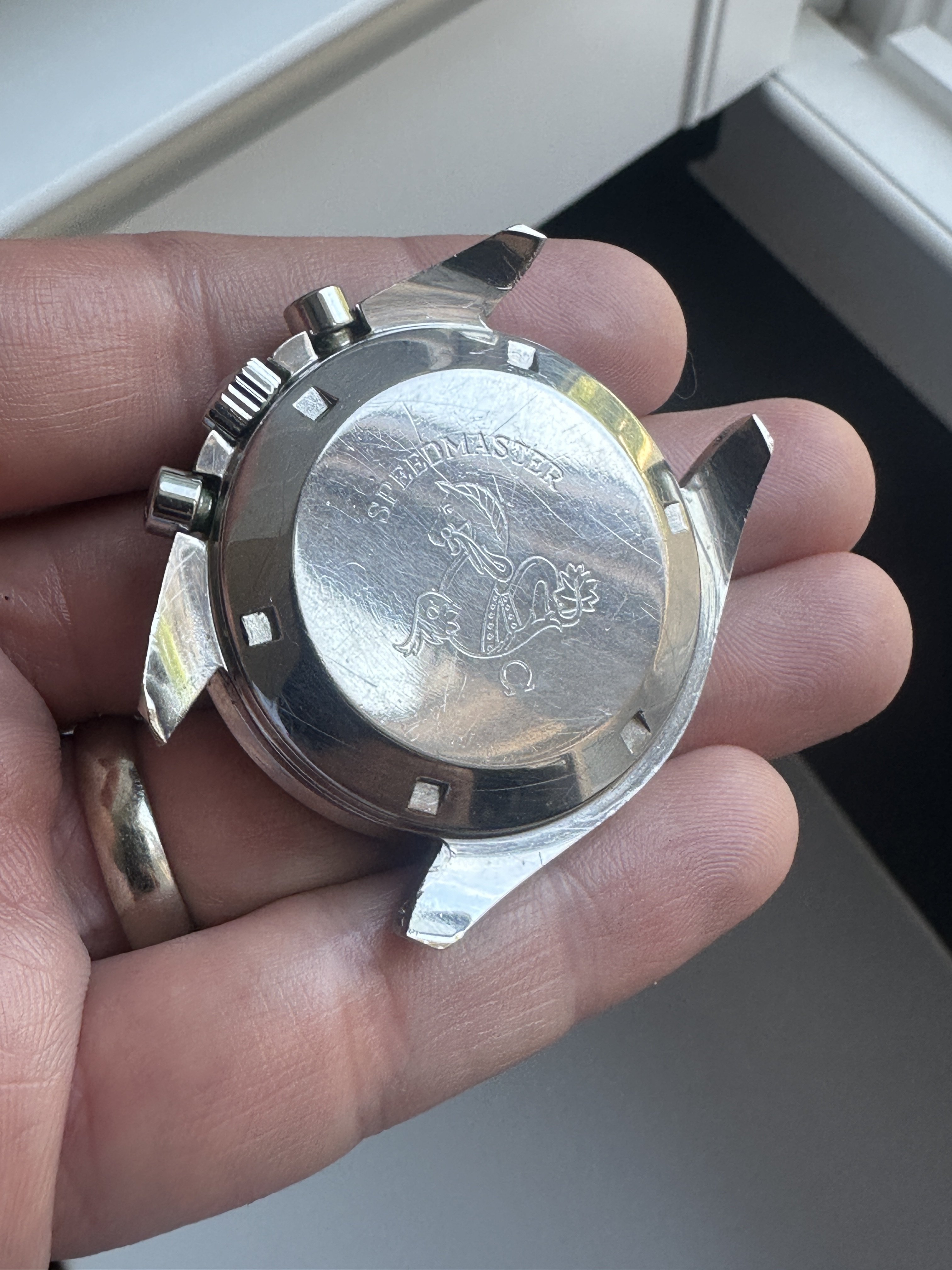 Case - Midcase is sharp. Crystal is a replacement without Omega symbol, but is old and has some crazing (I didn’t change it). Case back has wear and opening scratches as pictured, nice hippocampus. I think the crown has been replaced.