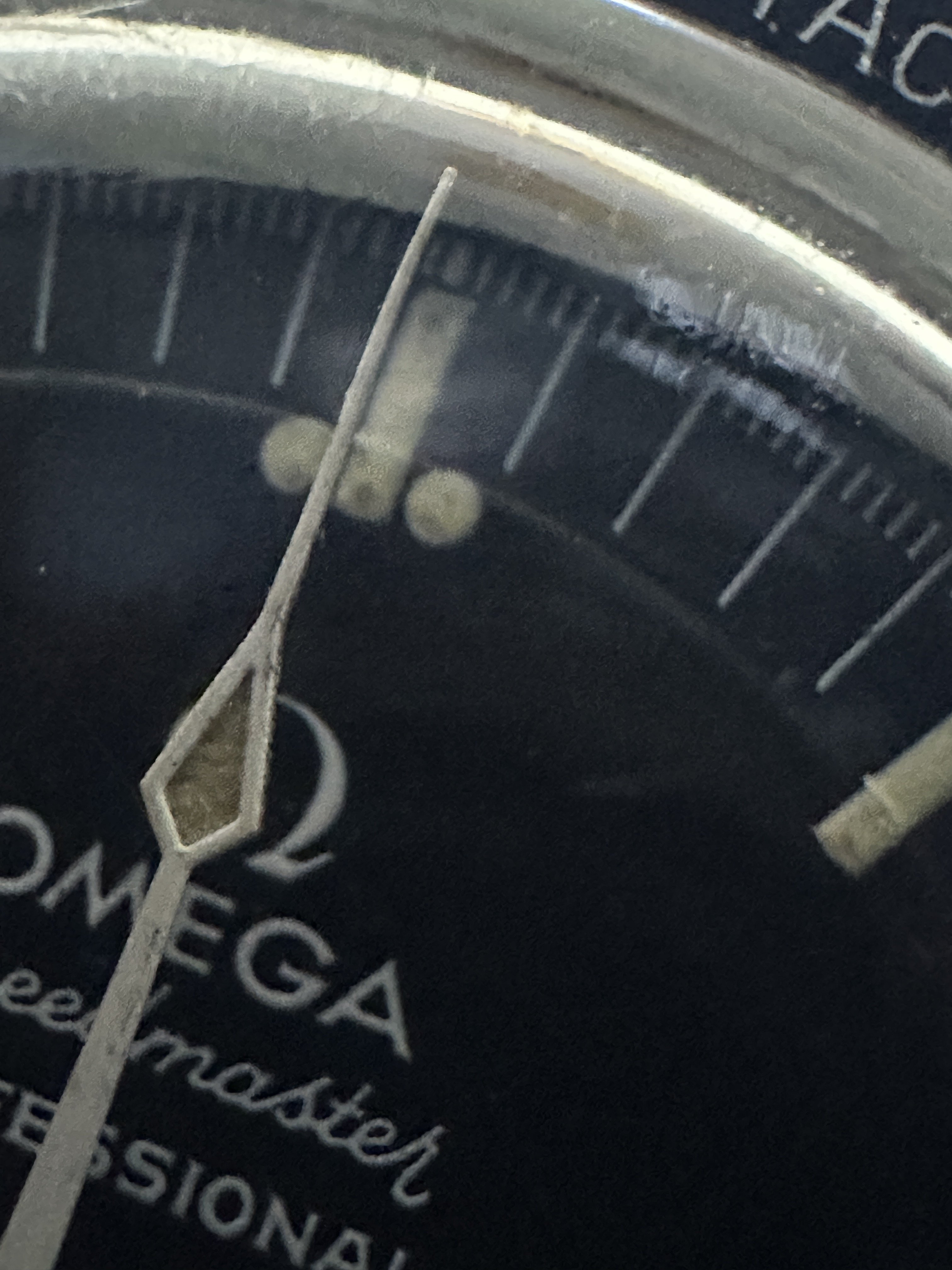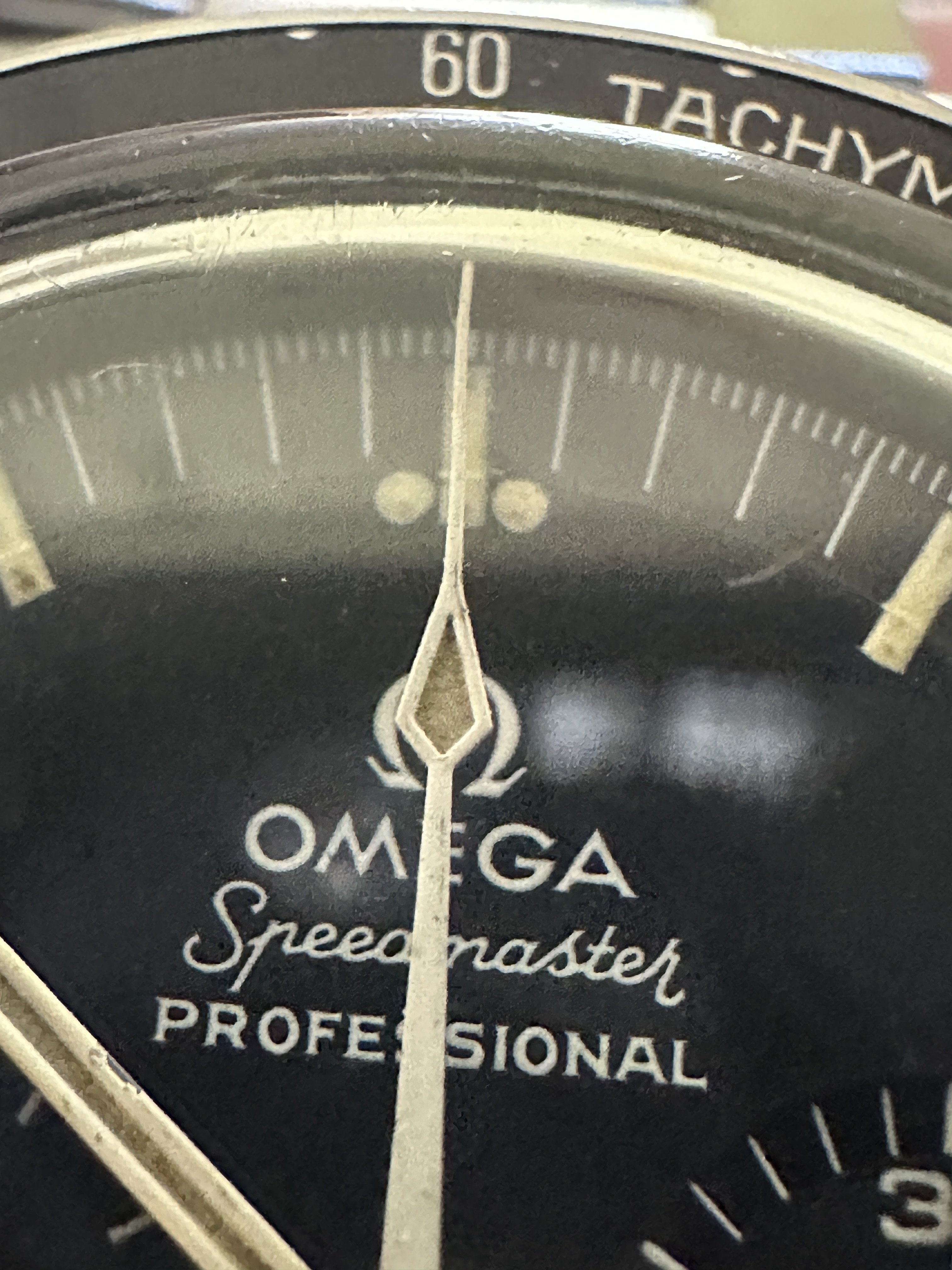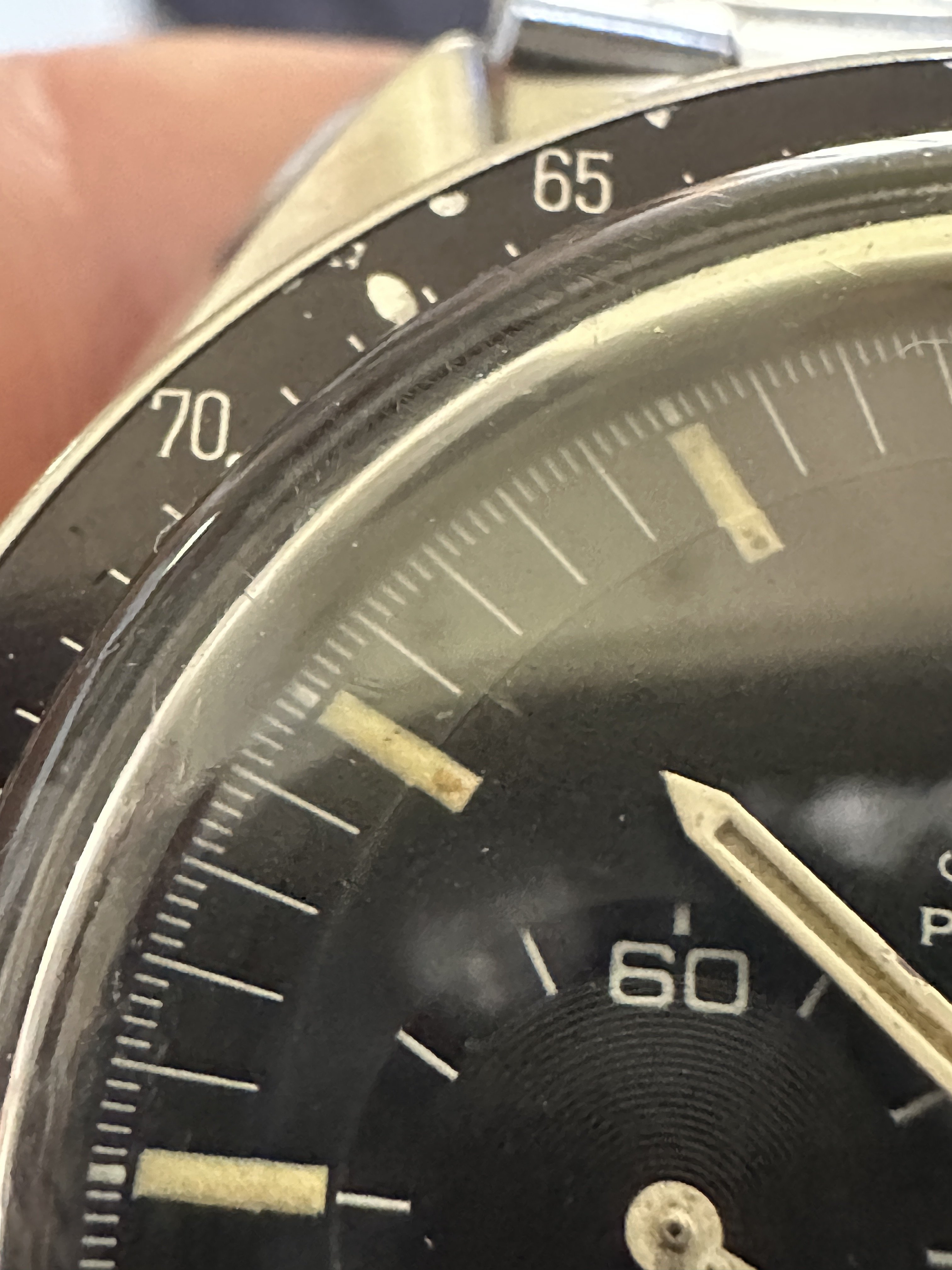 Hands - I believe the hands to be original, they match the watch nicely and lume is consistent. Wear/paint loss near center post.