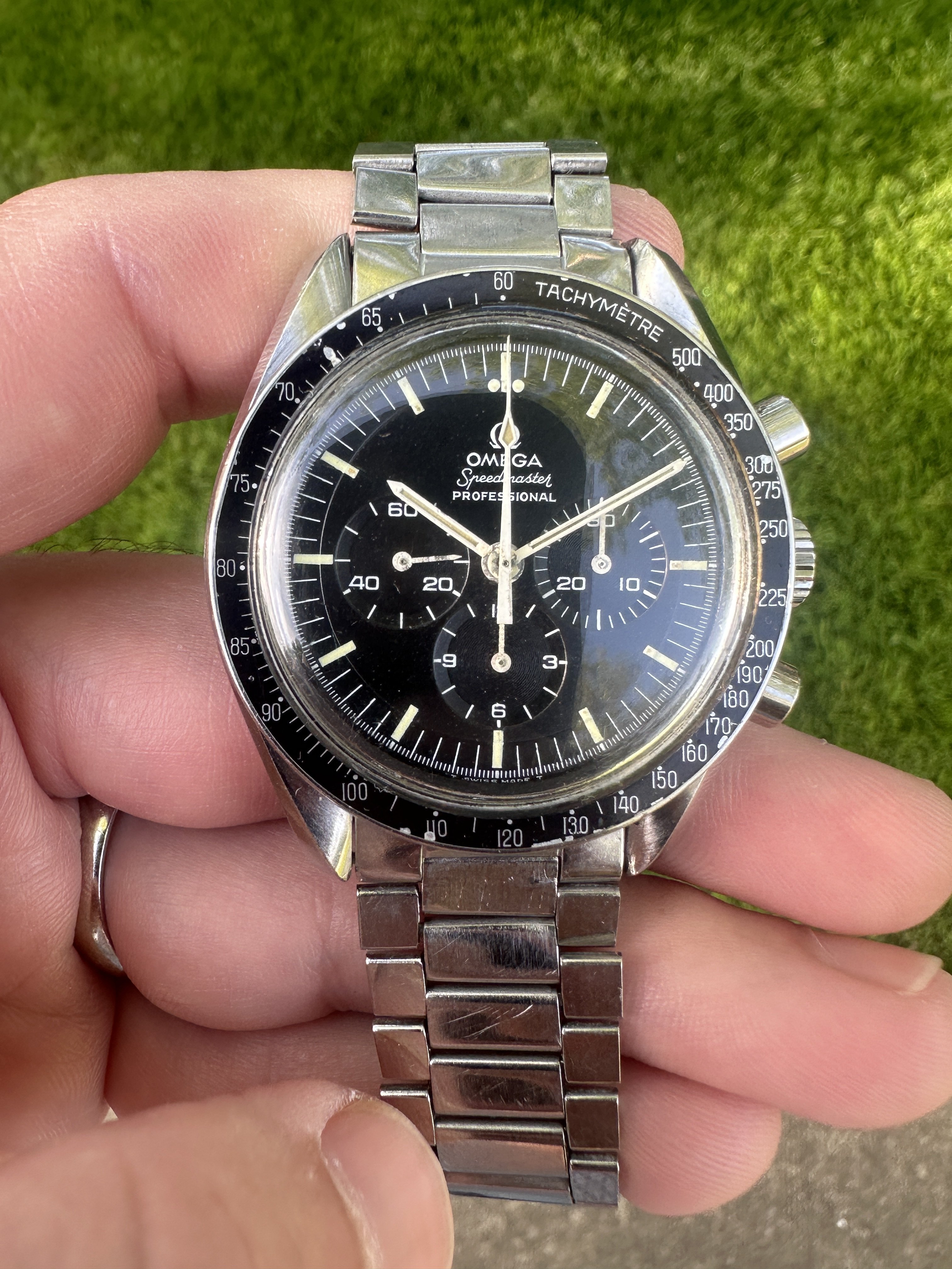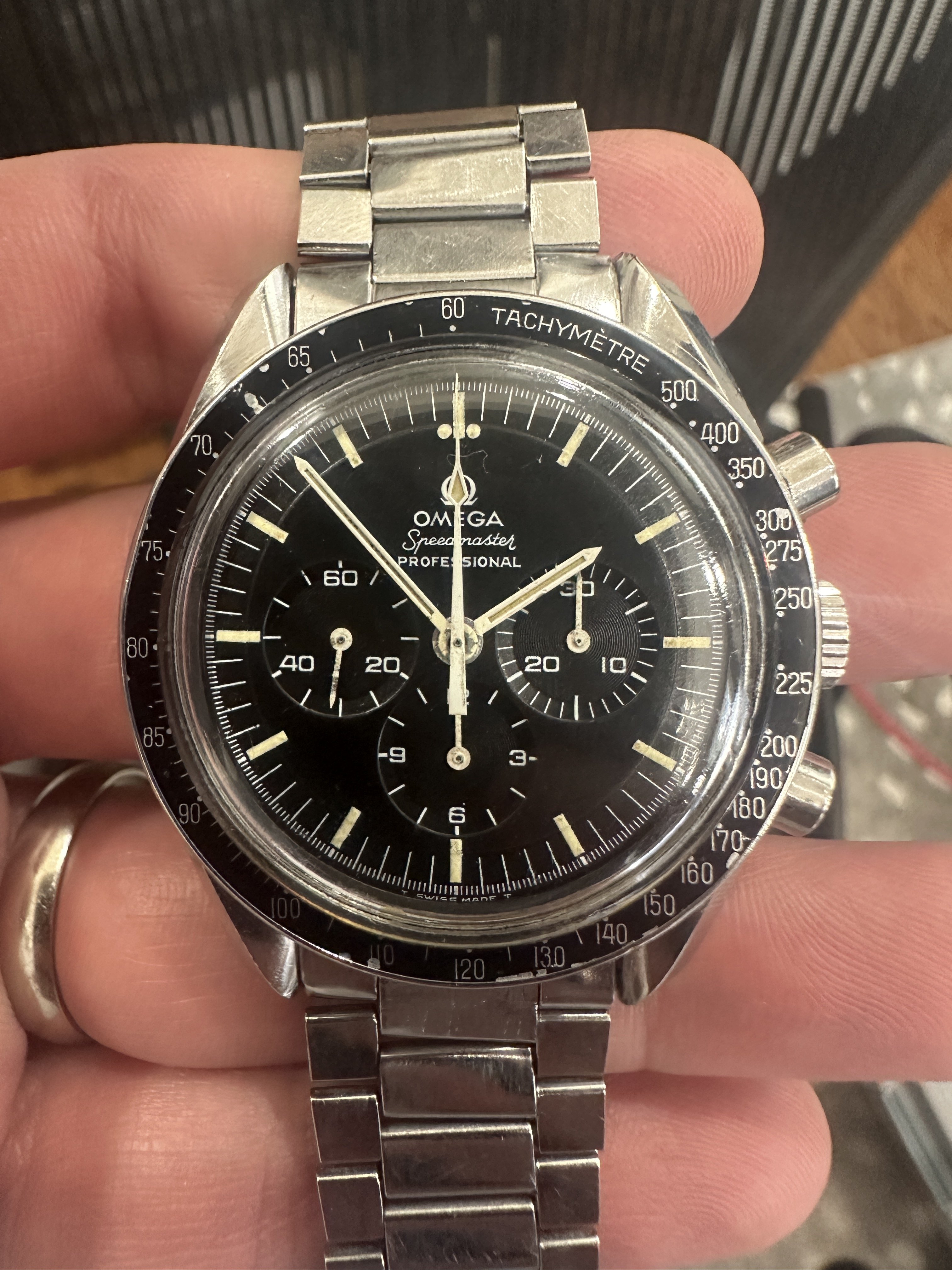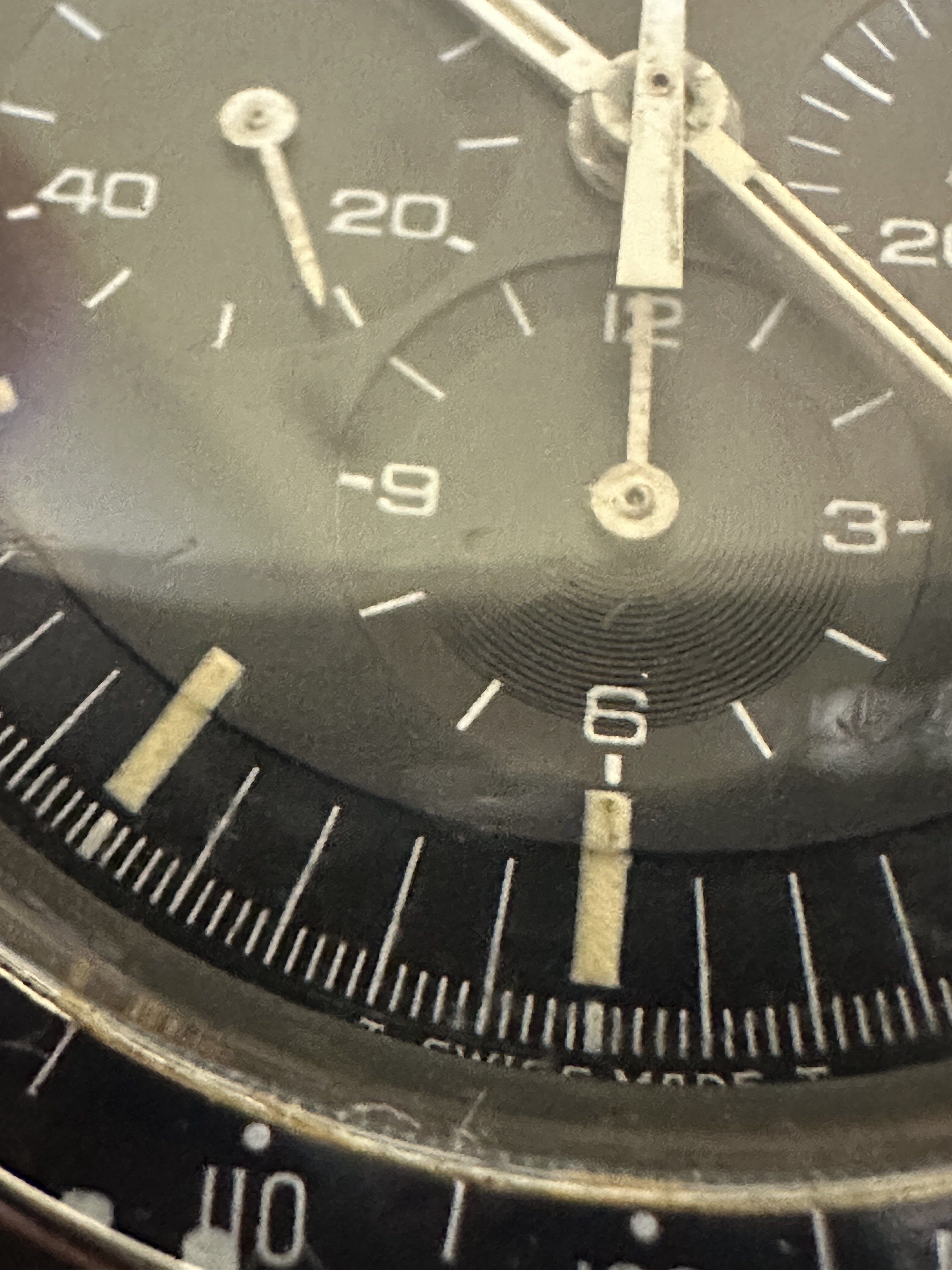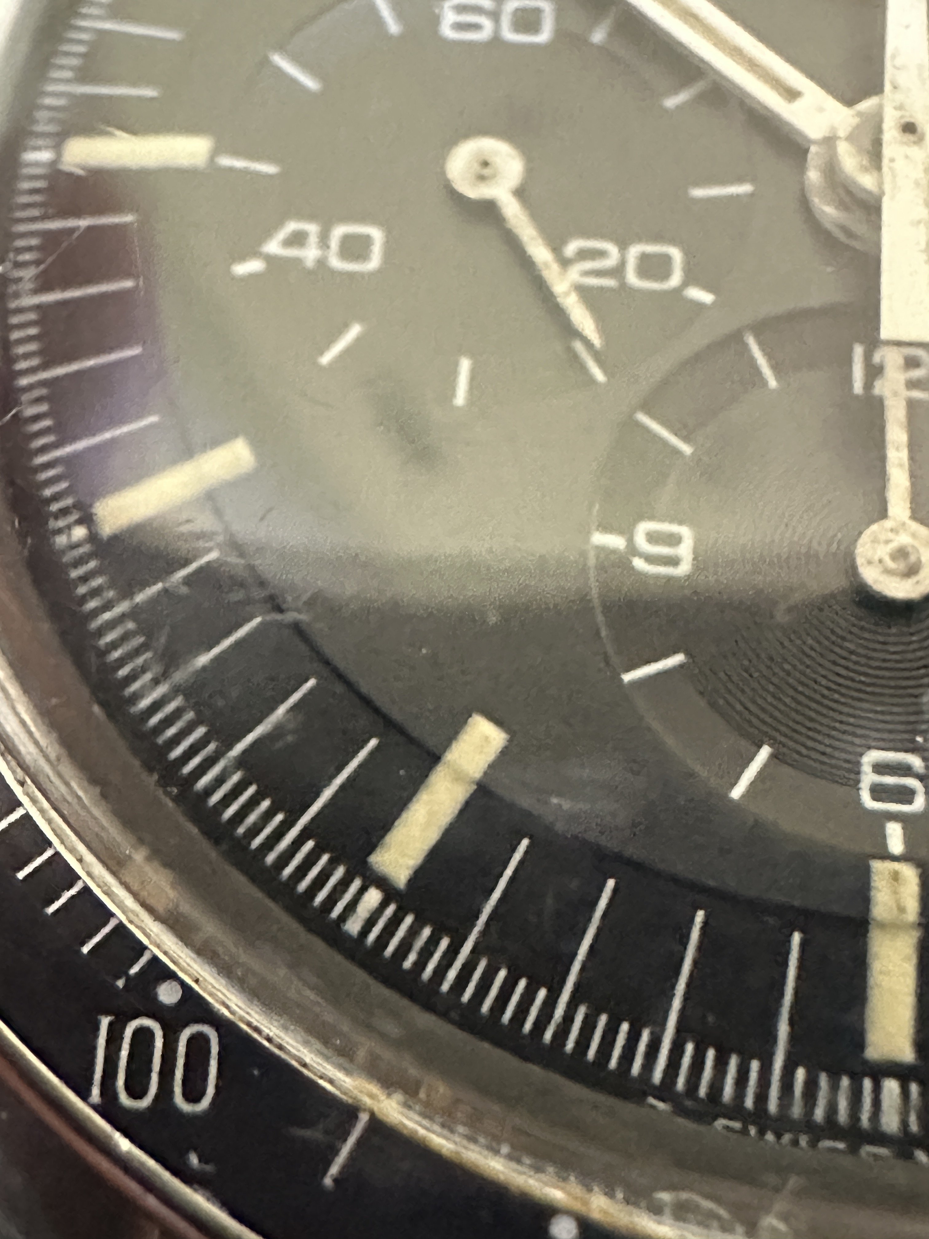 Hands - I believe the hands to be original, they match the watch nicely and lume is consistent. Wear/paint loss near center post.