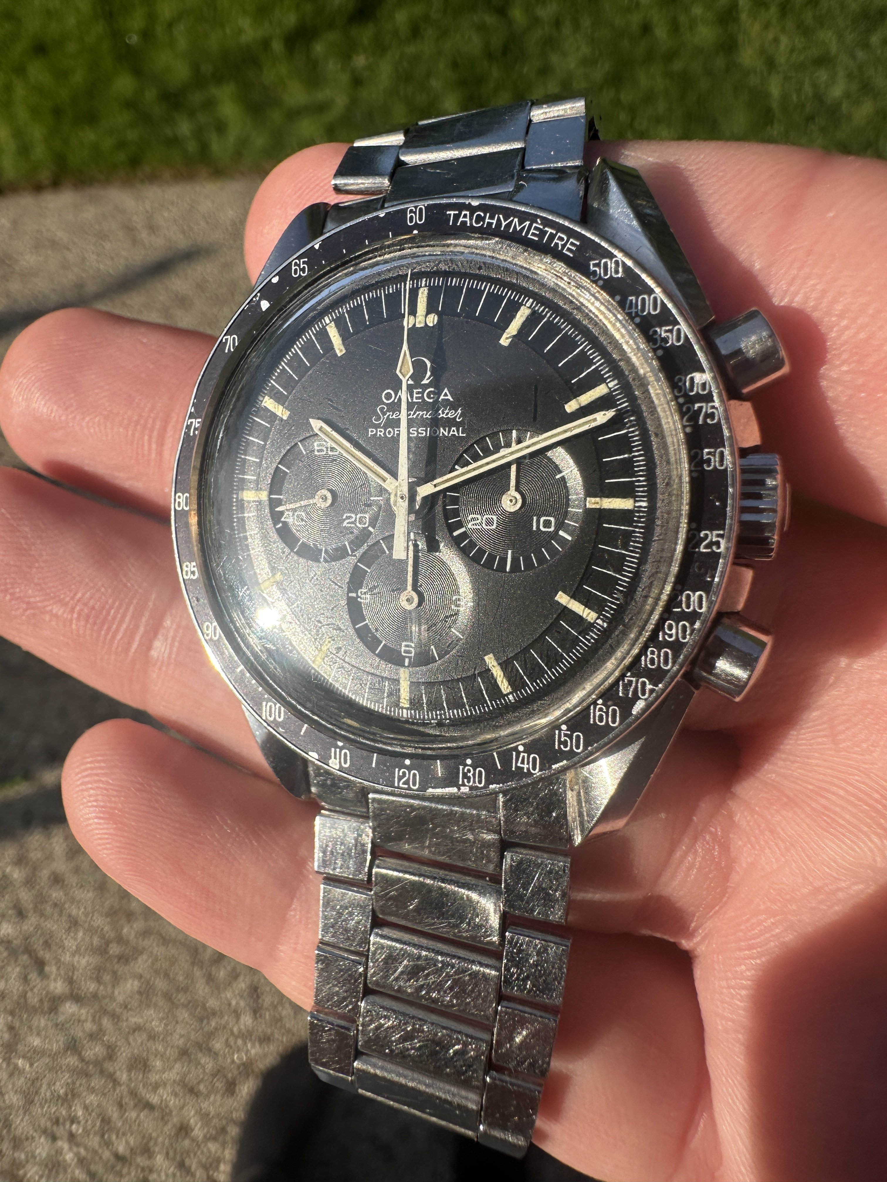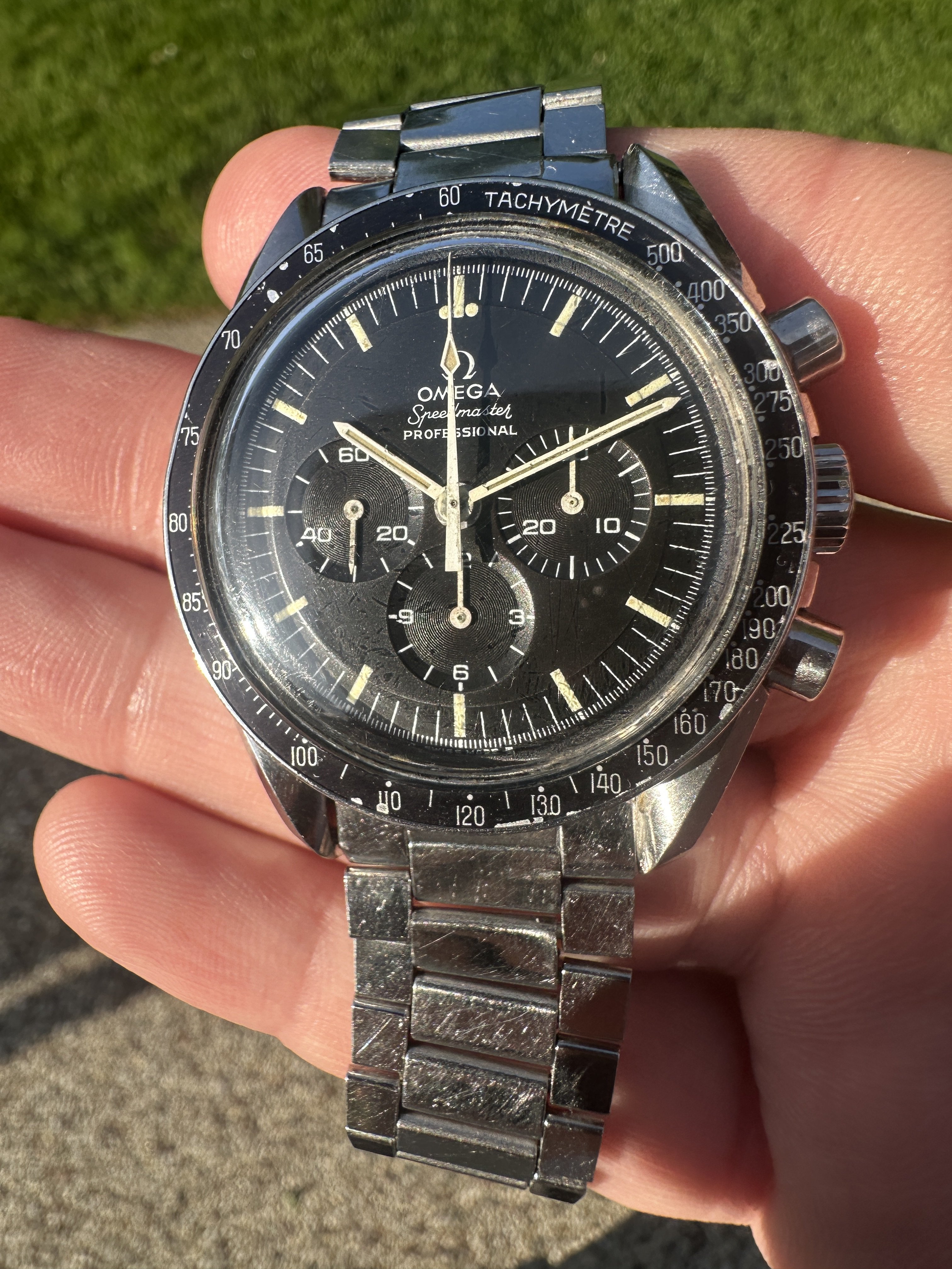 Bracelet - 1039/516 that I believe to be original to the watch is included. It’s short a few links, fits my 7” wrist. Has dings/dents/marks. It’s not pristine, but not too much stretch and a good wearer. One photo shows full stretch.