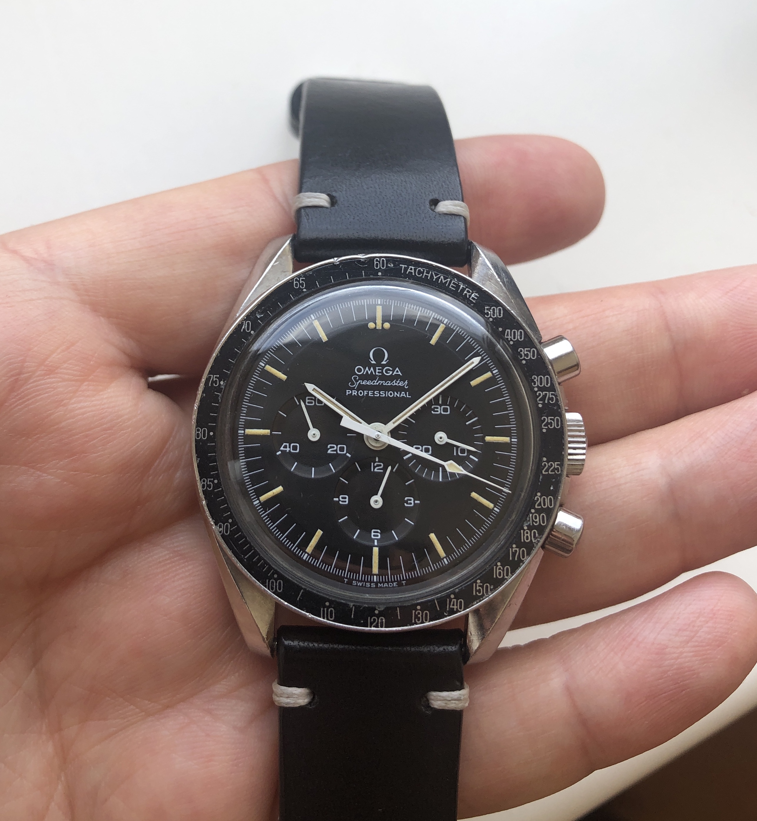 The watch has some small issues of course: the DON is not perfect, the cristal as well, pushers tube replaced but the rest is totally original. In my opinion, it falls between the good and very good condition in the Speedmaster101 chart - (valuation is between 6,300€ and 8,700€). I am of course happy to discuss about it in PM.