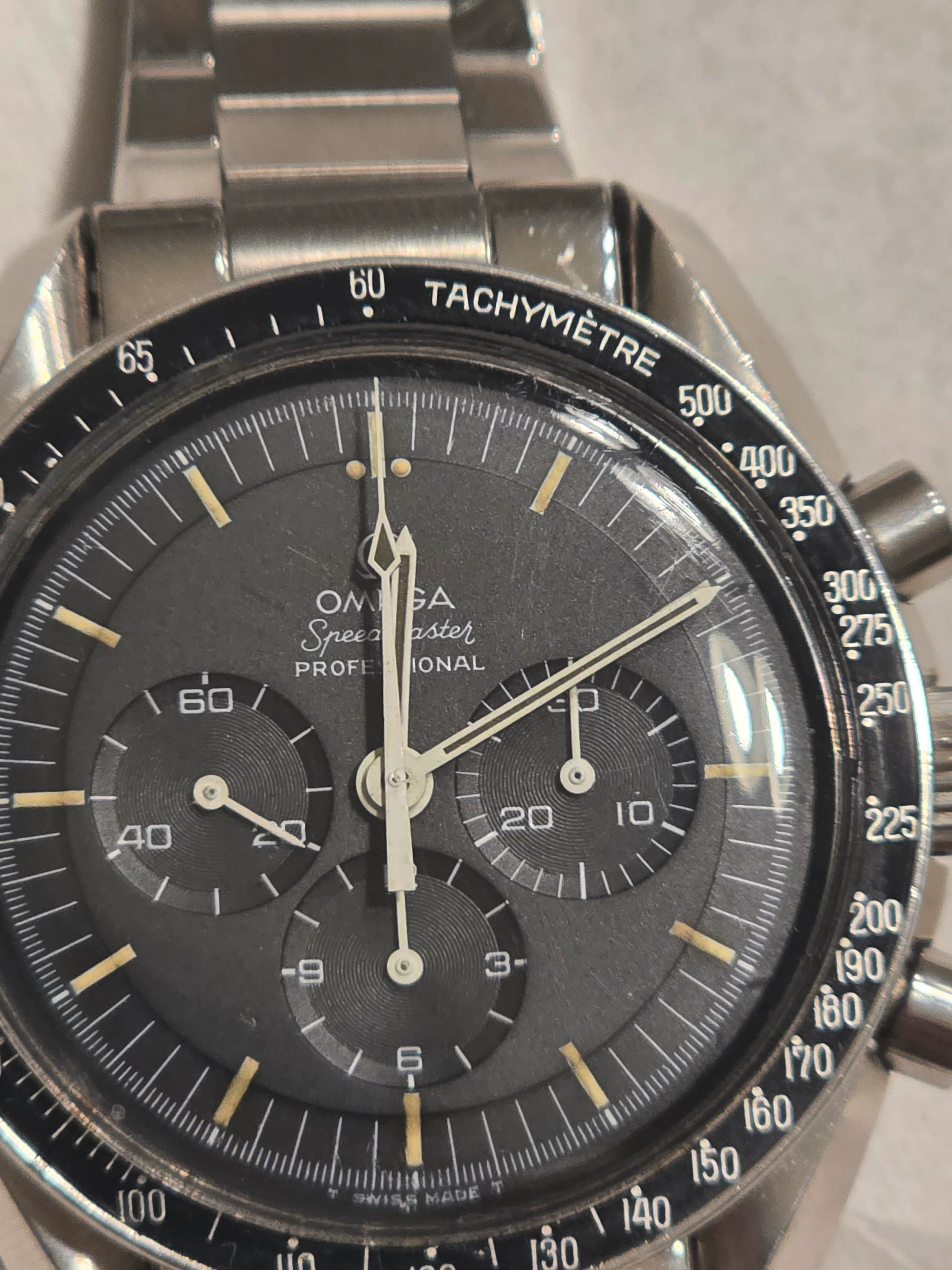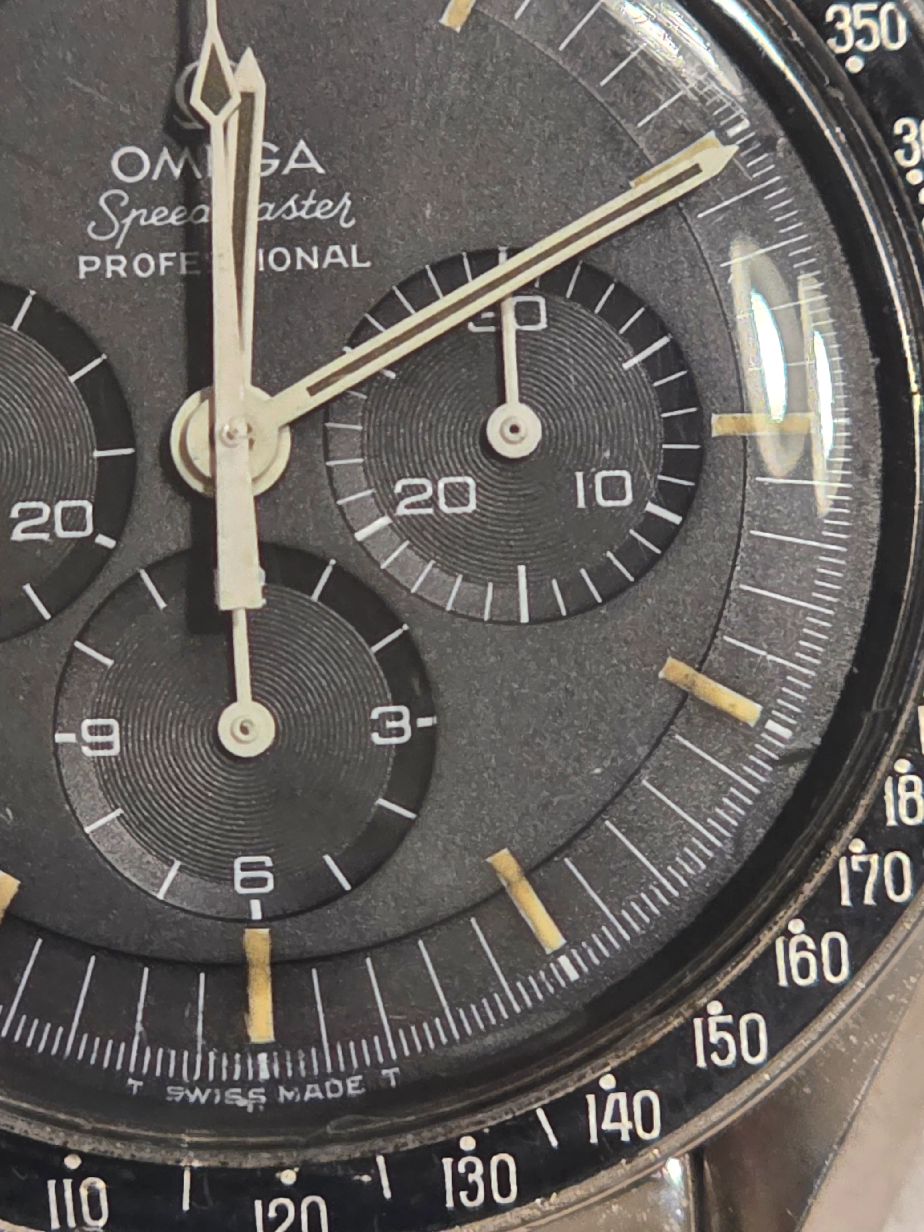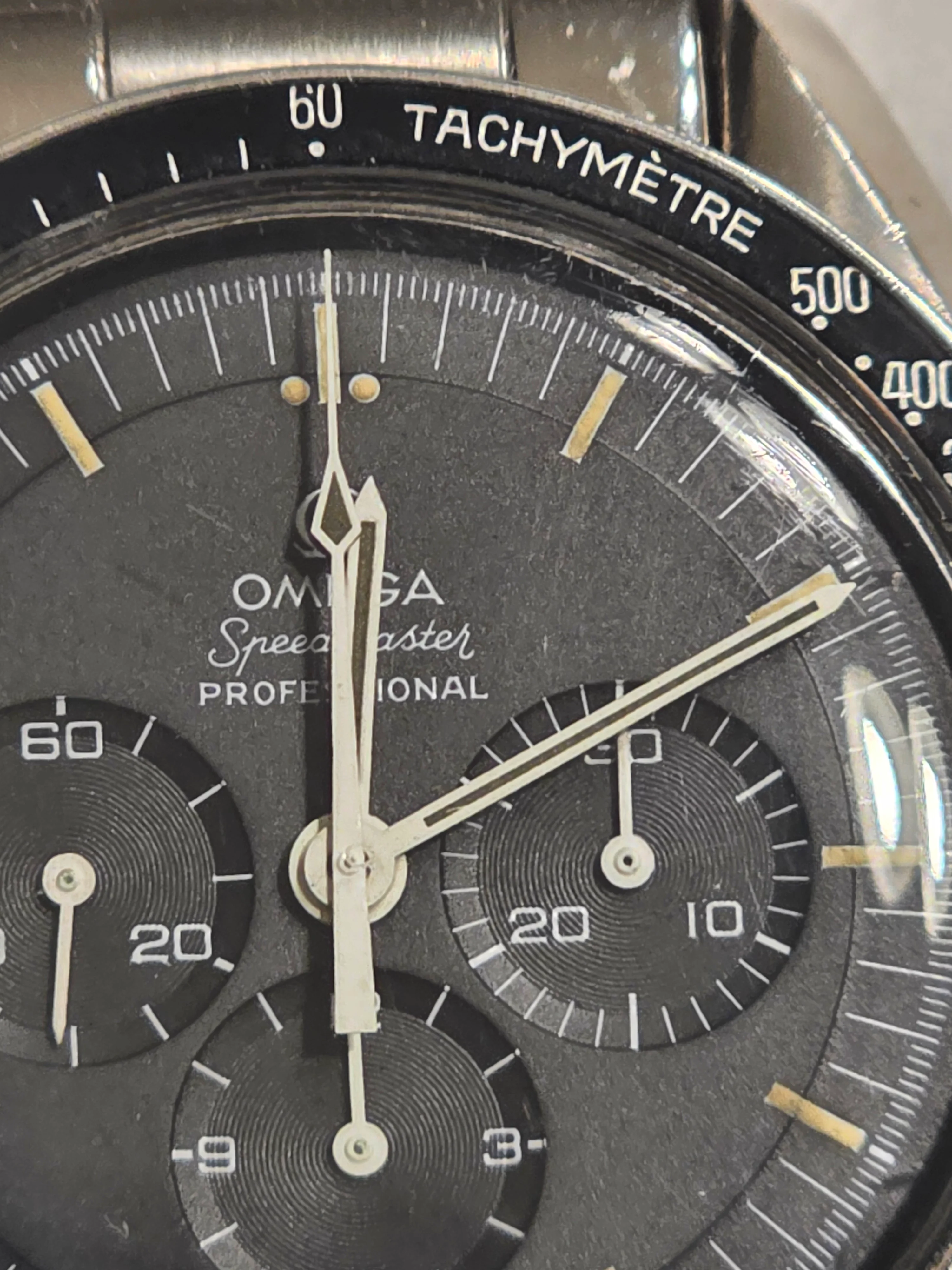 This particular era of Speedy I find has more variability in how the hands and lume look color wise than any other, I've seen dark, white, green, yellow, brown and everything in between, dial lume on that one looks a bit messy, but the photos aren't the best either, some of the originally applied lume is quite messy, but that's a bit excessive.