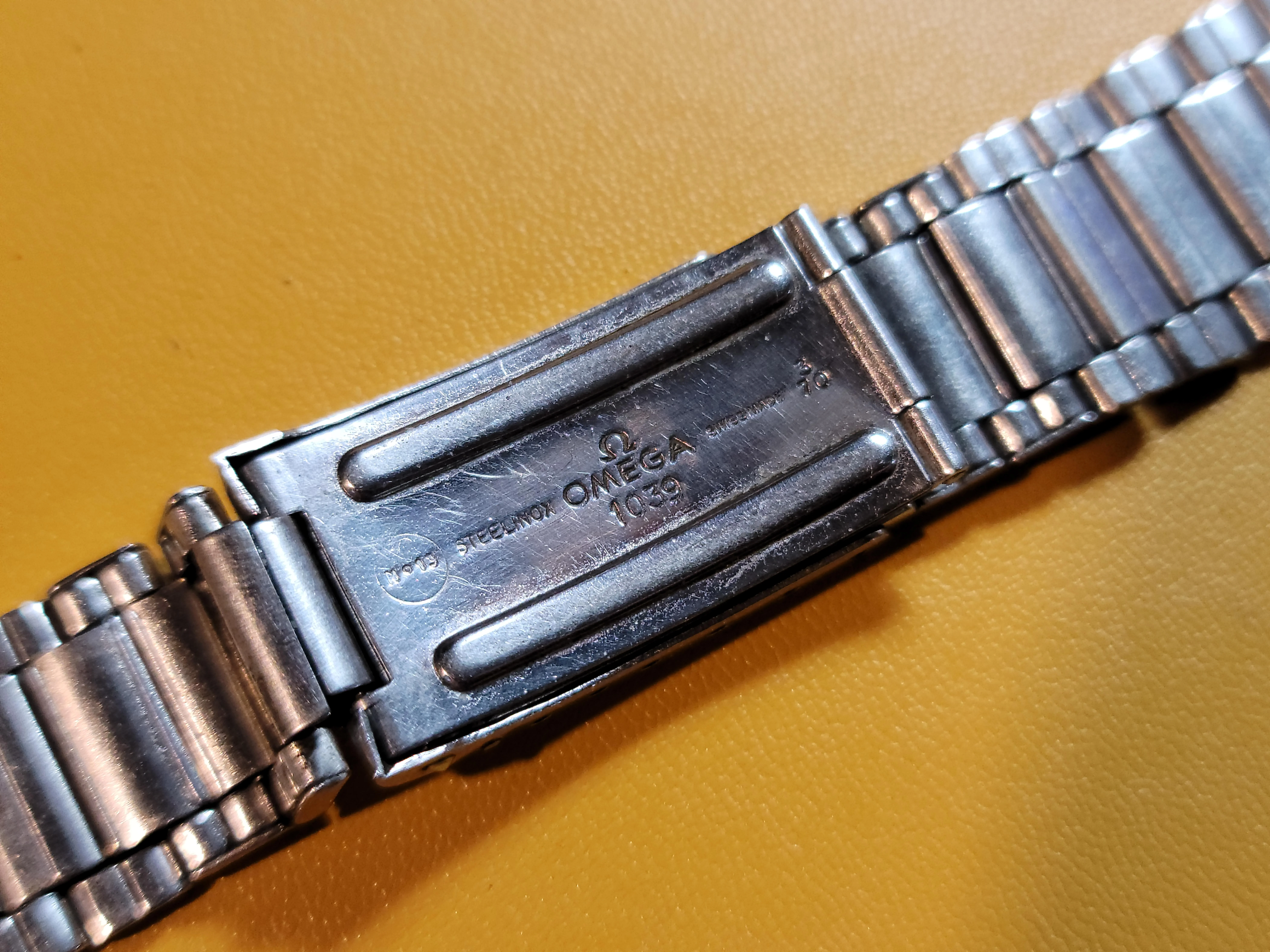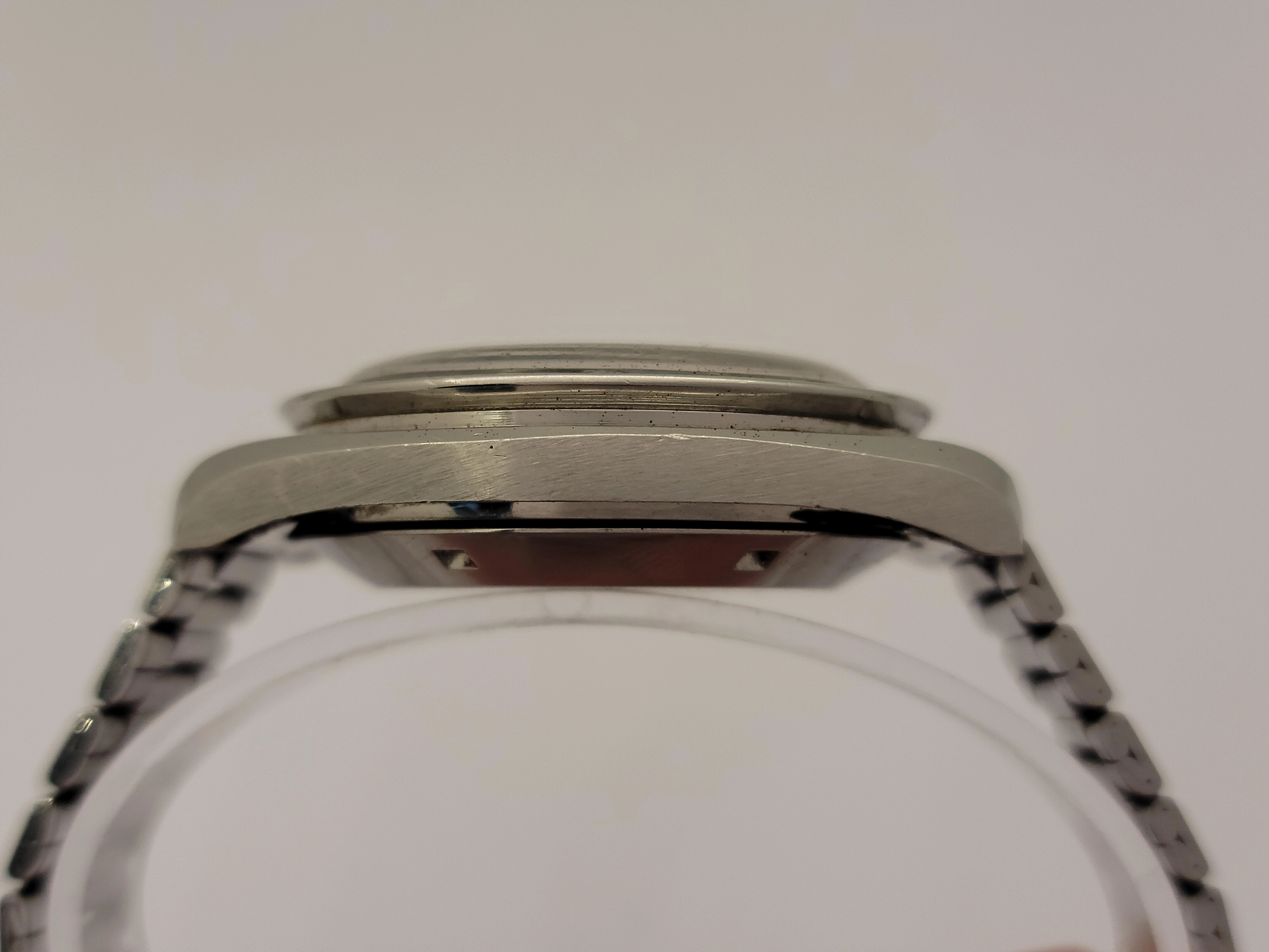 The watch is a 145.022 and appears to be all original as far as I can tell, aside from the crystal. I have purchased a 063PW5139 crystal as well as some replacement springs for the stretch links in the 1039 bracelet as there's a few broken. Hands have intact lume, although its turned black. The watch is currently running but definitely needs a service. Crown is stiff, pushers are completely stuck in the outward position.