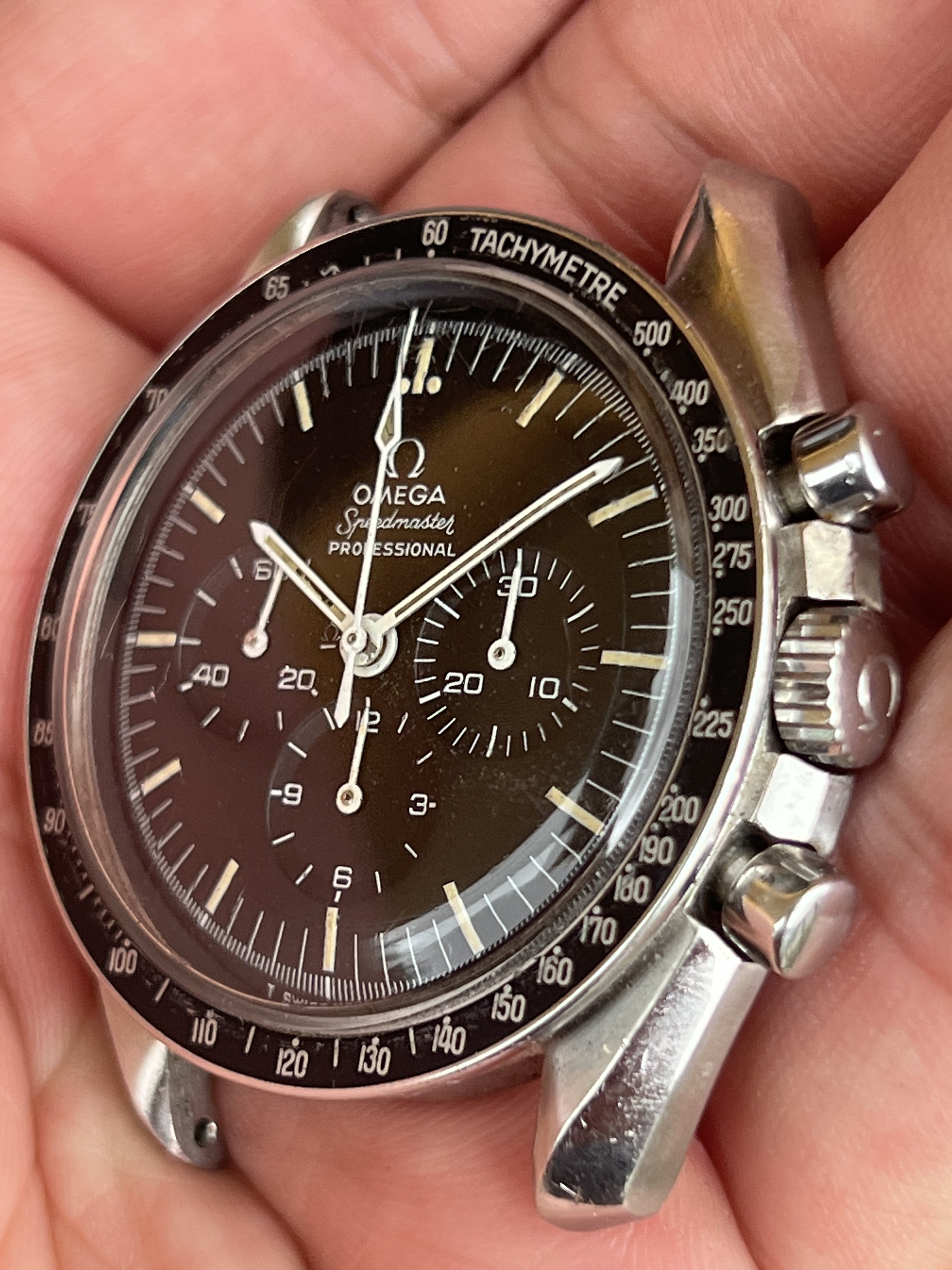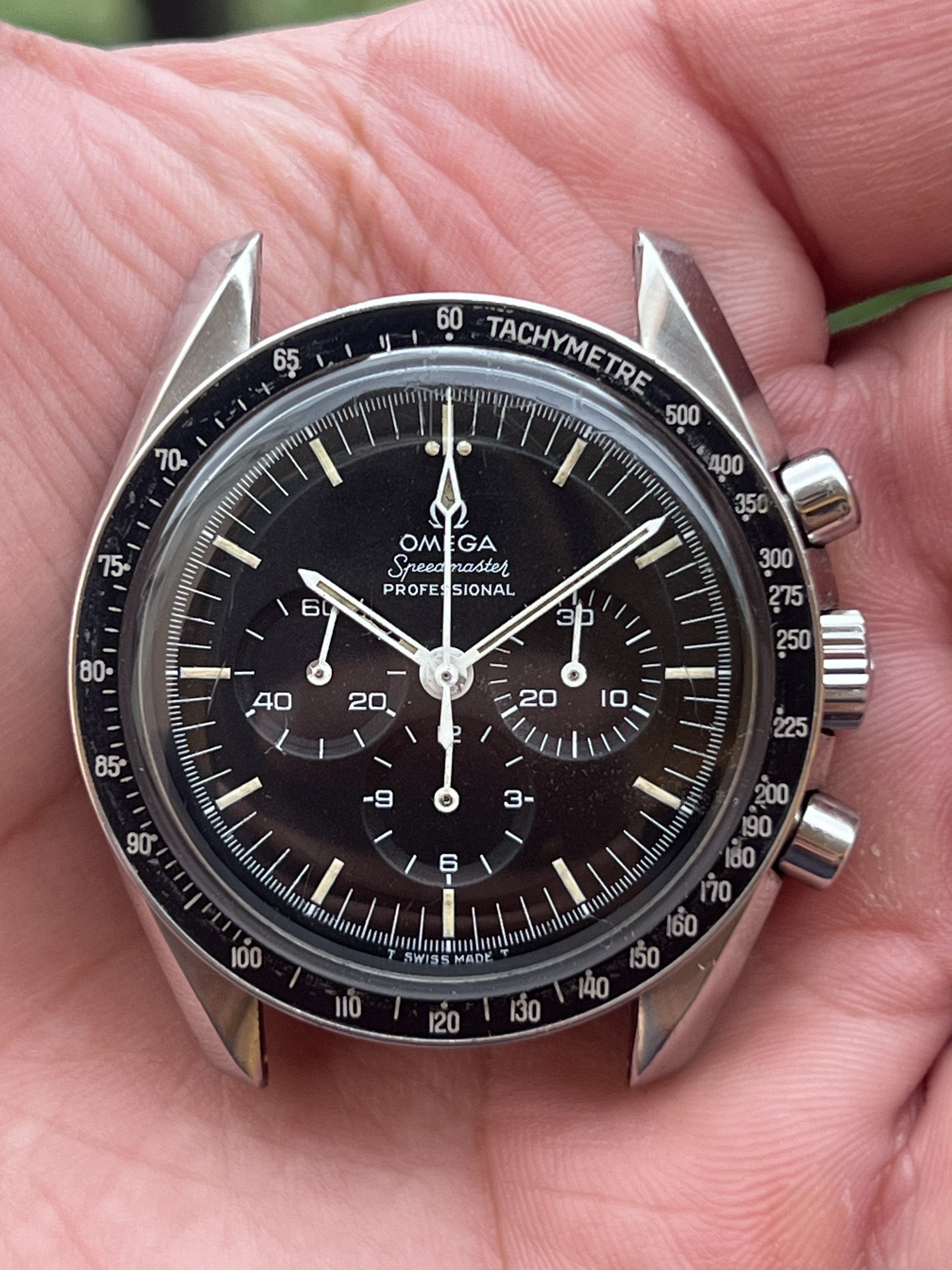·Hello forum members. I have for sale a 71 speedy. This watch has a correct step dial and dnn bezel. Watch is functioning as intended. Chronograph starts and resets with no issues. Caseback is also correct showing a 71 stamp. Hands are missing some Lume. Watch will come with a leather strap. My asking price is 4200 usd or best offer. If you have any questions or need more pictures feel free to reach out.