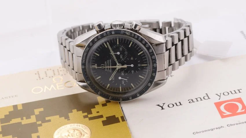 A Speedmaster 145.022-74, with papers and a 1171/633 bracelet.