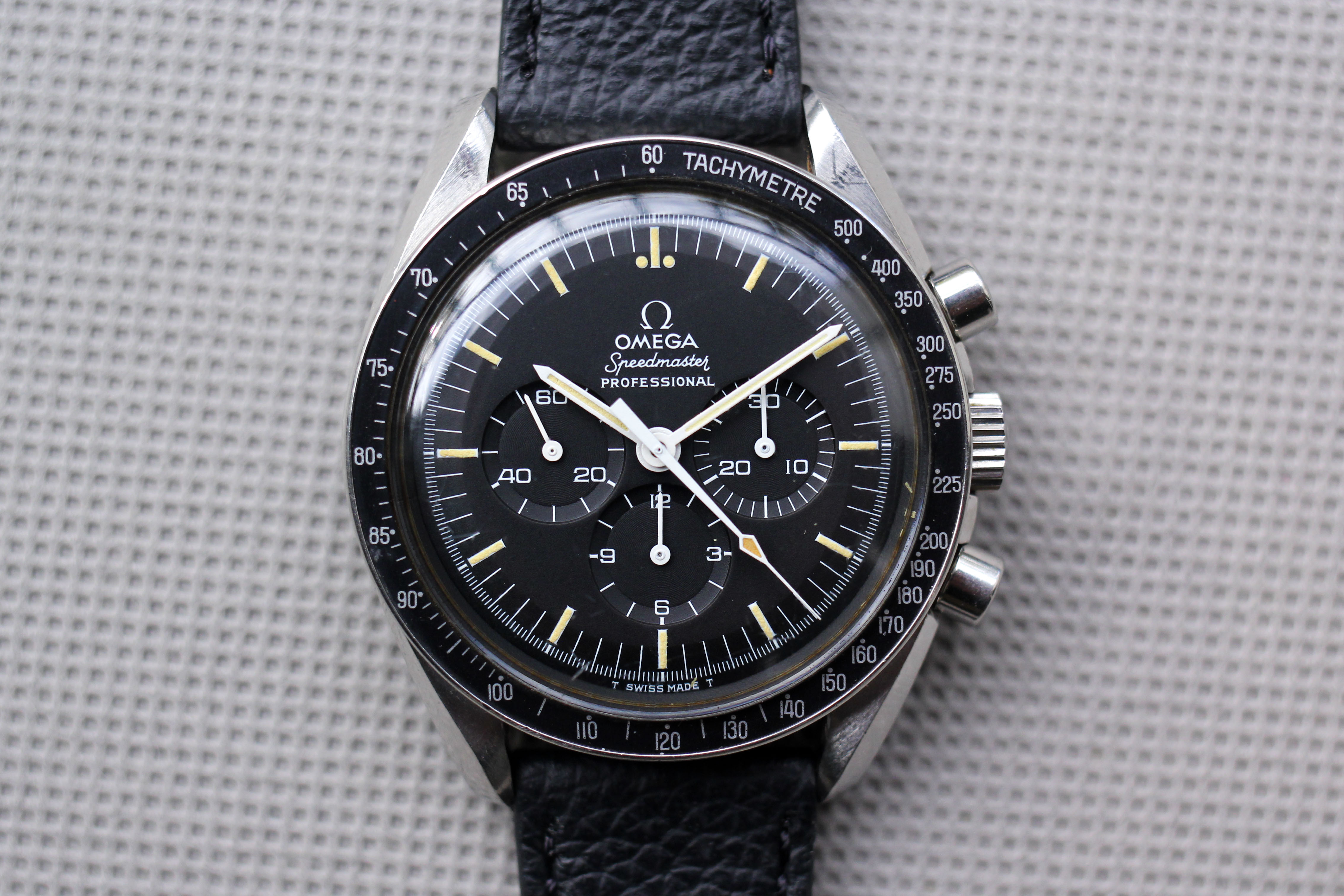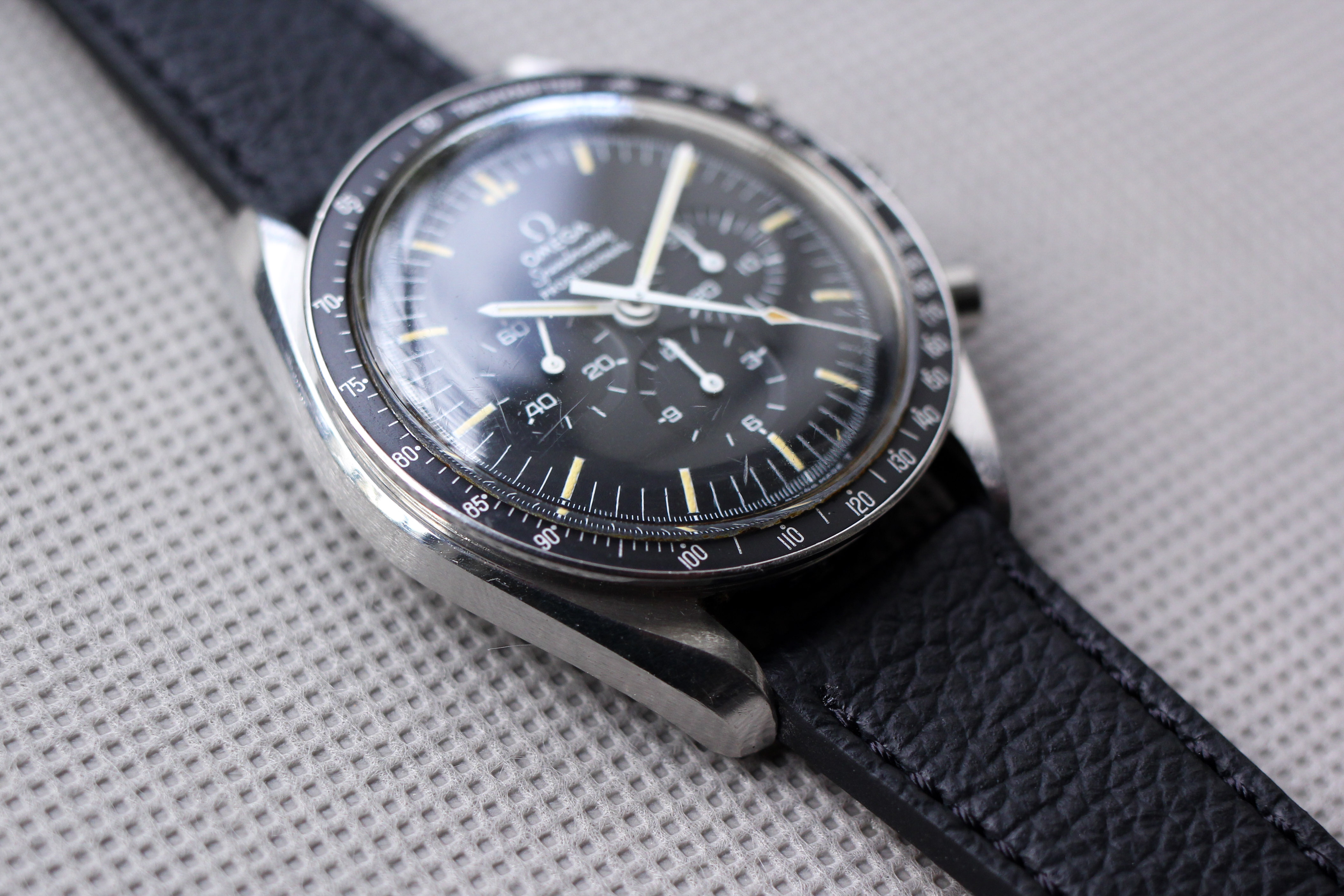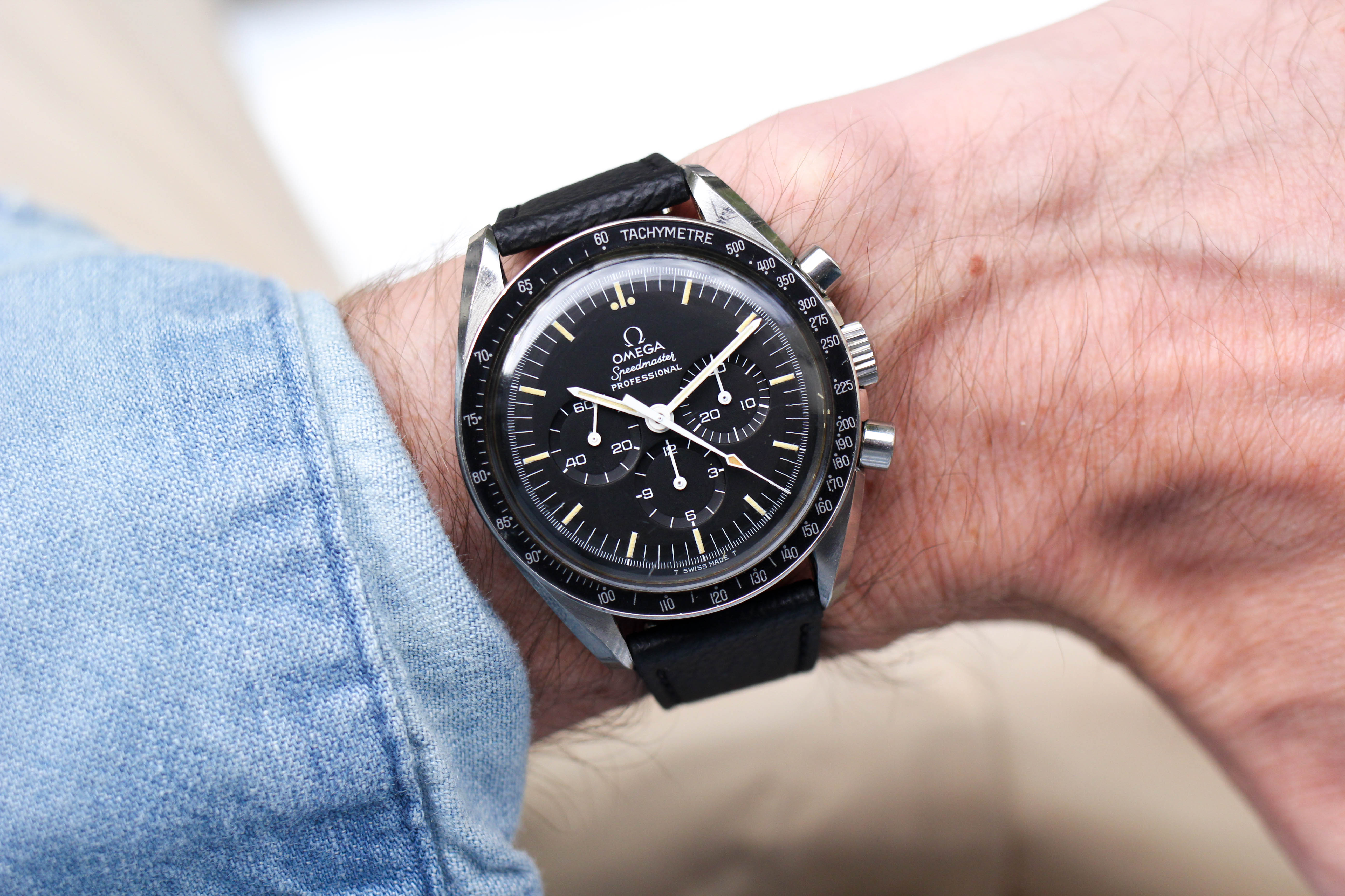 ·Up for sale is an incredible example of a mid-70's Speedy. I purchased the watch from the original owner and had several conversations to discuss its provenance and the owner's back story. He originally purchased the watch in 1977 from a jewelry store in Springfield, IL. He offered the watch to his son, but his son had already been given his father's Seiko that was on his wrist in Vietnam, so he had no interest in the Speedy (lucky me!). The owner moved around quite a bit through the years and unfortunately lost the box / papers, but he wore the Speedy only on special occasions throughout the years. The state of preservation is amazing, capped by the original red wax seal on the caseback. If you are a Speedy diehard, you know how rare this is! Because of the seal, I have not opened the caseback to actually confirm that it is a -76, but based on the date of purchase and the dial variation, I am confident that it's a 145.022-76.