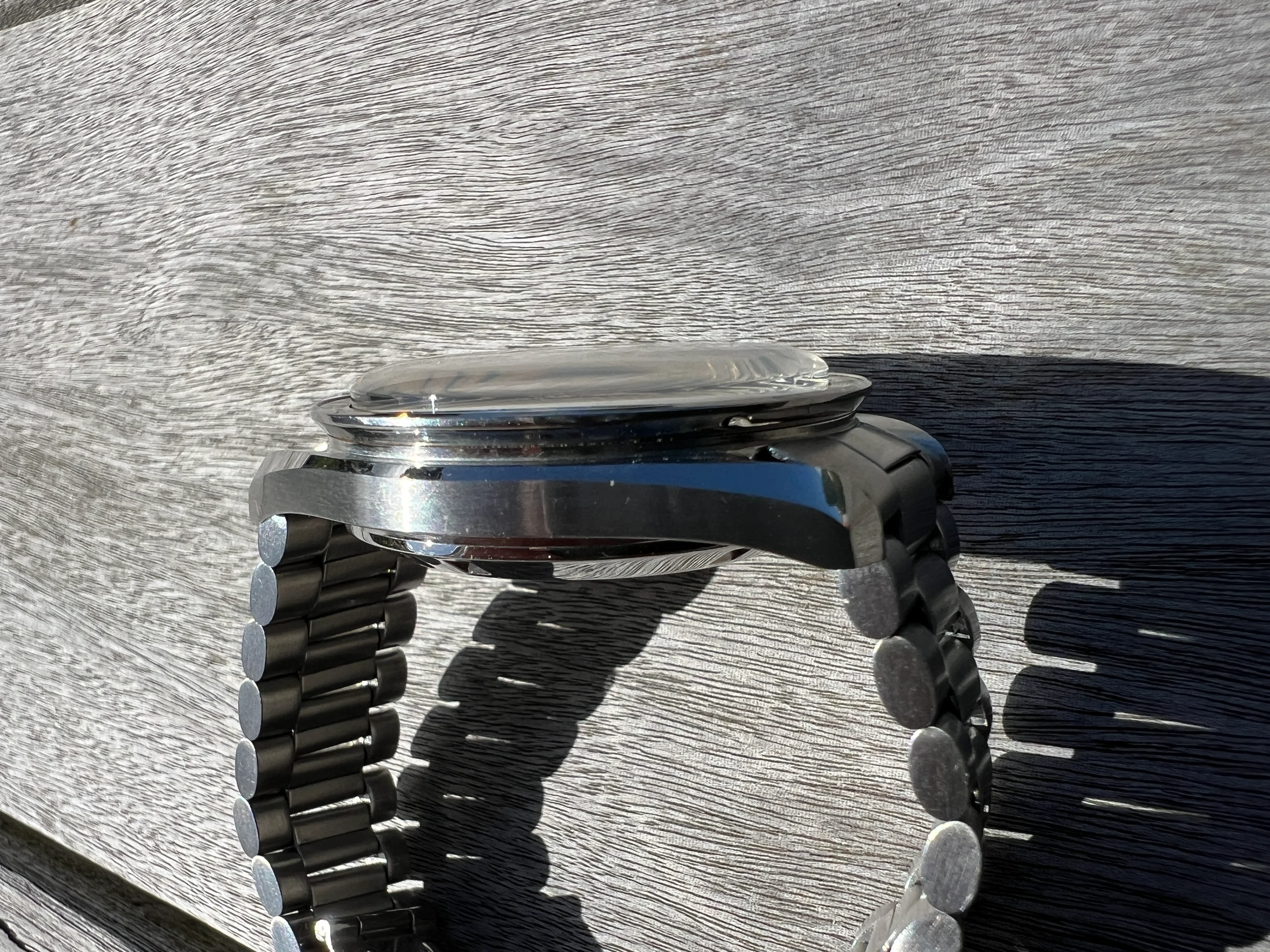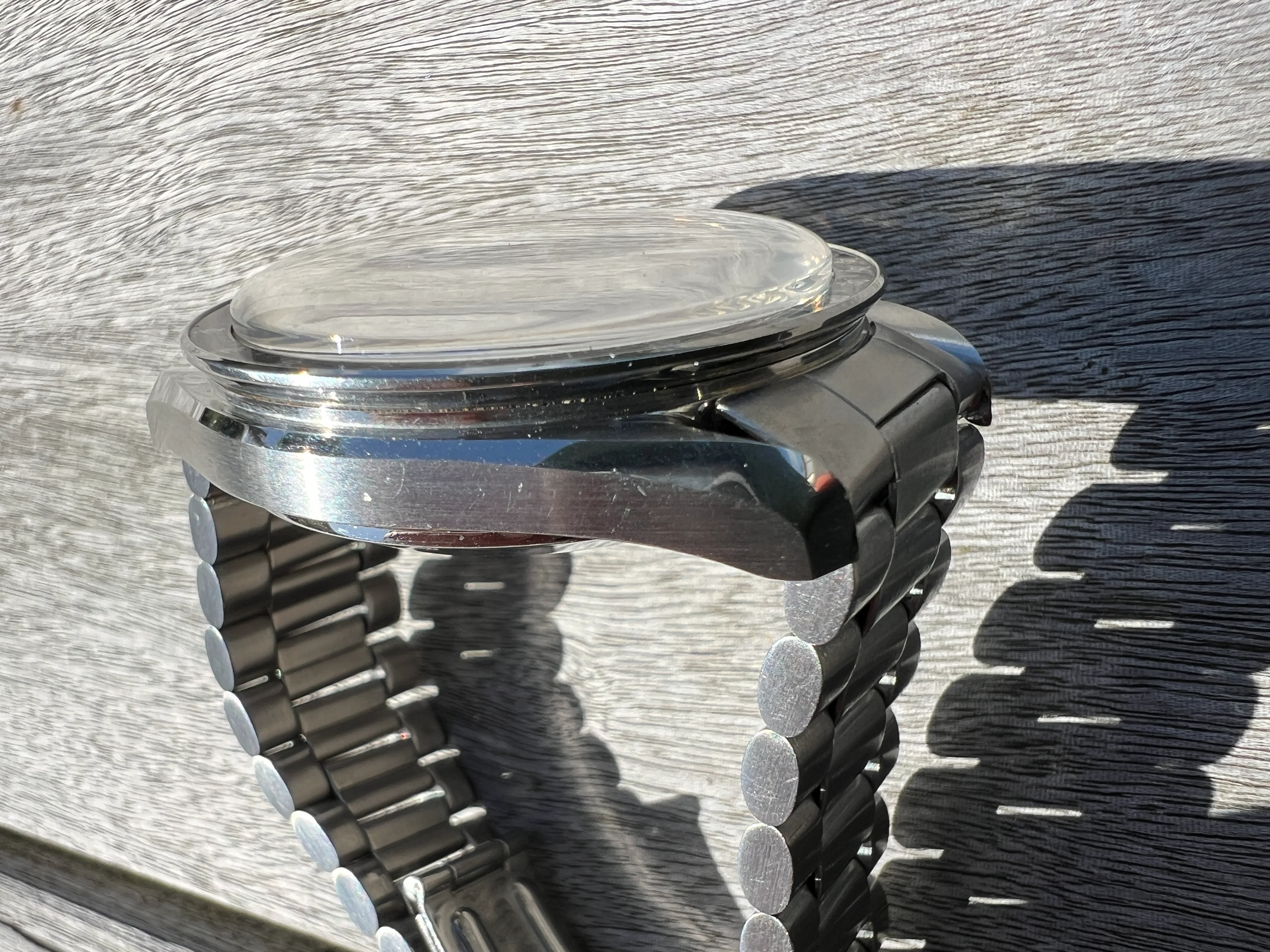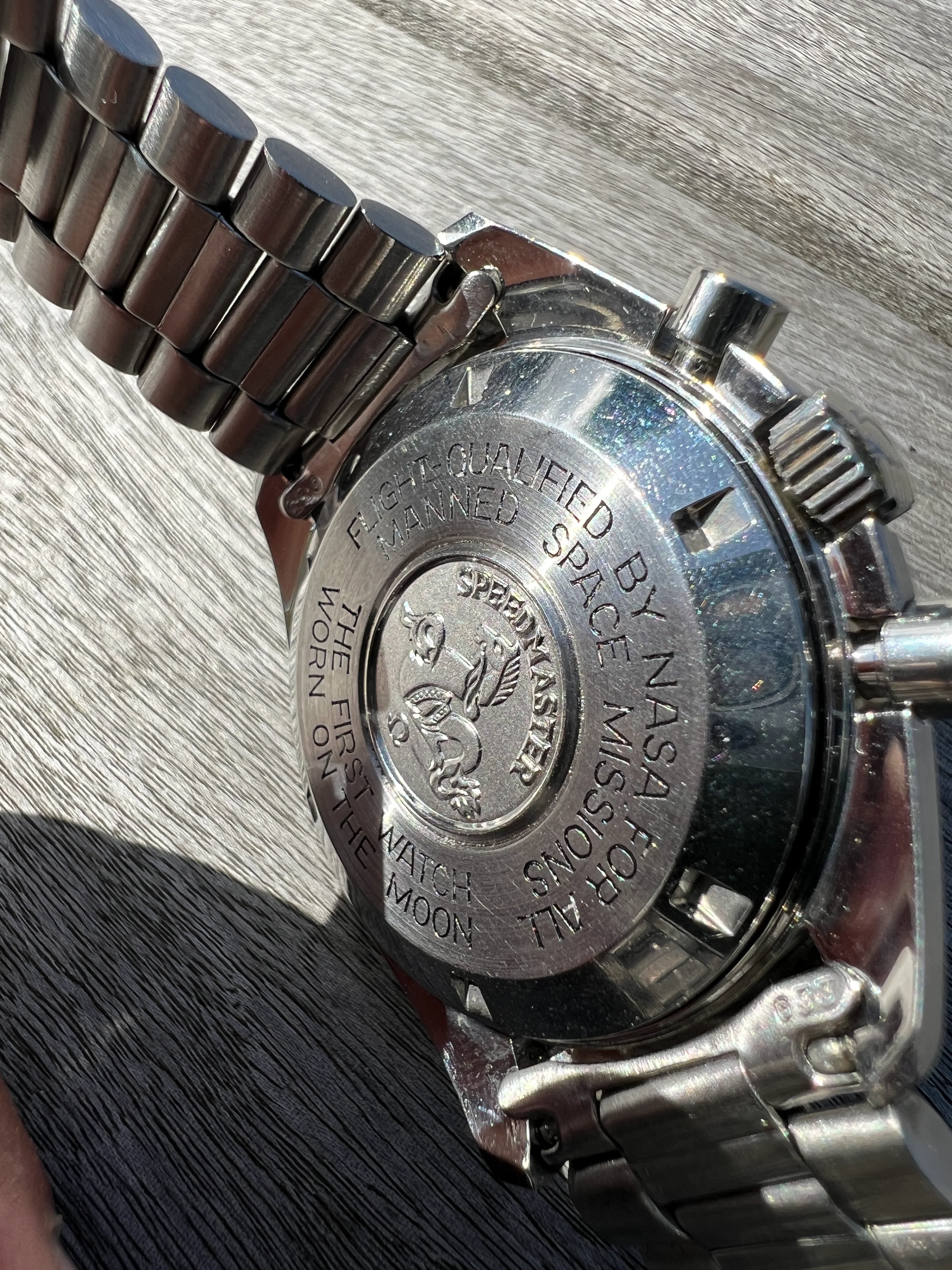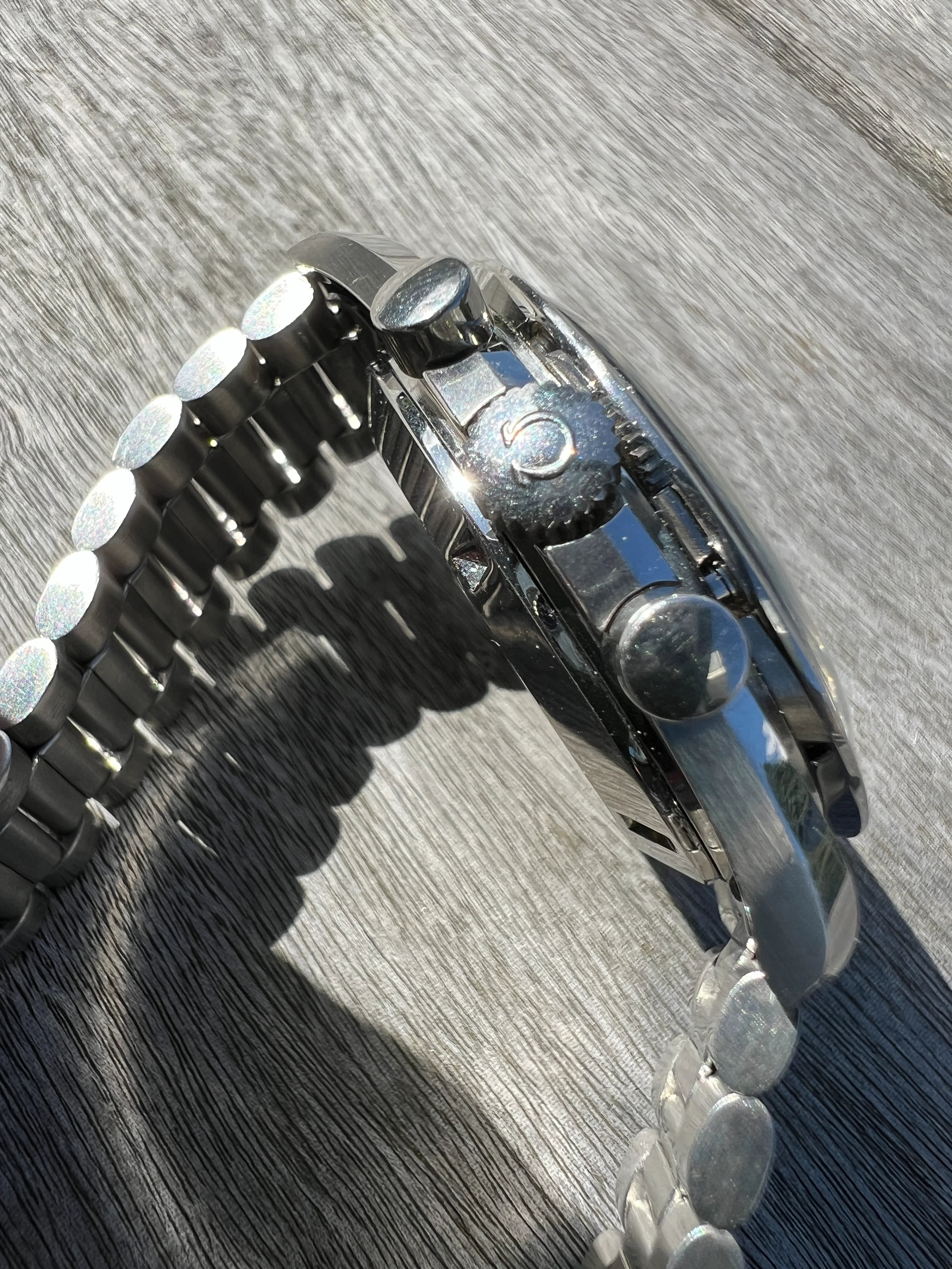 Apart from the nice dial, the case is what stands out to me and could be a giveaway regarding the reference. Given how sharp the case is and the fact that there are some points of wear, I am going to assume our quiz watch isn't polished and if it has been, it has been done very lightly. When one compares the 'feet' of the lugs (where the case lugs on the wrist) of the quiz watch case with the 145.022-78 shown above, it stands out that the surface area of the feet of the lugs is bigger (wider) on a 145.022-78. I can confirm one of my own 145.022-78's has the same, the case of a -78 seems a bit more beefy. So, I am inclined to believe this isn't a -78 but a -76. Note that it is pretty difficult to identify a 70s / 80s Speedy by its case profile with such poor side pictures.
