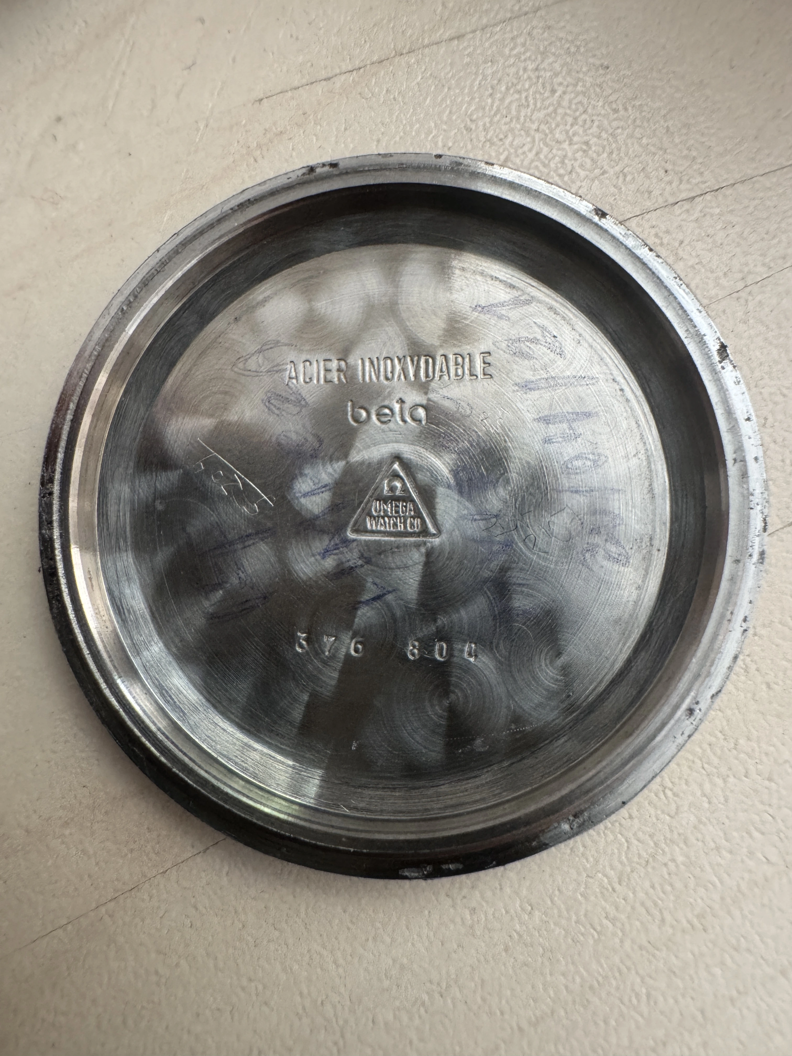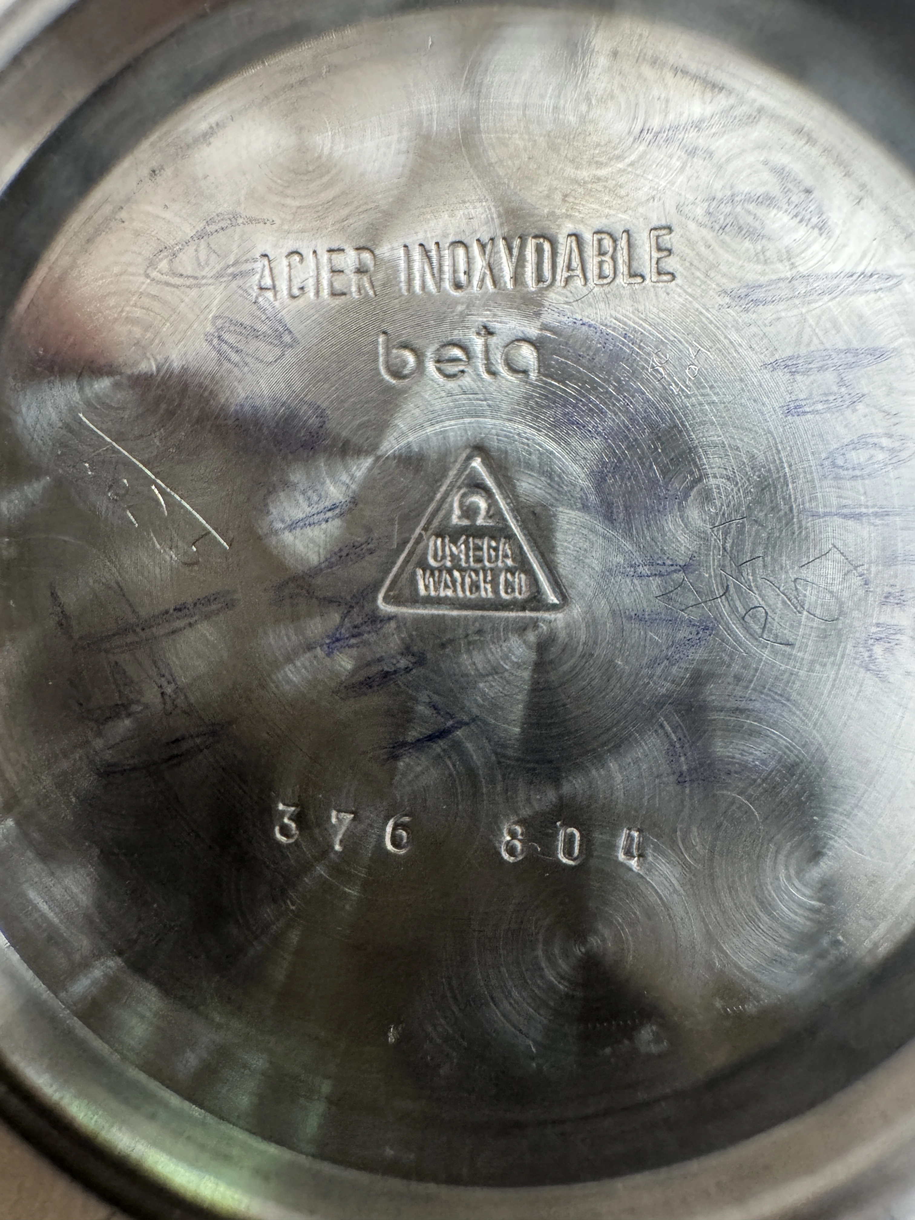 My question is does anyone have any info on this case back. Doesn't appear to have ever had the hippocampus logo on the back and inside a rather intriguing "beta" script.