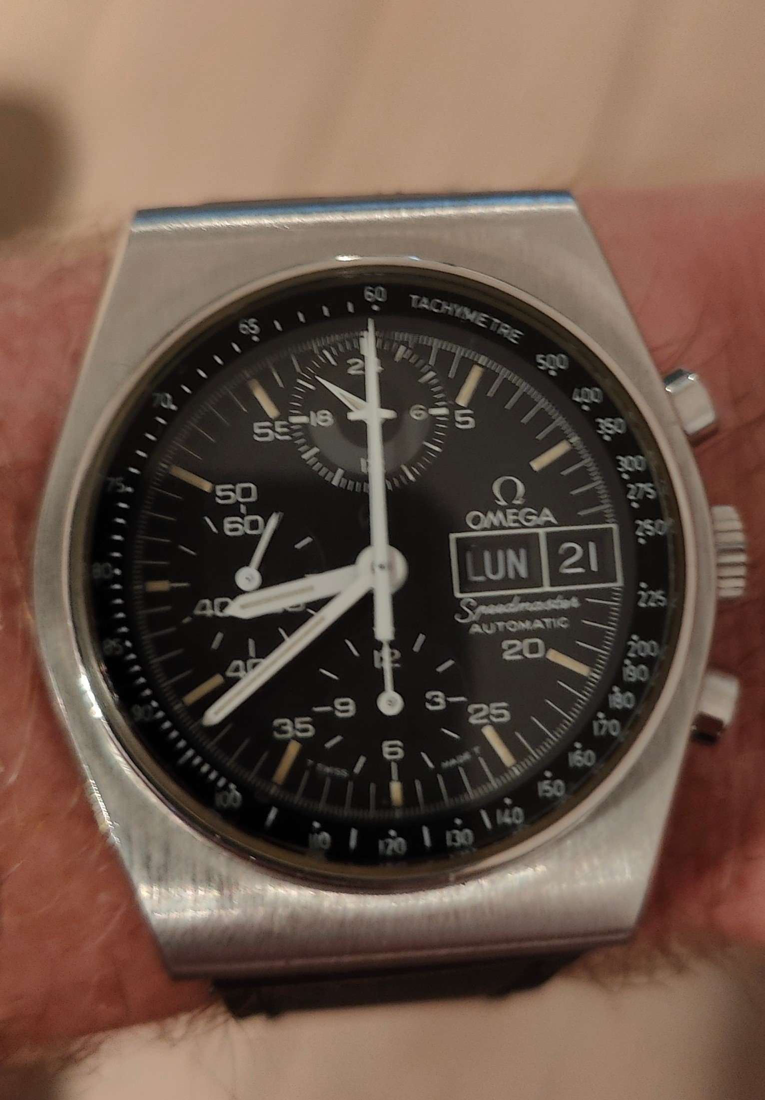I recently purchased an Omega Speedmaster 176.0016 from a jewellery in Switserland. I cannot figure out the serial number via the database to find the make year. It also has a tritium lume, which I didn't find on similar watches.