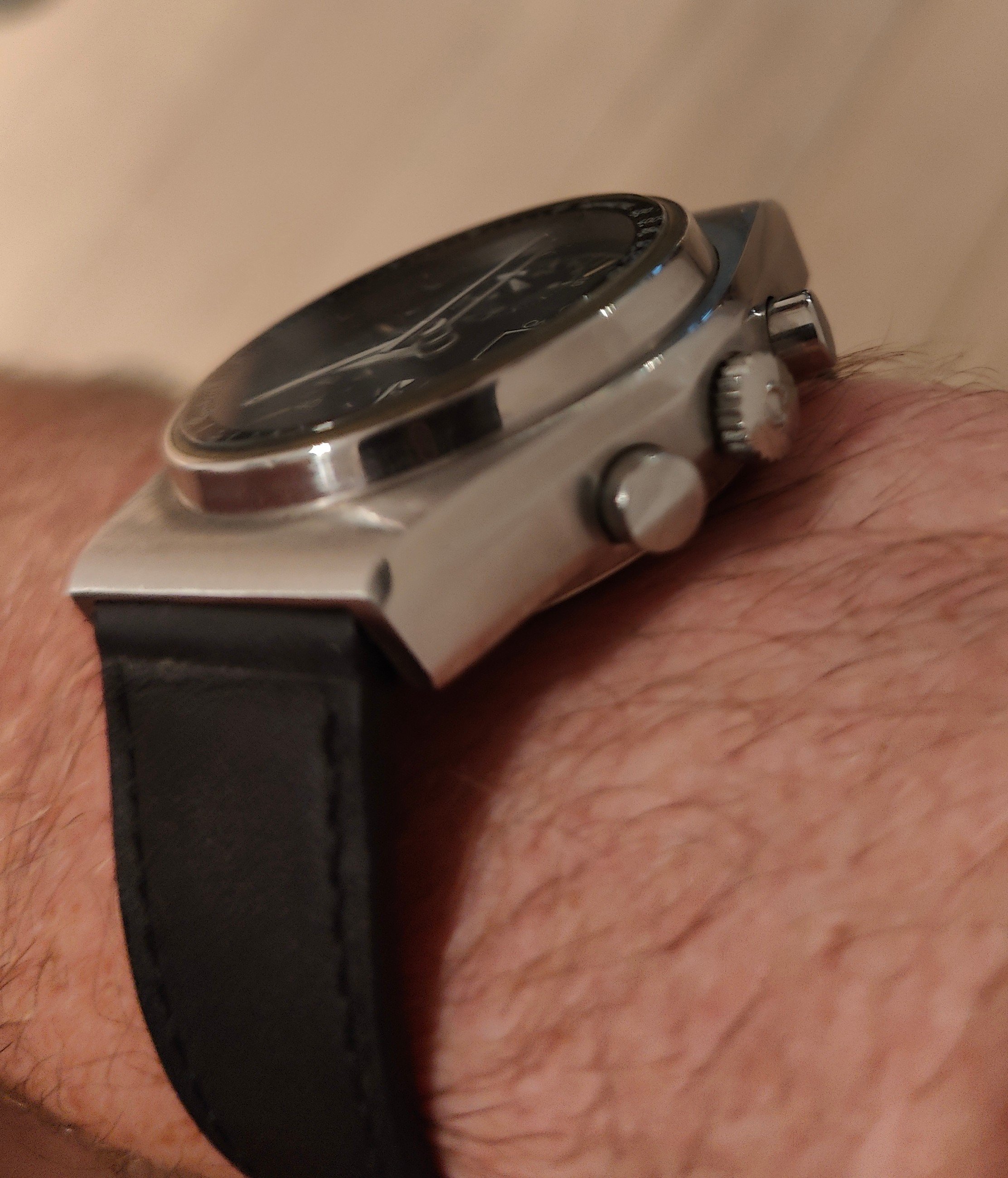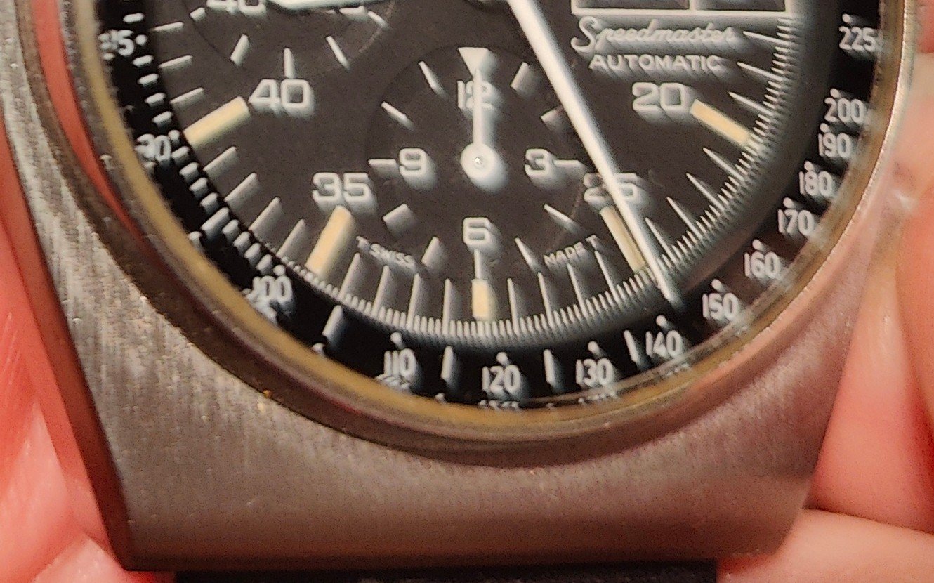 It's also interesting that the number 55 is obscured by the 24 hr time ring, that the font used within the 24hr time ring is different from the rest of the numeric fonts used on the watch, and that the Omega logo isn't justified left in relation to the date window as most 176.016 are.