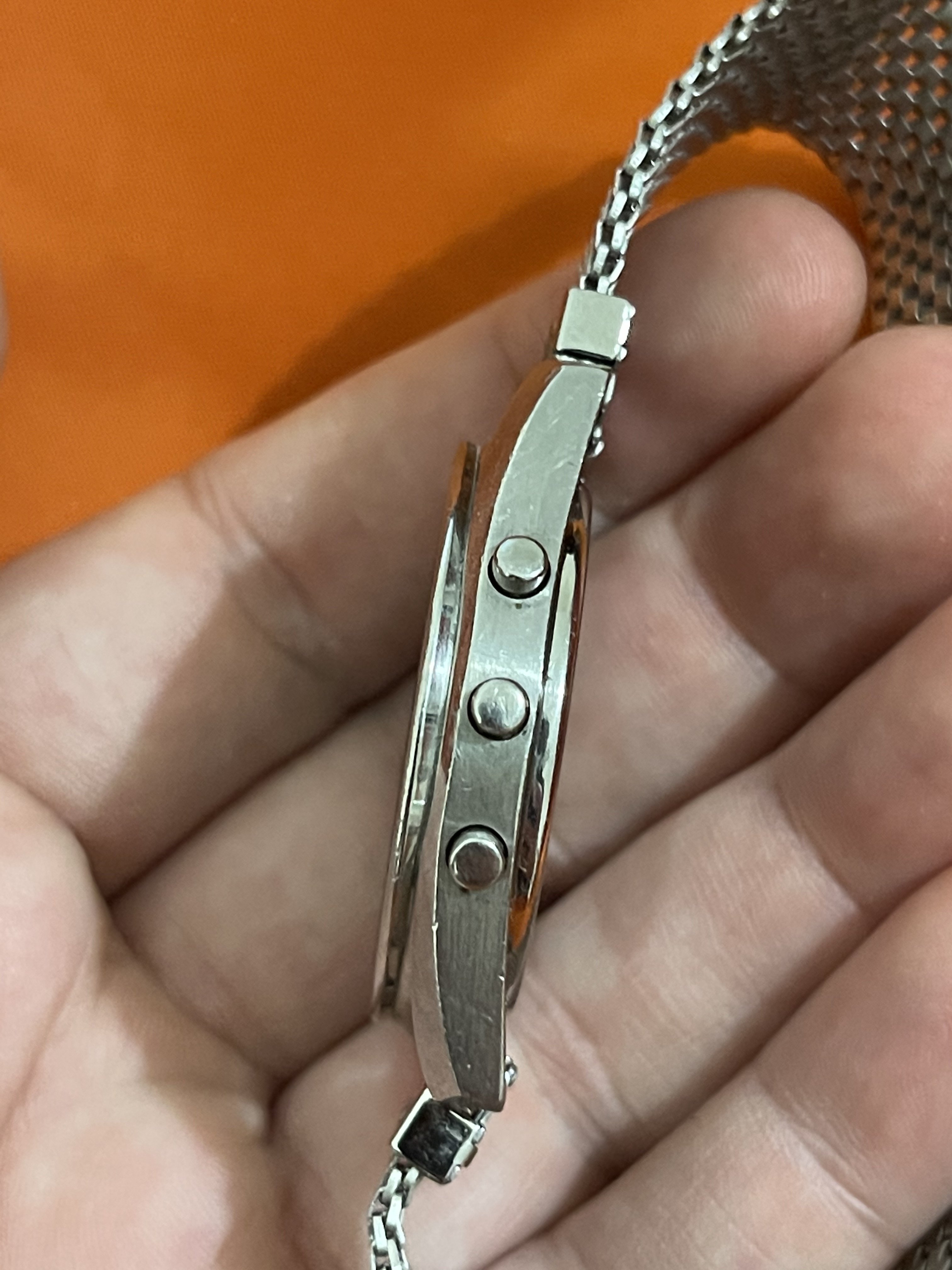 The watch has just been serviced, it was fully cleaned, new battery and the crystal has been changed (the original one is included in the sale). The Cal1620 is working has it should. I choose not to polish the watch to keep it original so as one can expect the case has some scratches due to normal usage.