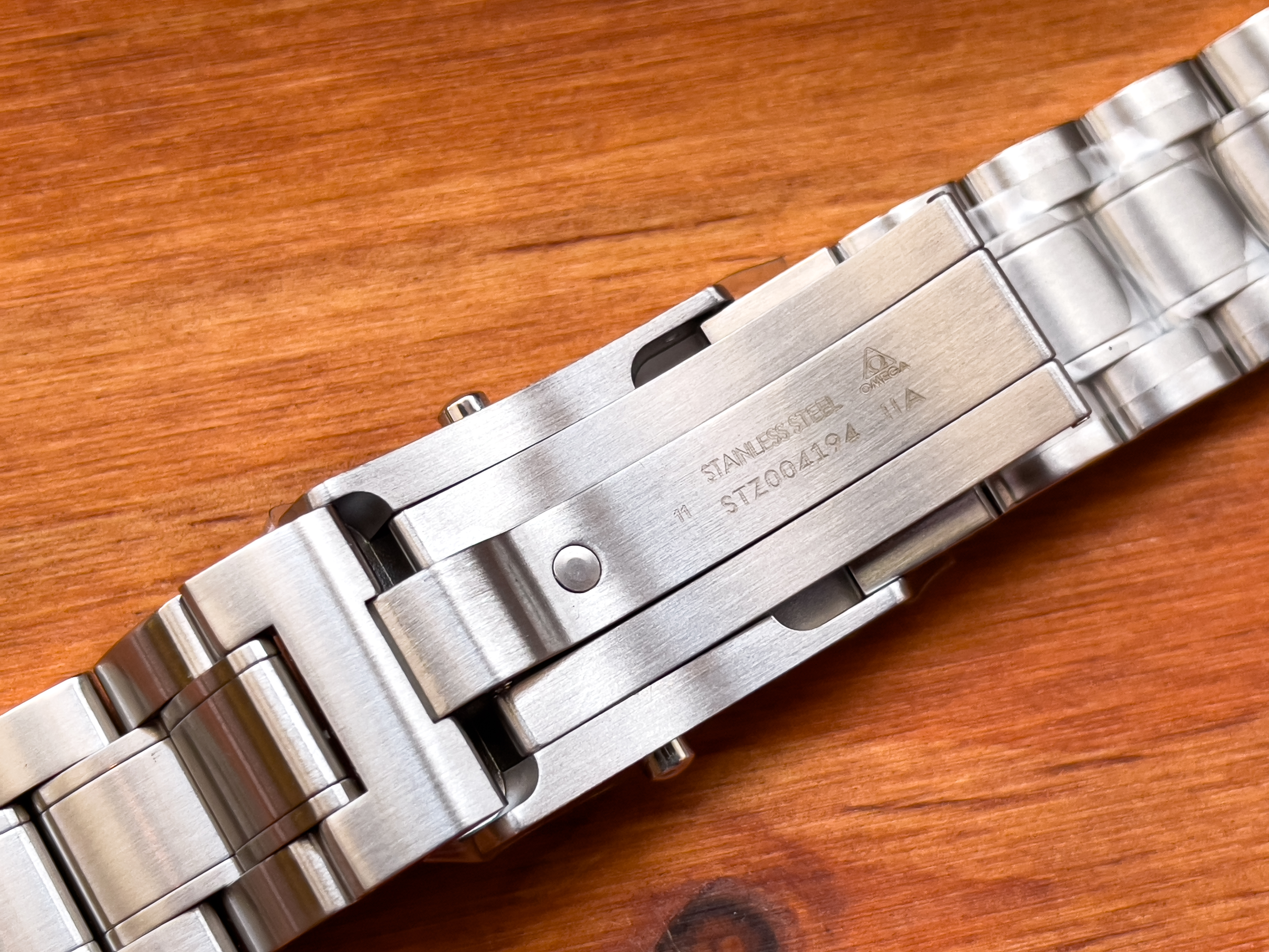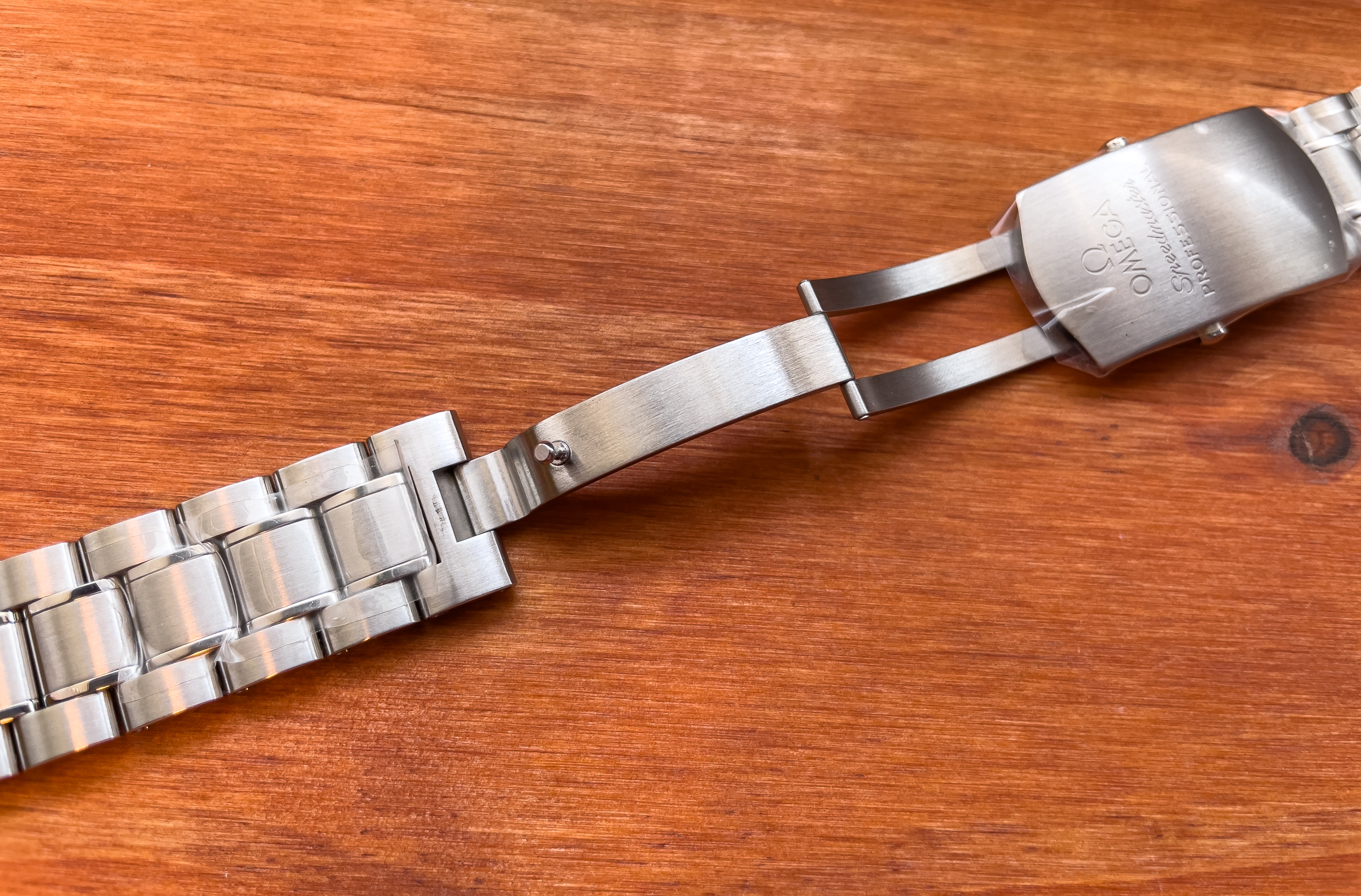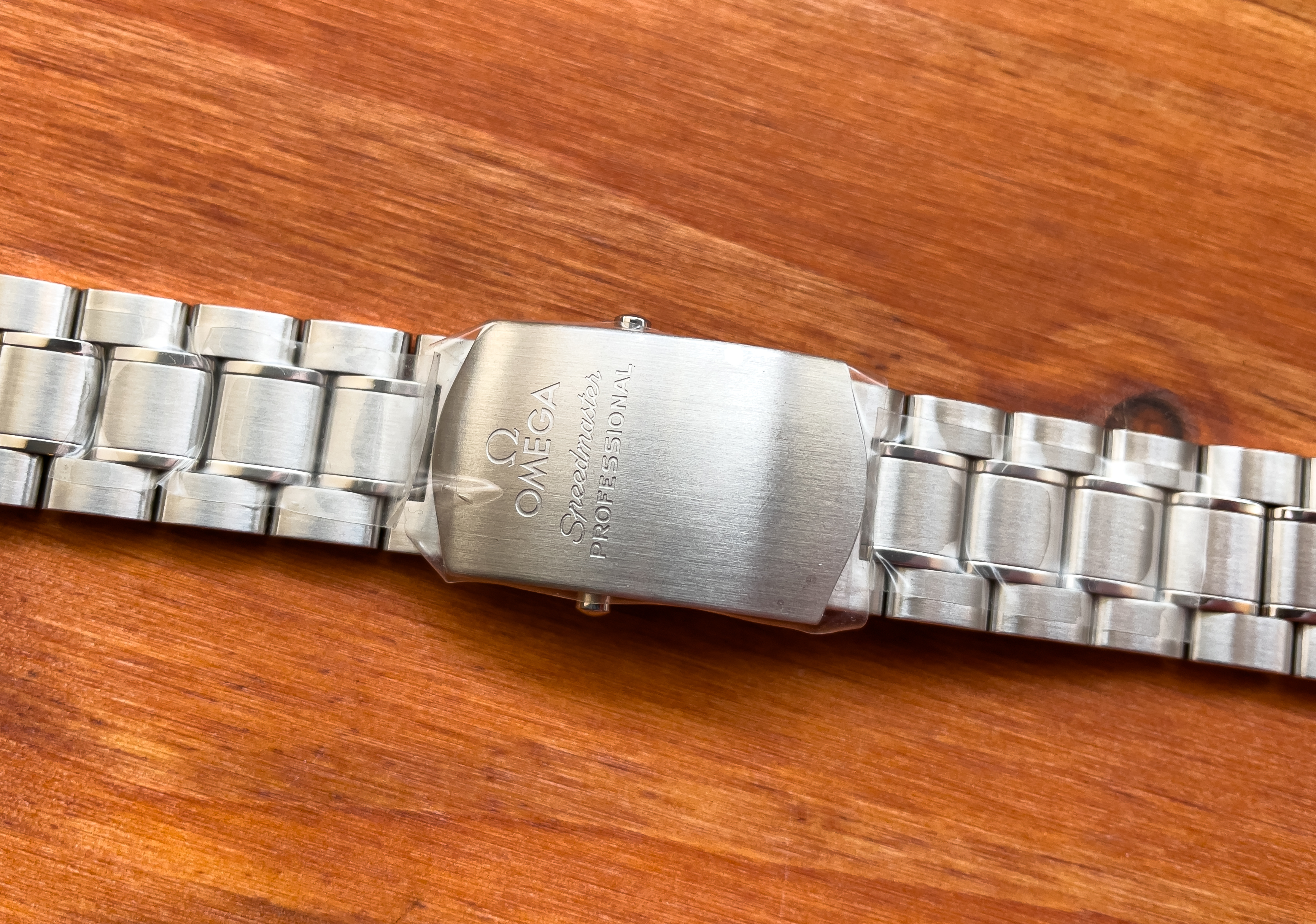 For sale is a brand new, unworn, and never resized bracelet pulled from my 1861 Speedy that I had purchased this year. I am the first owner of this watch, and as soon as I signed for the shipment and pulled the watch out of the box, I removed the bracelet and left if in the box. All the original protective stickers are still in place and have never been removed. As it has never been worn or resized, all the links are in place and in new condition. In image #6, you will see a small rub mark on the link that attaches to the clasp. I'm going to put this down to the bottom side of the clasp rubbing against said link during shipment to me from Omega. It's superficial and remains unseen when the clasp is closed.