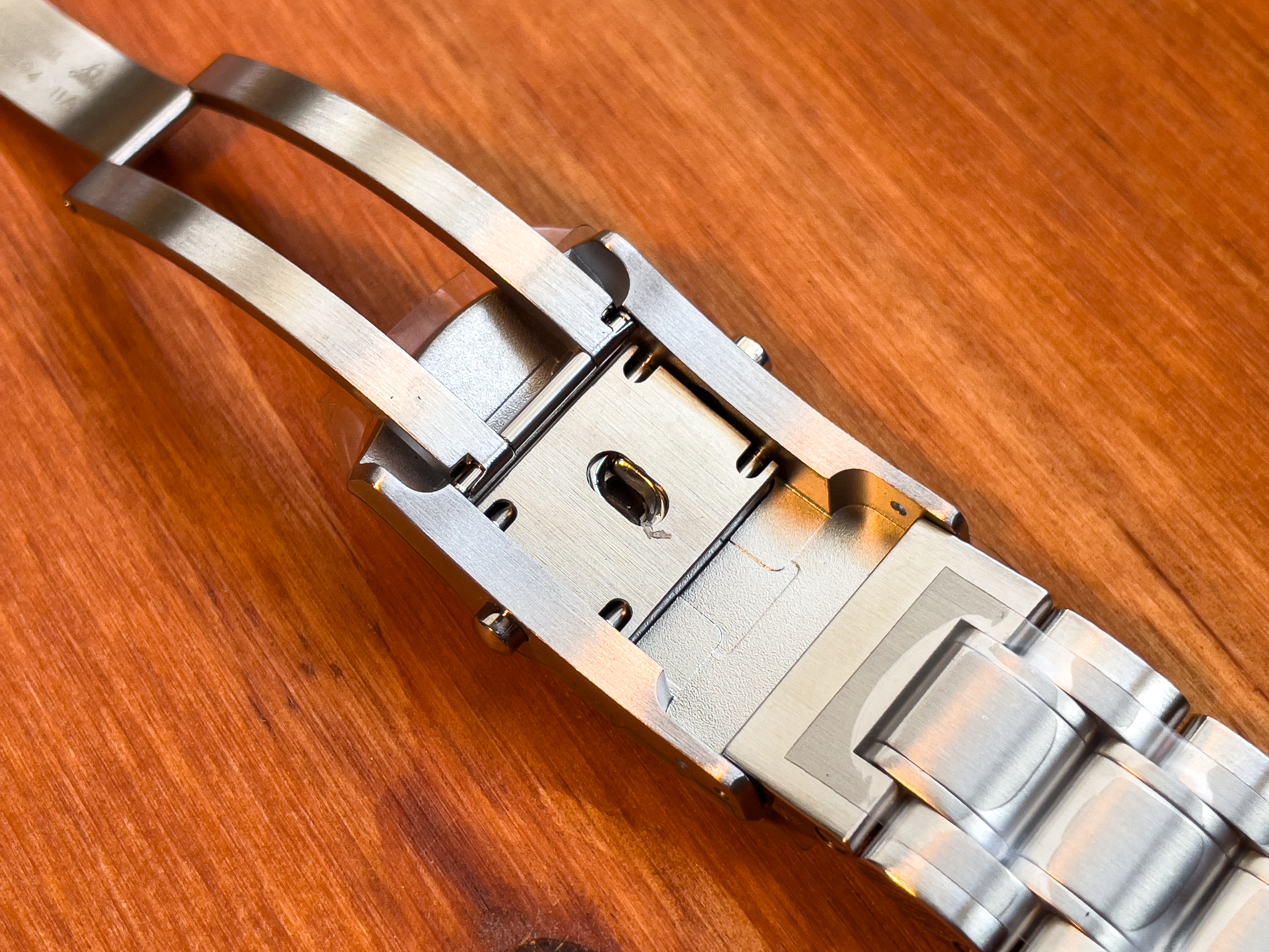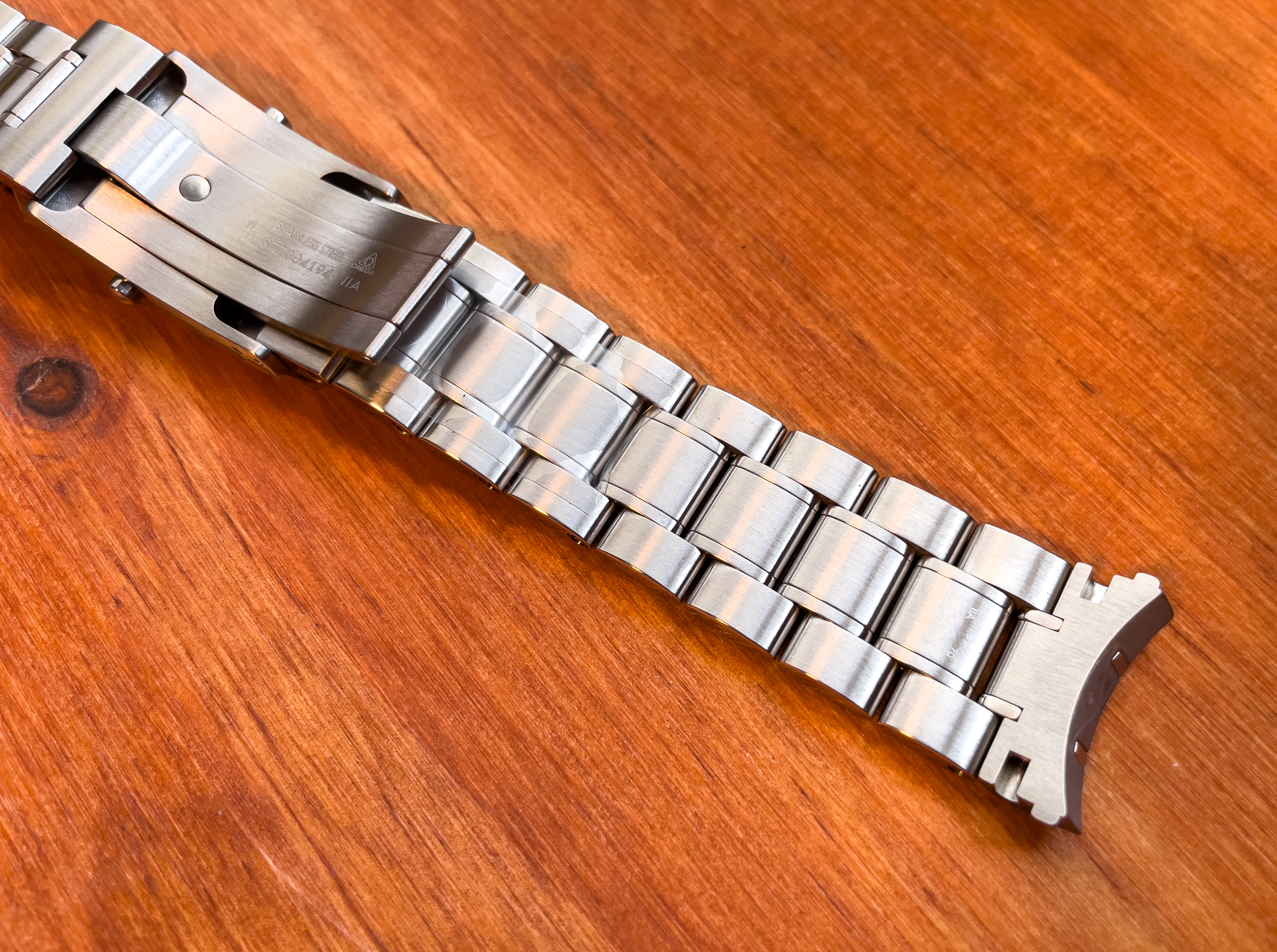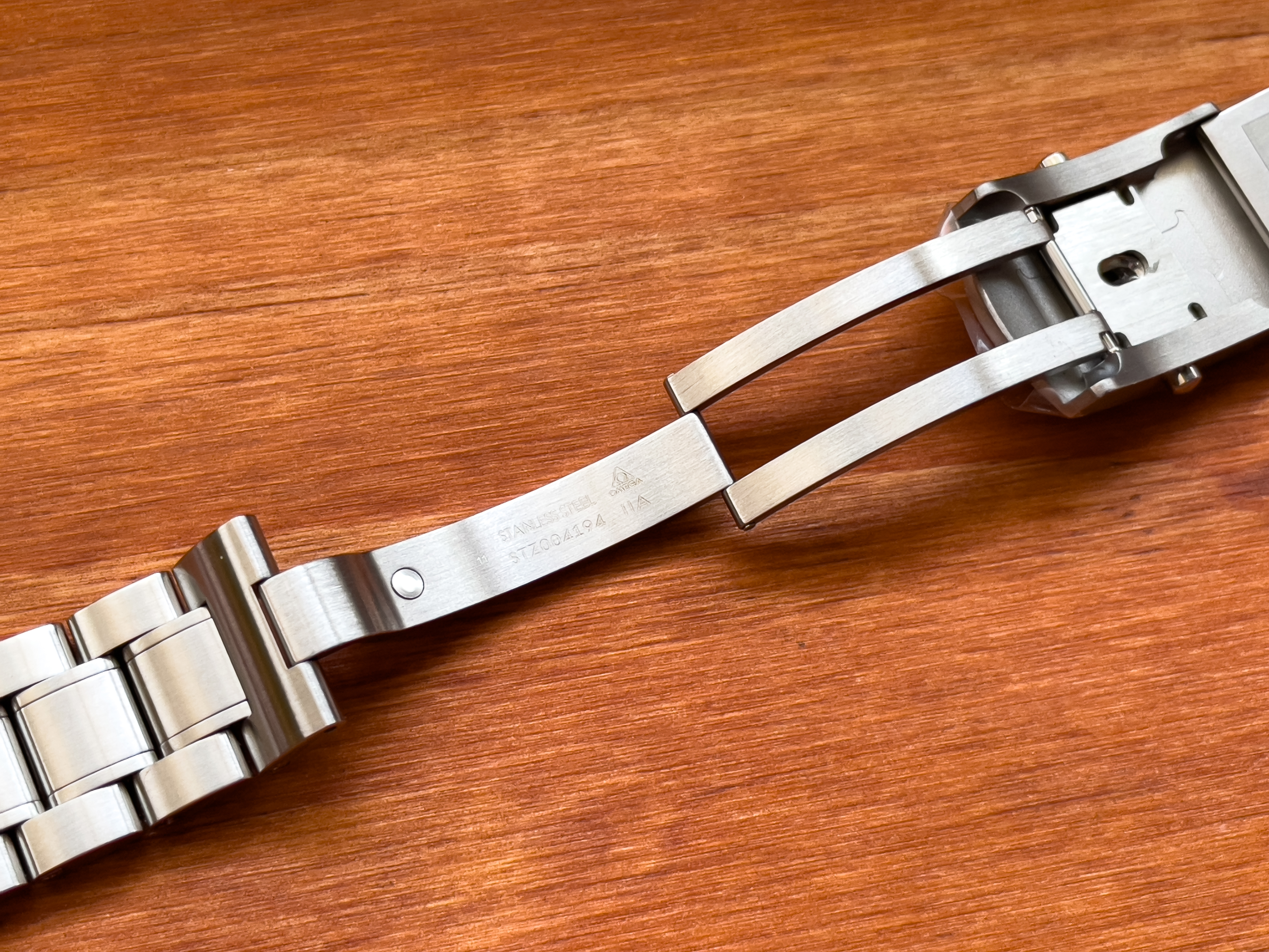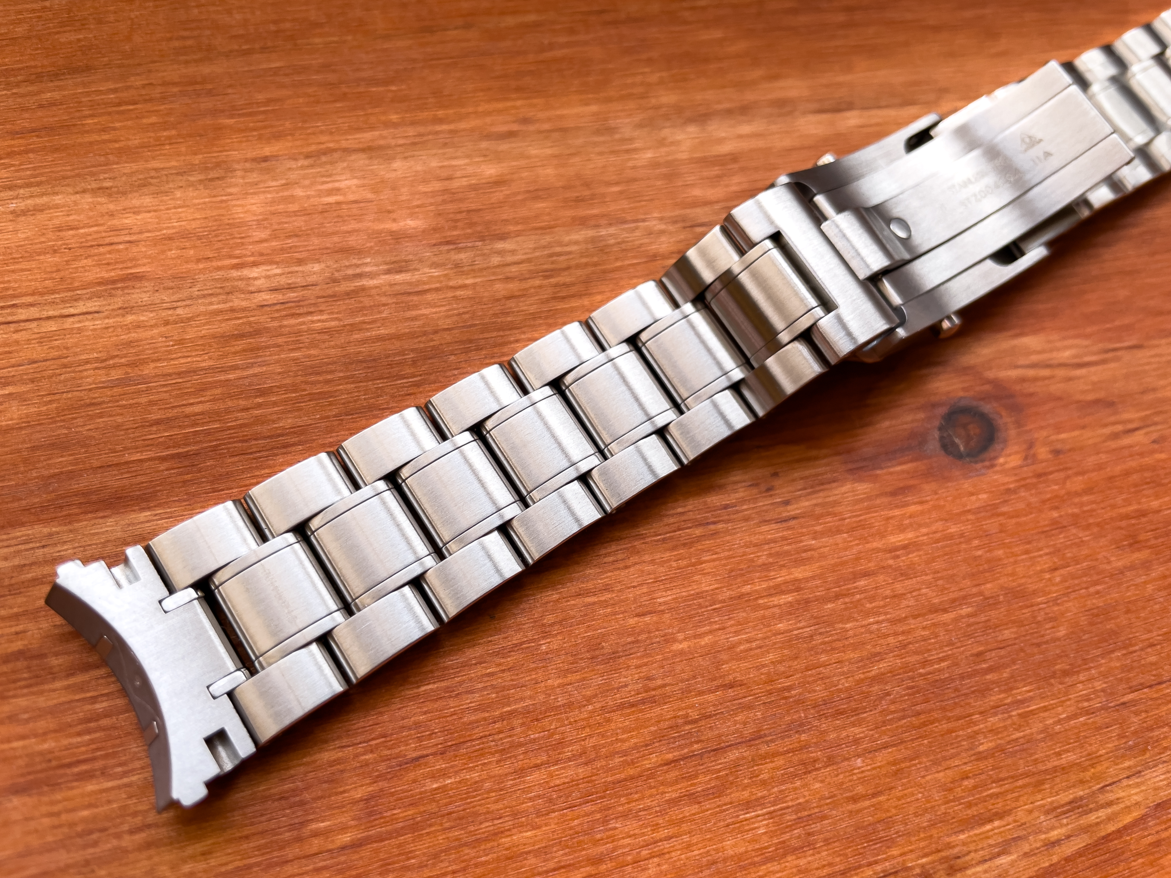 For sale is a brand new, unworn, and never resized bracelet pulled from my 1861 Speedy that I had purchased this year. I am the first owner of this watch, and as soon as I signed for the shipment and pulled the watch out of the box, I removed the bracelet and left if in the box. All the original protective stickers are still in place and have never been removed. As it has never been worn or resized, all the links are in place and in new condition. In image #6, you will see a small rub mark on the link that attaches to the clasp. I'm going to put this down to the bottom side of the clasp rubbing against said link during shipment to me from Omega. It's superficial and remains unseen when the clasp is closed.