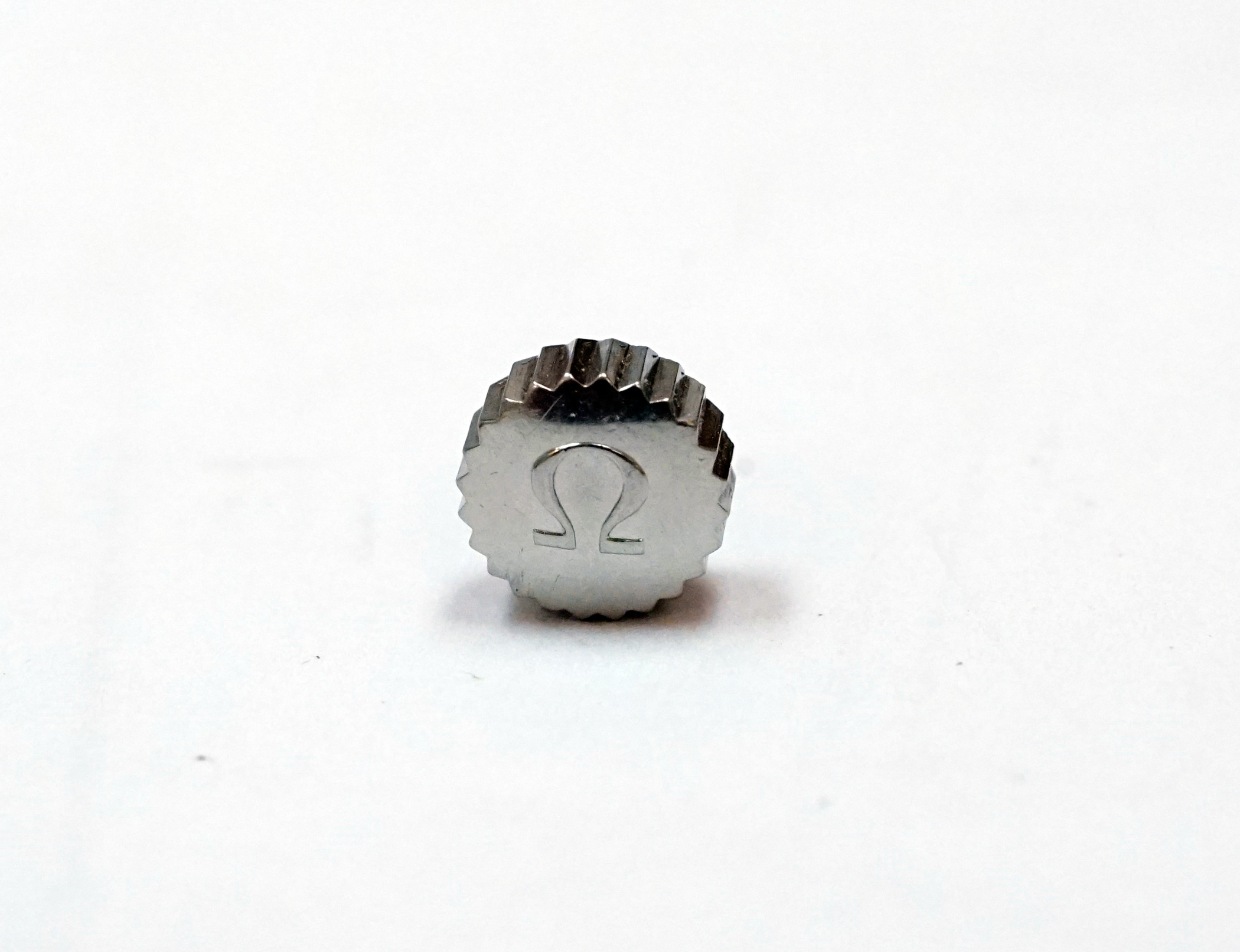 ·For sale is an Omega Speedmaster 24 tooth Flat Foot Crown. Item signs of age but in overall very good condition. Omega insignia is pronounced, teeth are all sharp. Inexact caliper dims show ~6.72mm x 3.89mm size, correct for A1. Shows tube still intact, although some vestigial material inside might need removal to work correctly with movement. TZ rating at 89% due to age and wear: