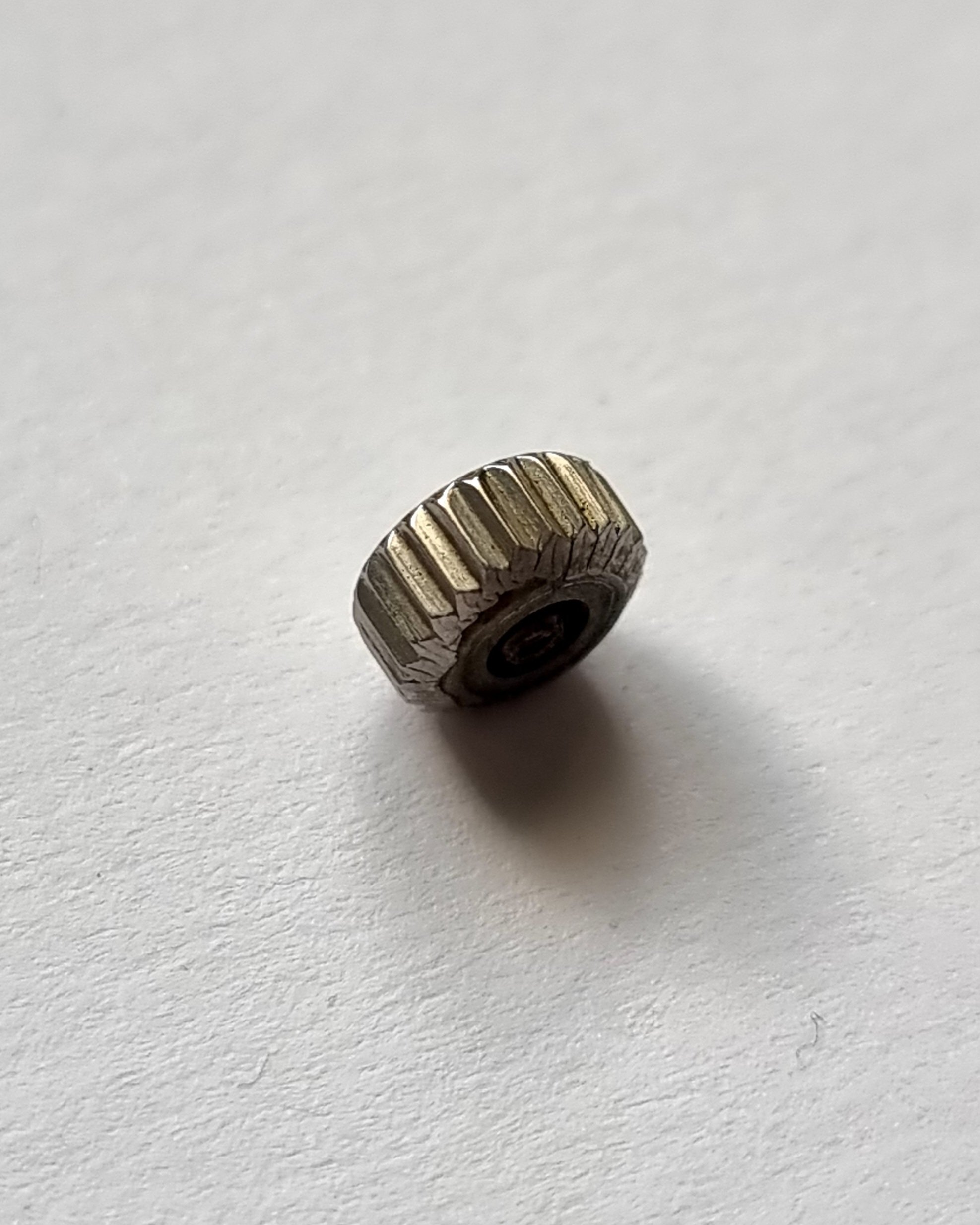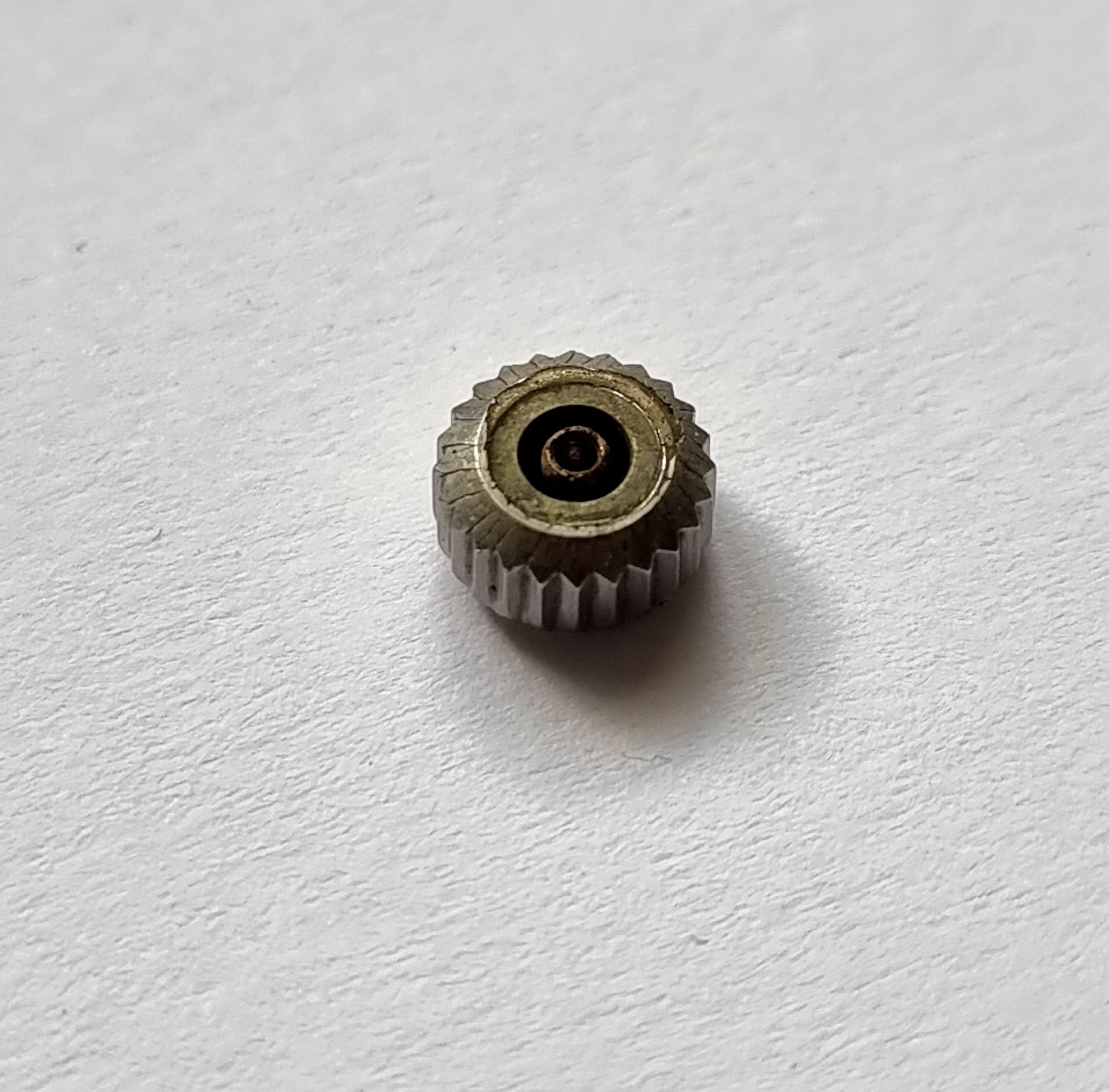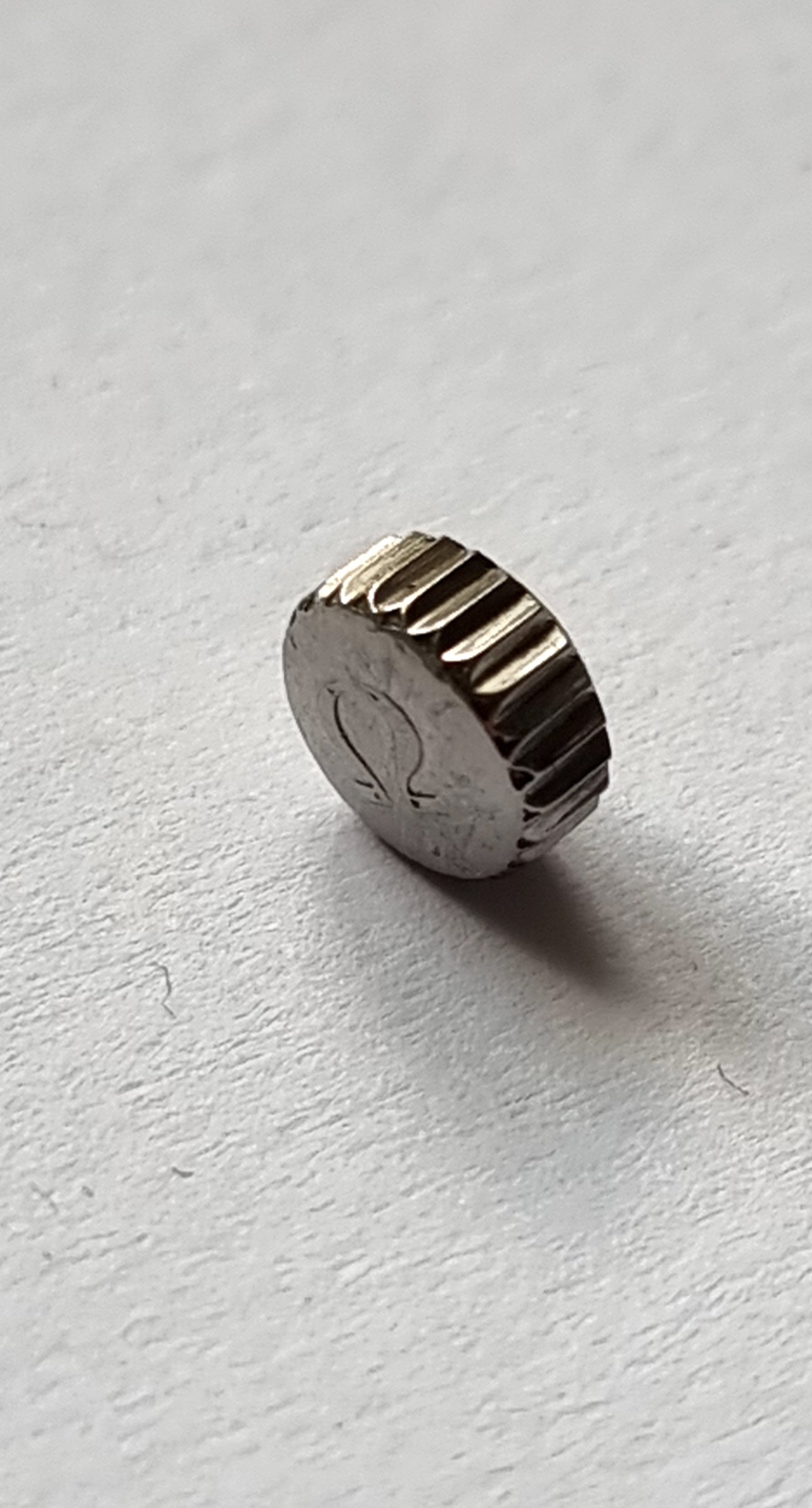 Posts 2,205 Likes 7,267 smitty190373 ·Aug 7, 2024 Omega Speedmaster 24 tooth Flat Foot Crown. This was recently removed from a military watch. The tap tube is slightly loose, and the crown has wear. 24 Teeth Dia 6.75mm Height 3.8mm Price reflects the above, £100 GBP + Shipping. UK £7.95 ROW as for quote.