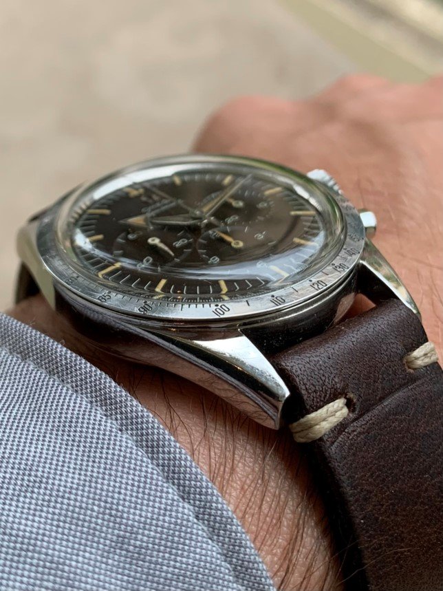 It has the oval O, domed dial, subdial indices, Speedmaster engraving on the step of the caseback etc.