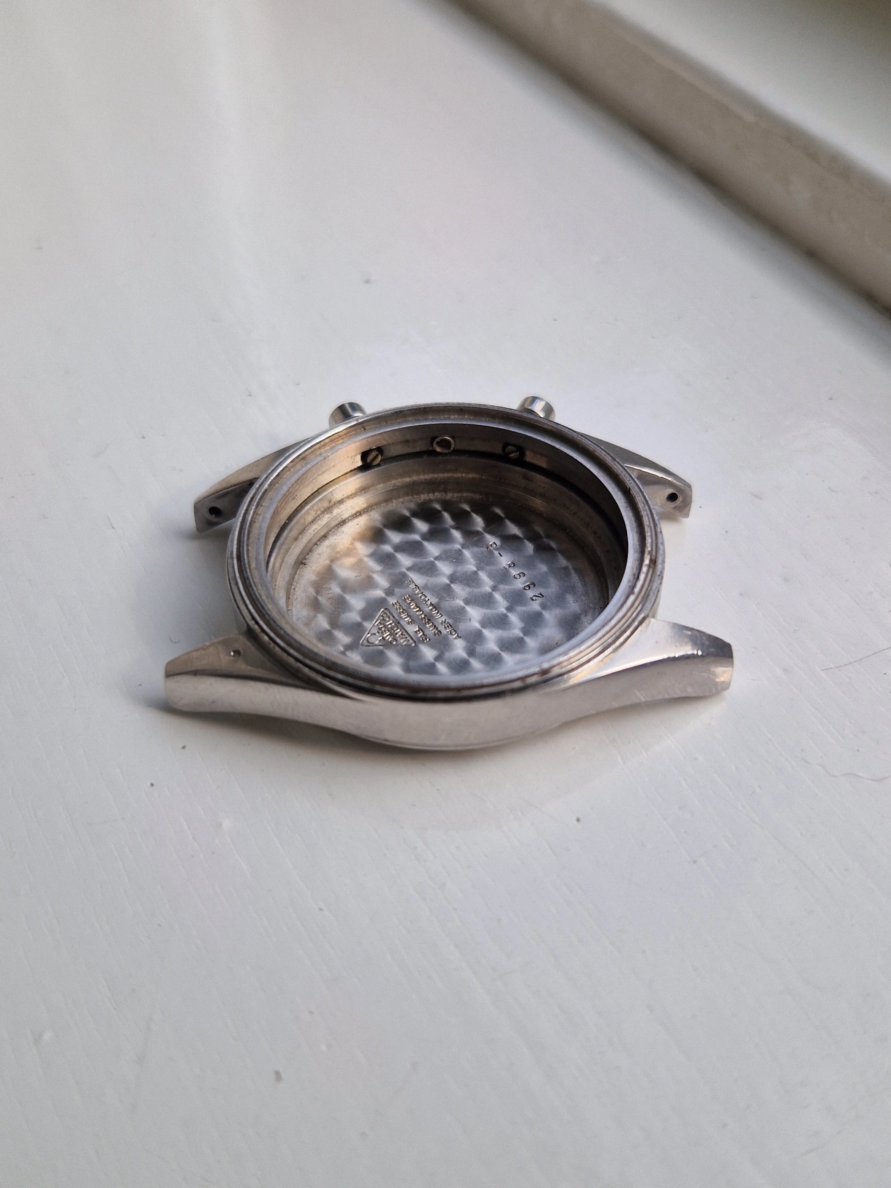 The condition is pretty good, it's seen a polish but has good form and strong lugs There is a name is very lightly scratched into the case back. Hardly visible, but good to know and easy to remove I'd imagine.