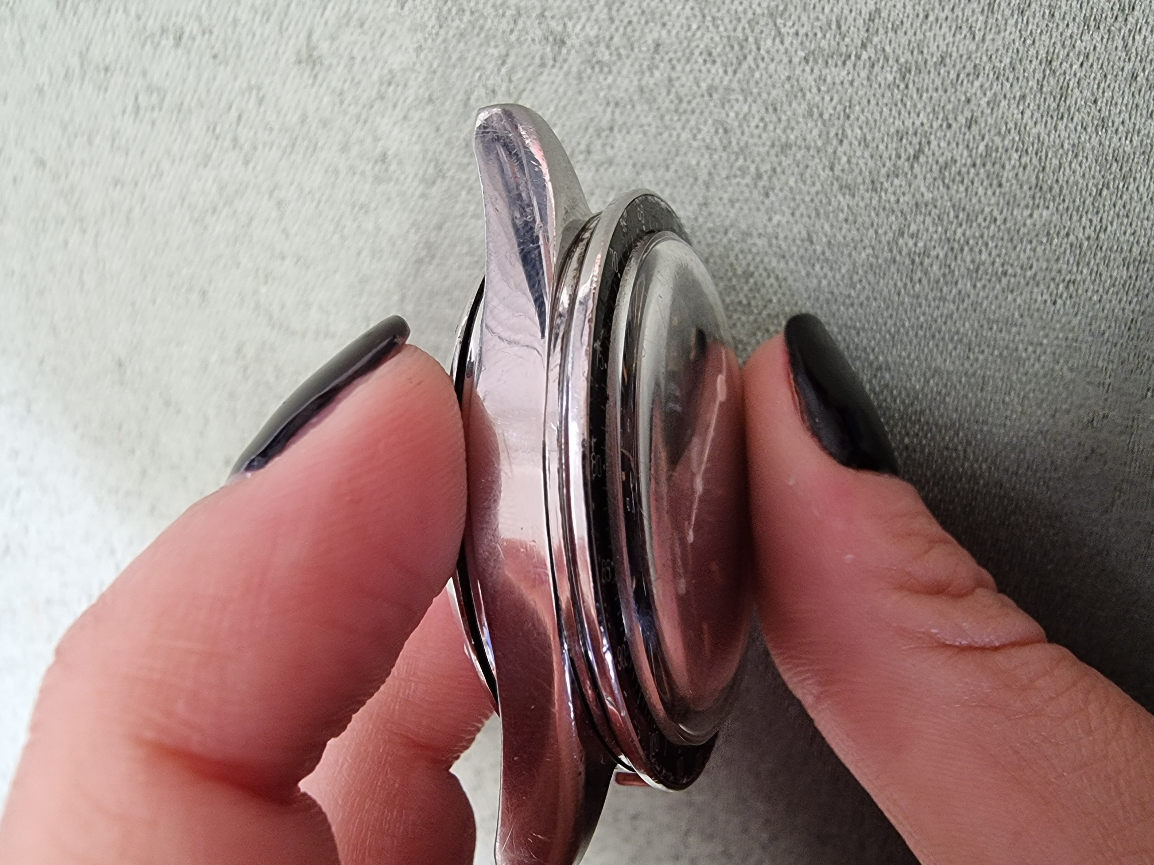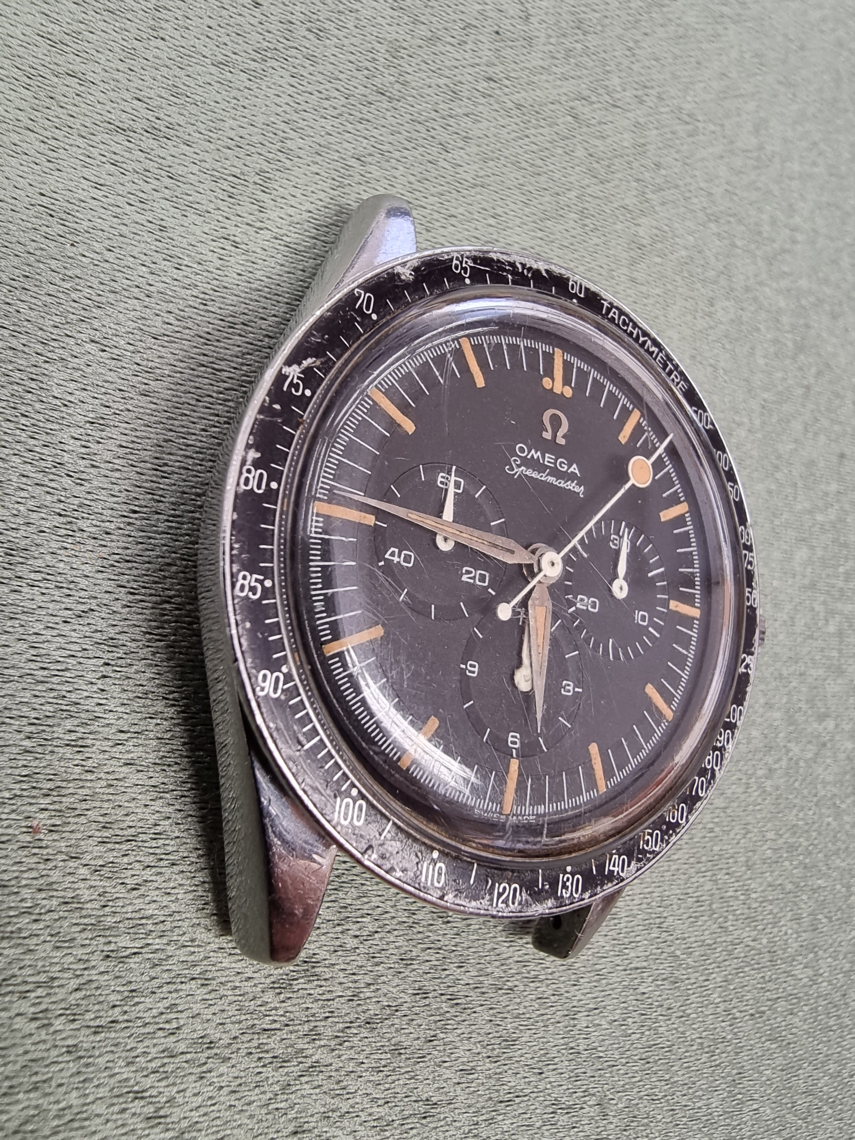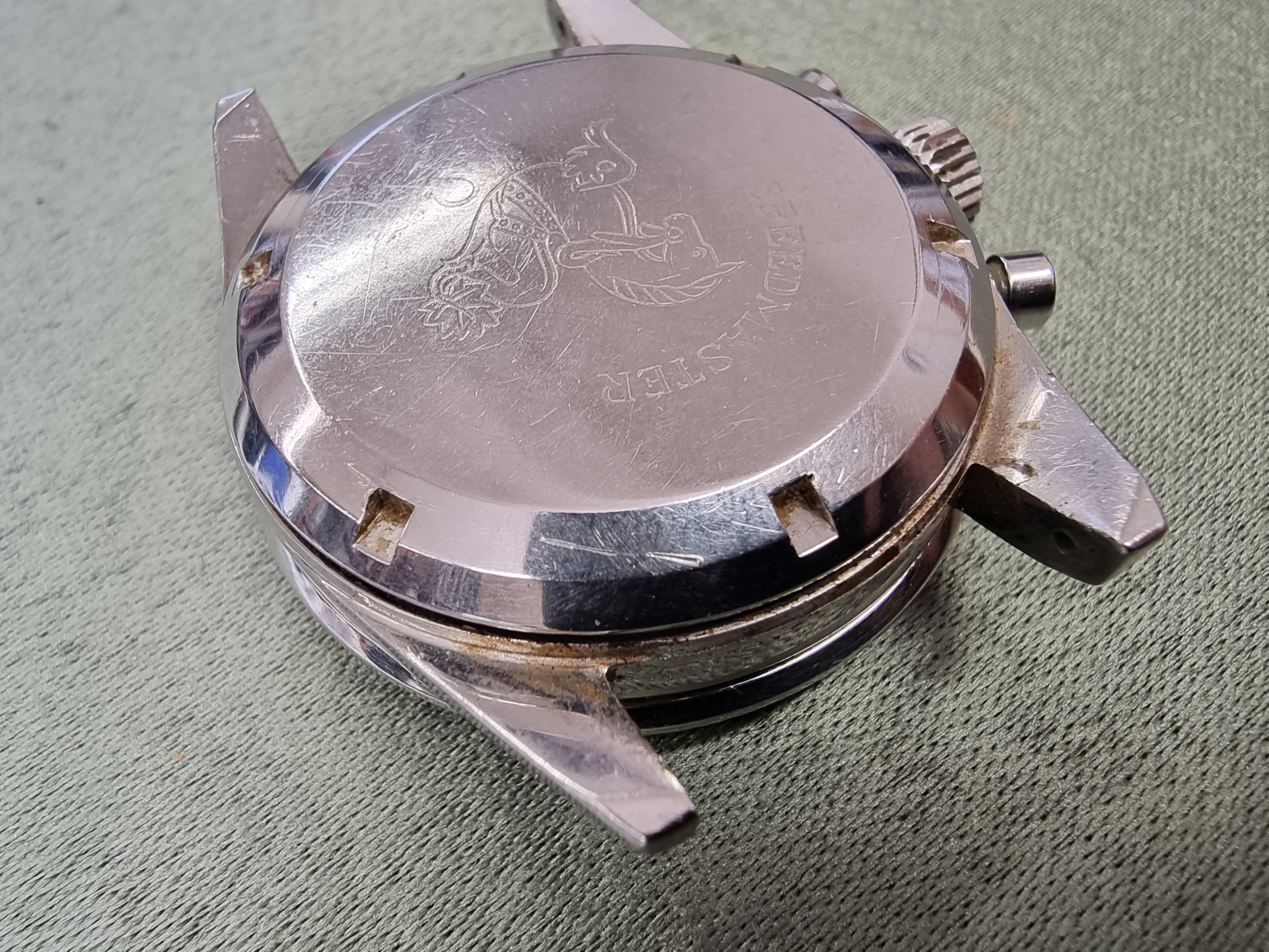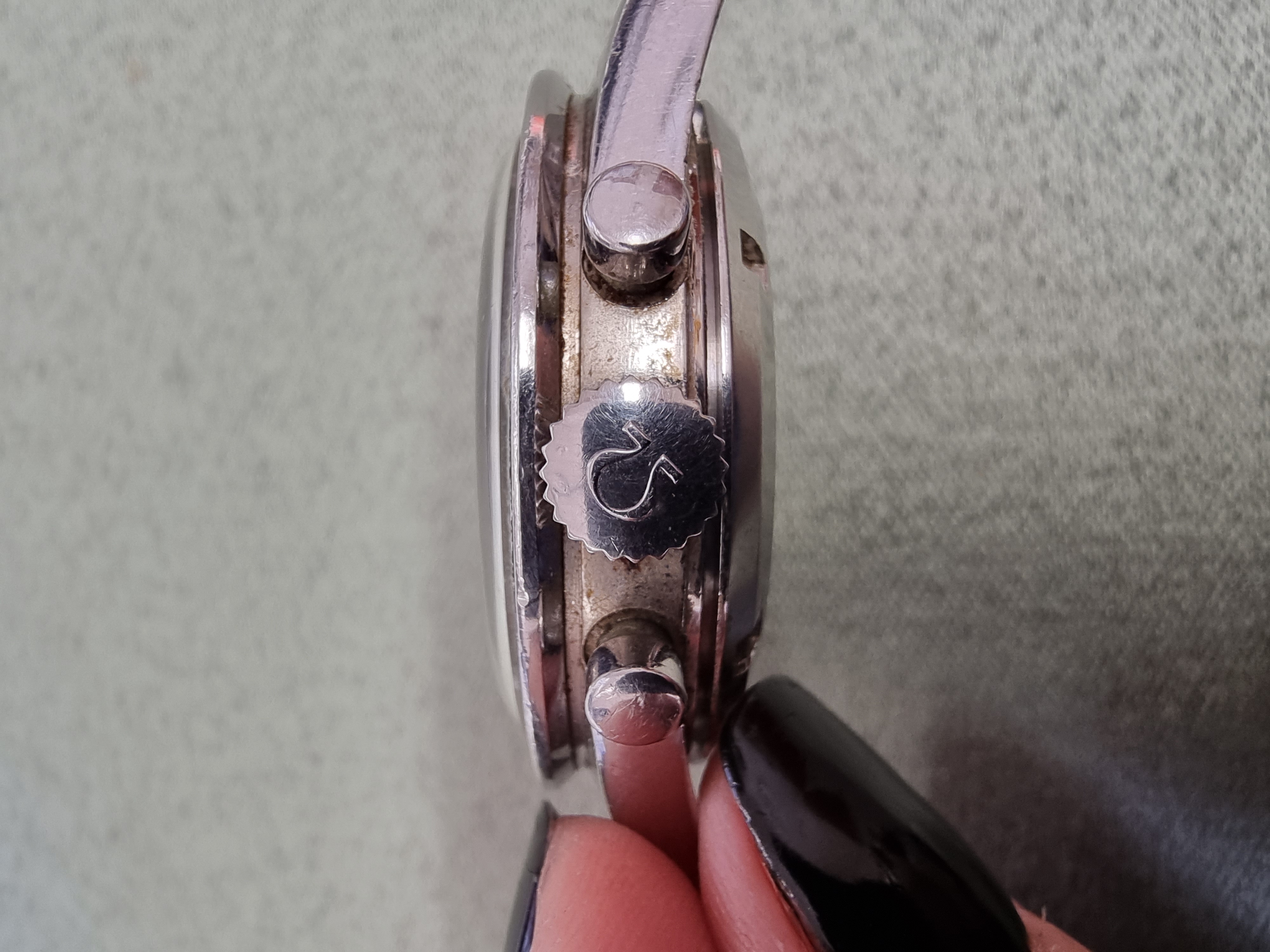The rest of the watch was in a charming and decent condition, with a flatfoot crown, dirty pushers,