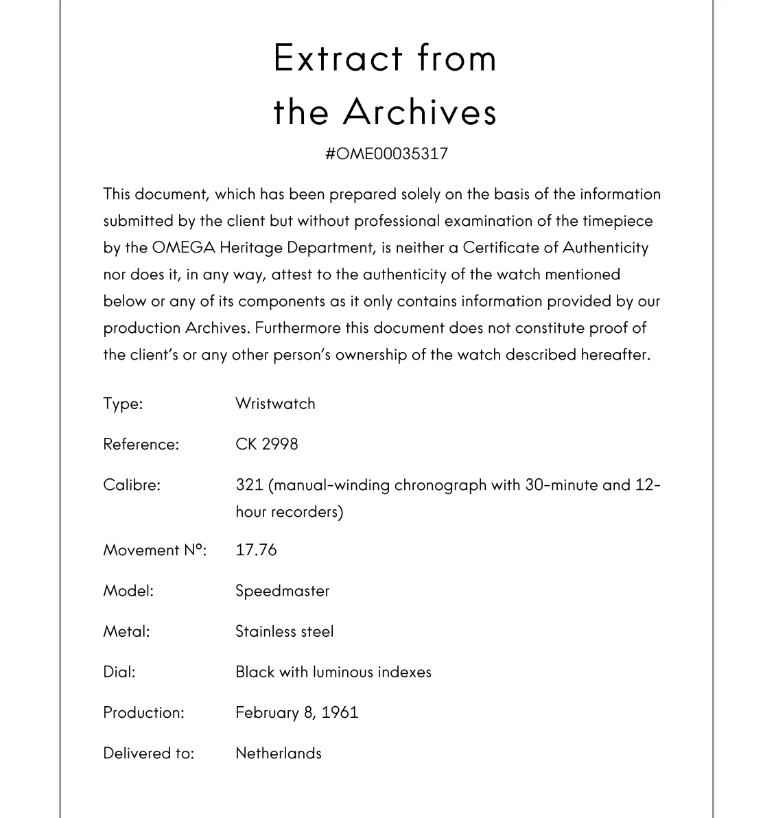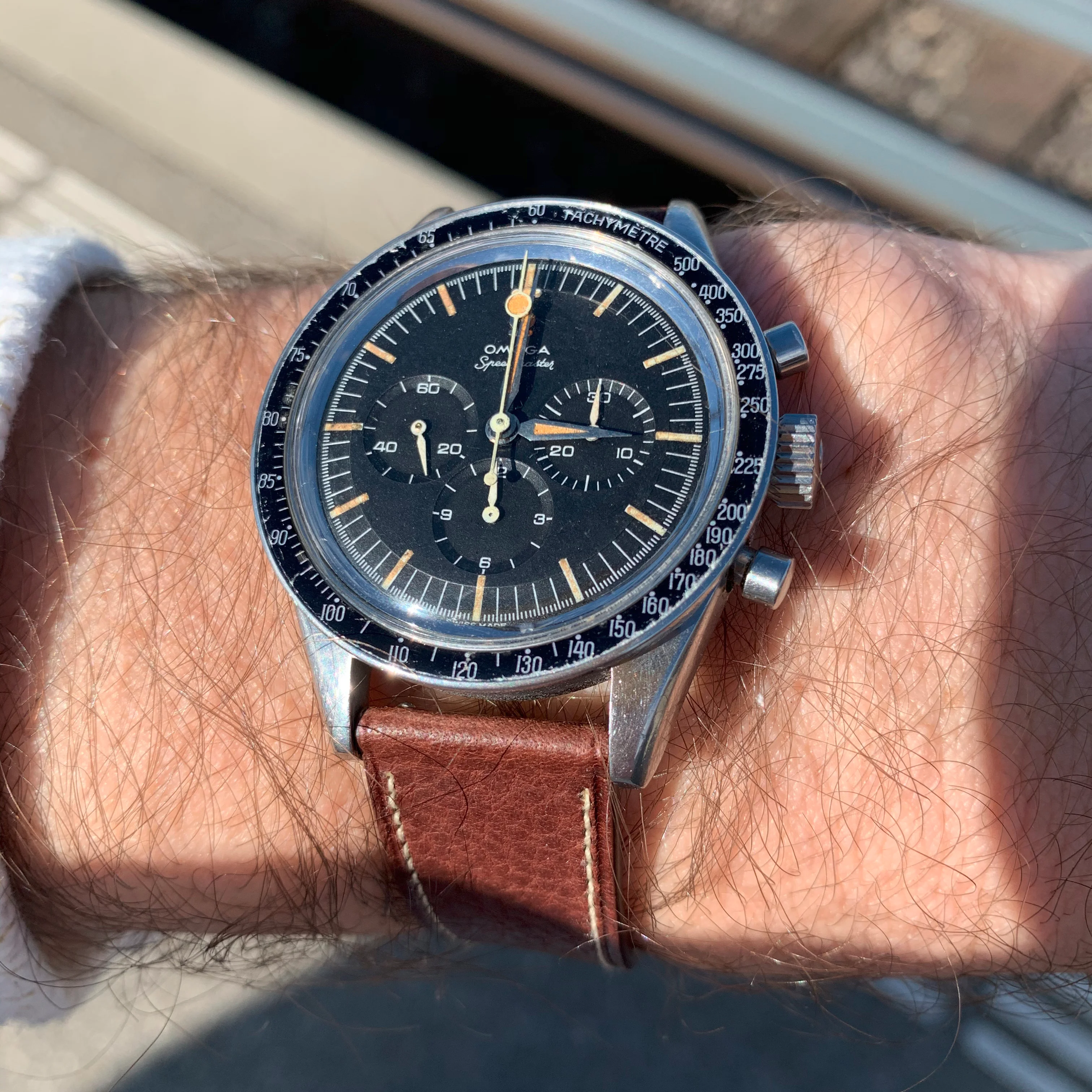 For your consideration is a beautiful Speedmaster 2998-3 with lollipop chronograph seconds hand.