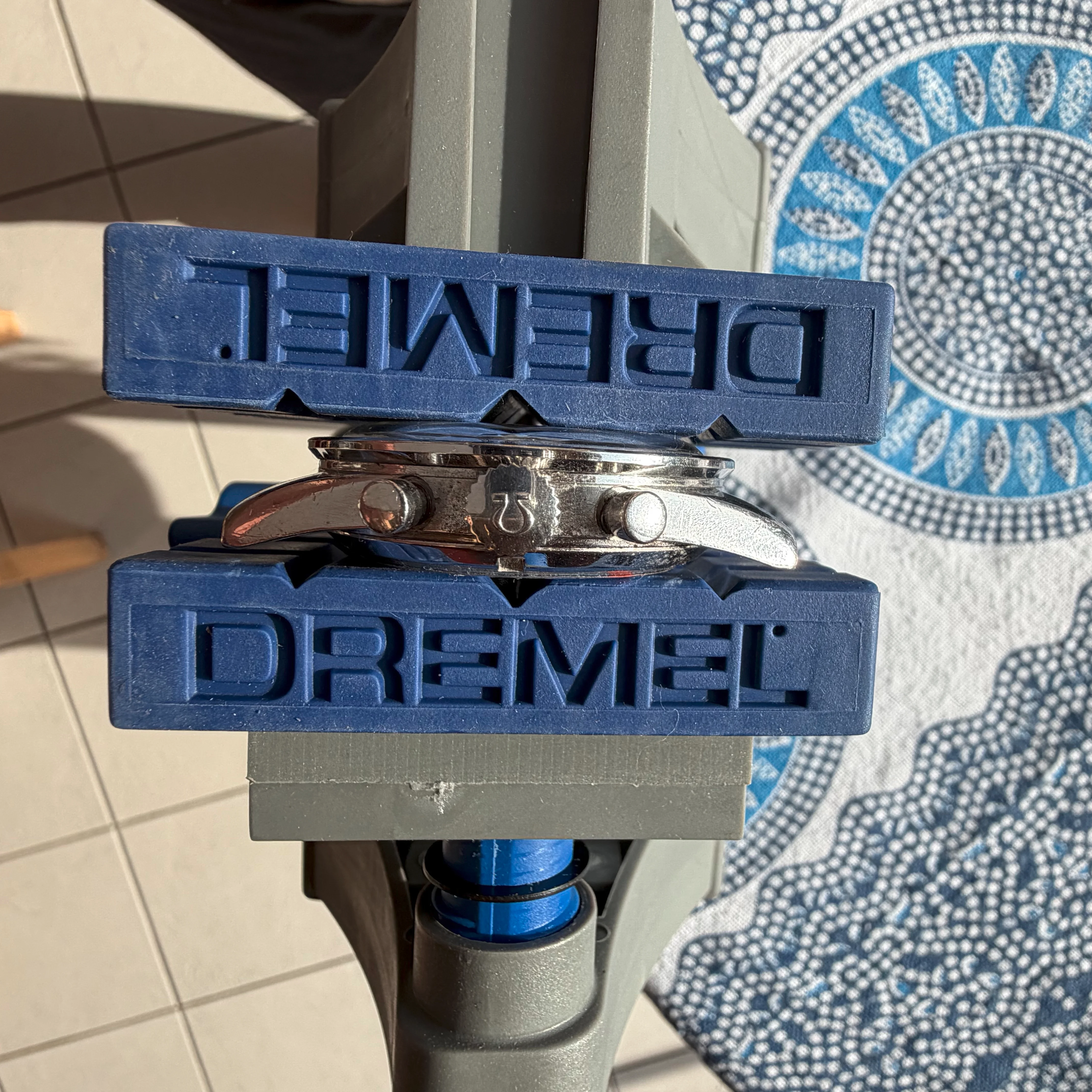 Don't worry, I was very careful with my dremel vice ... and it has soft rubber clamps. I couldn't do the shots on the table without getting the sun straight down my lens ...