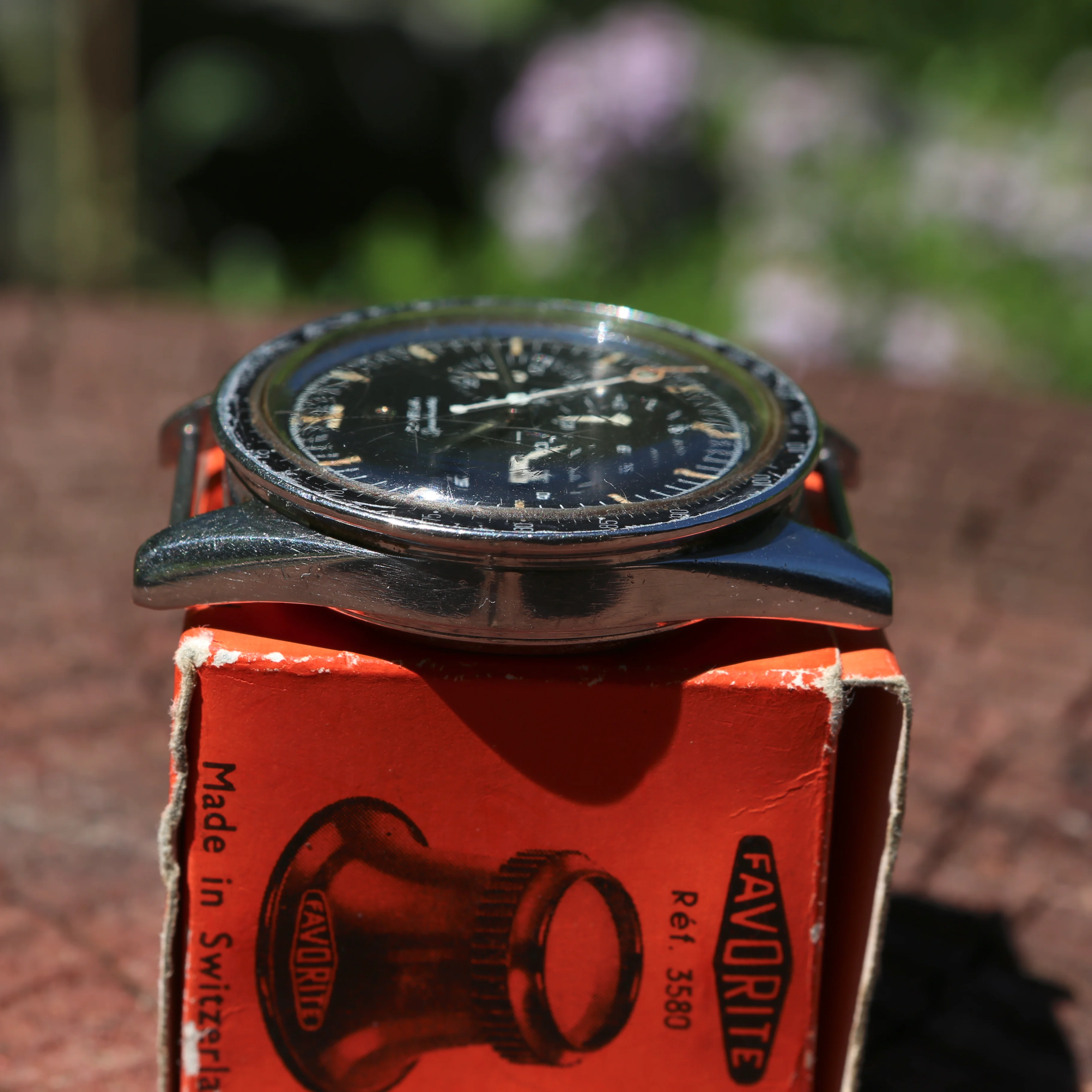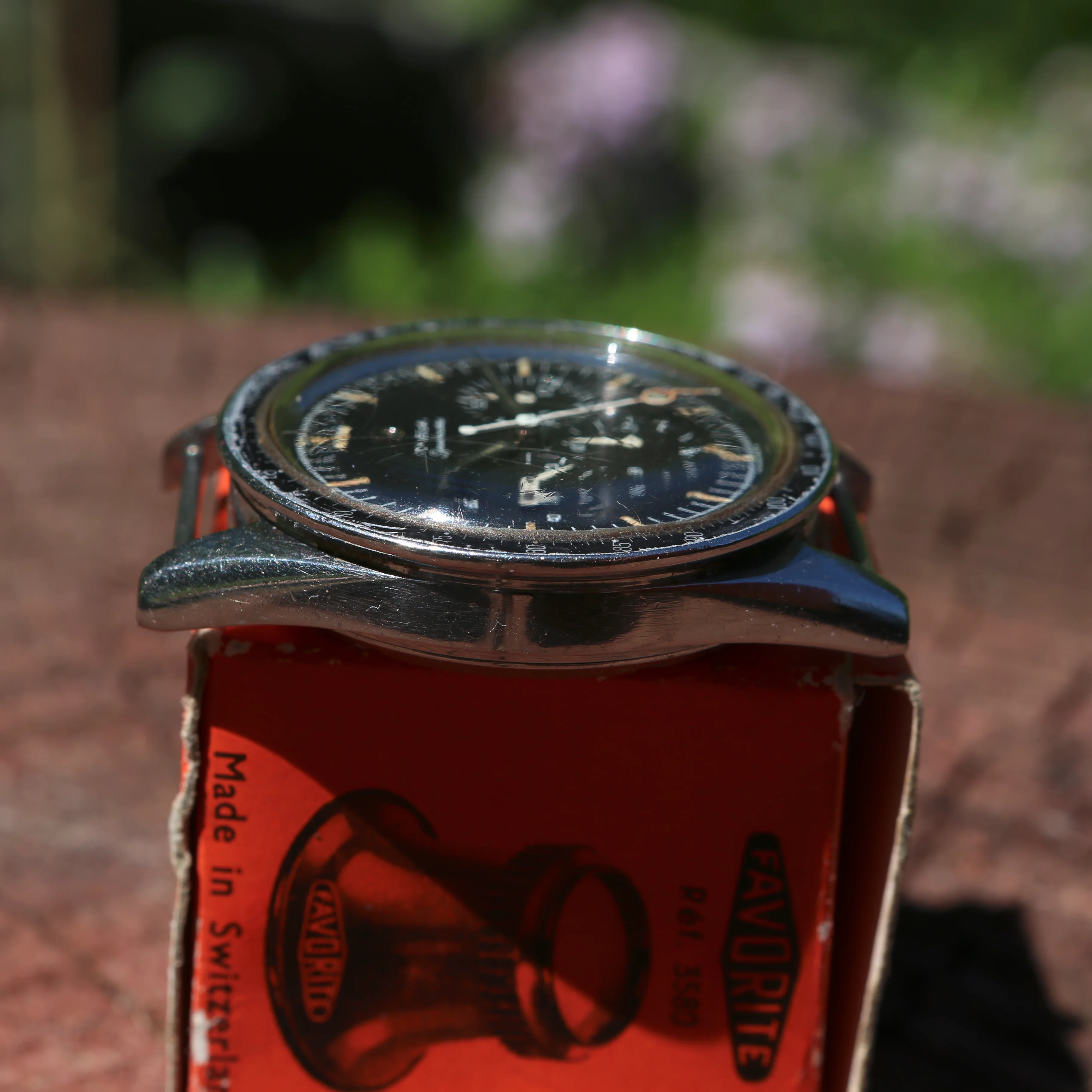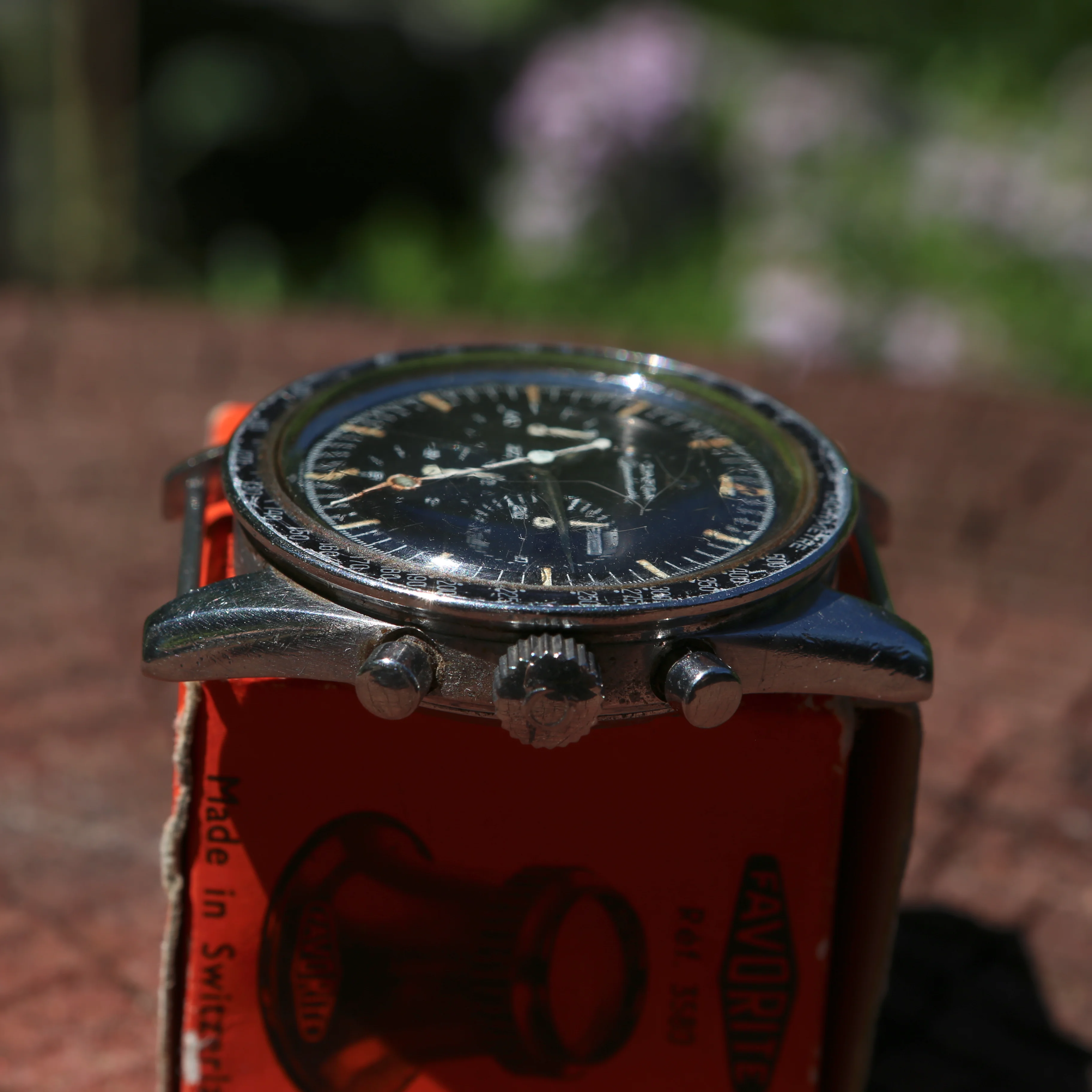 The pushers are also original to the watch. The crown is period correct, it came with a later service crown.