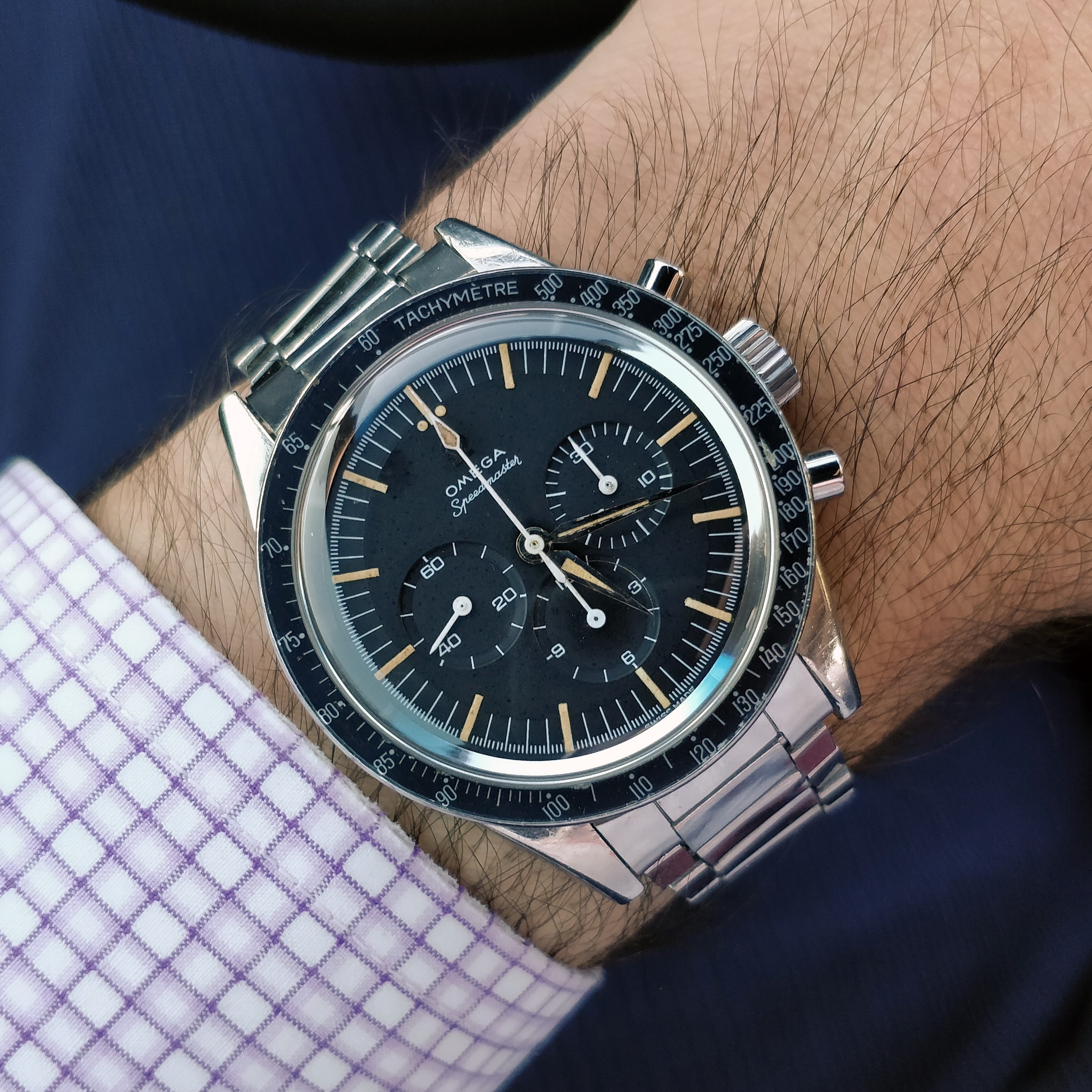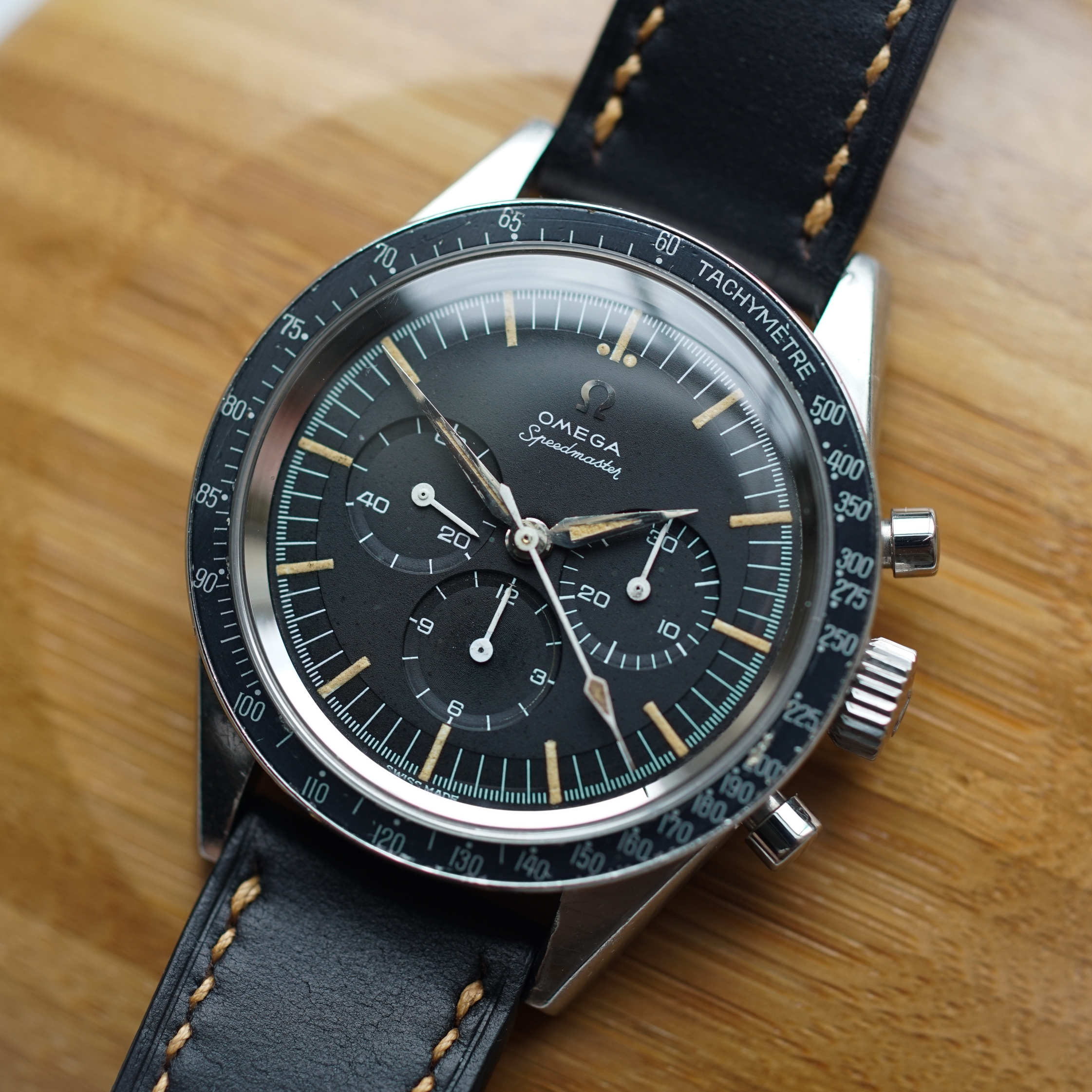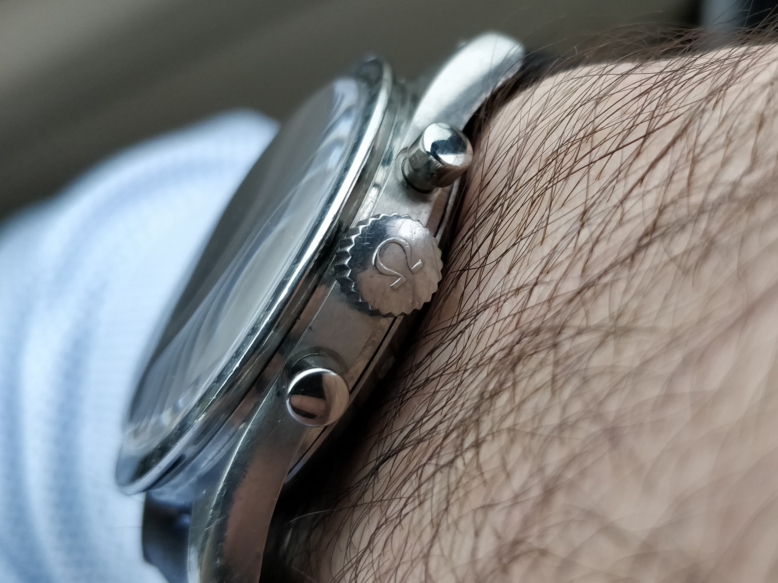 Hands - The minute and hour hands had lost lume so I asked Simon Freese to reclaim and match the lume. The chrono spear is untouched however and original lume. The subdial hands are congruent in age with the rest.