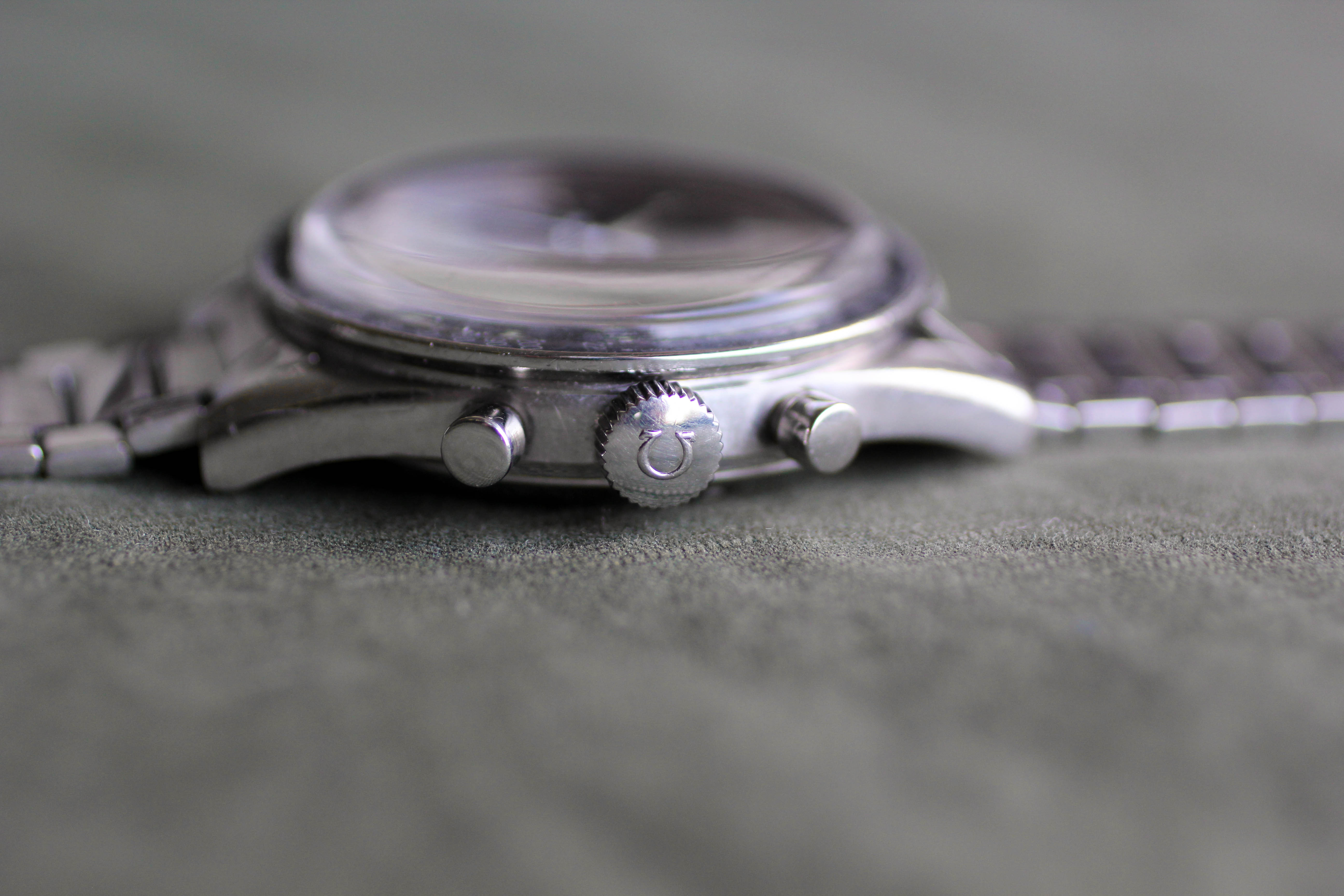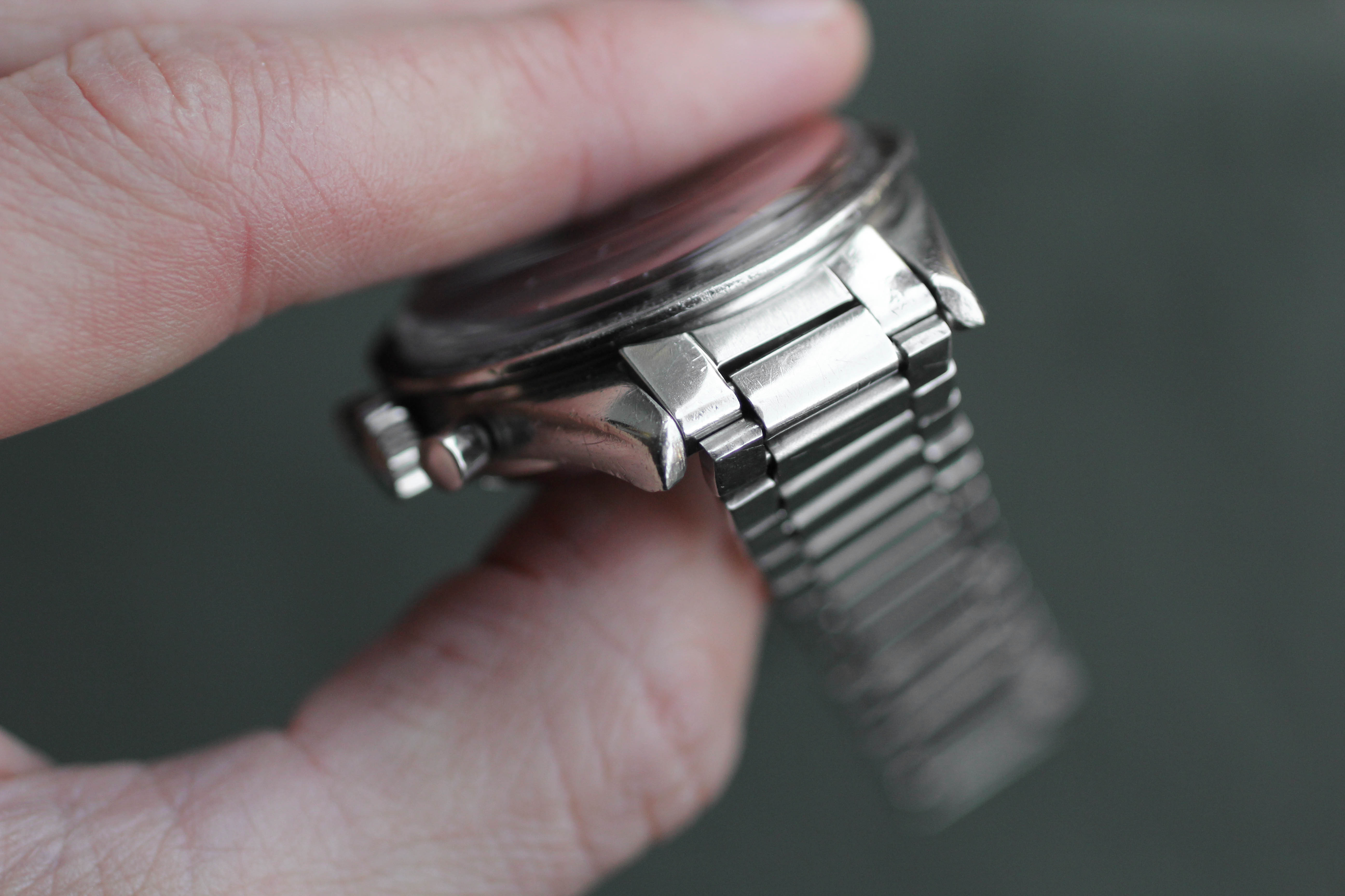 Crown / Movement: Crown is a service replacement. As stated, the movement was serviced by Simon Freese in 2017, winds smoothly, keeps accurate time, and performs all functions accurately. The hour counter sometimes resets a couple mm to the right of center (as depicted below), but there is no chrono creep. While the watch should be trouble-free for the foreseeable future and is ready for daily wear, I am selling it as-is.