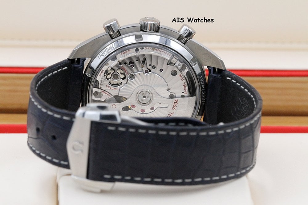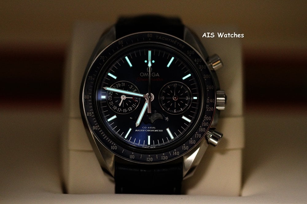 ** Omega Speedmaster 44.25MM Co-Axial Master Chronograph MoonPhase - Blue Dial on Leather Strap